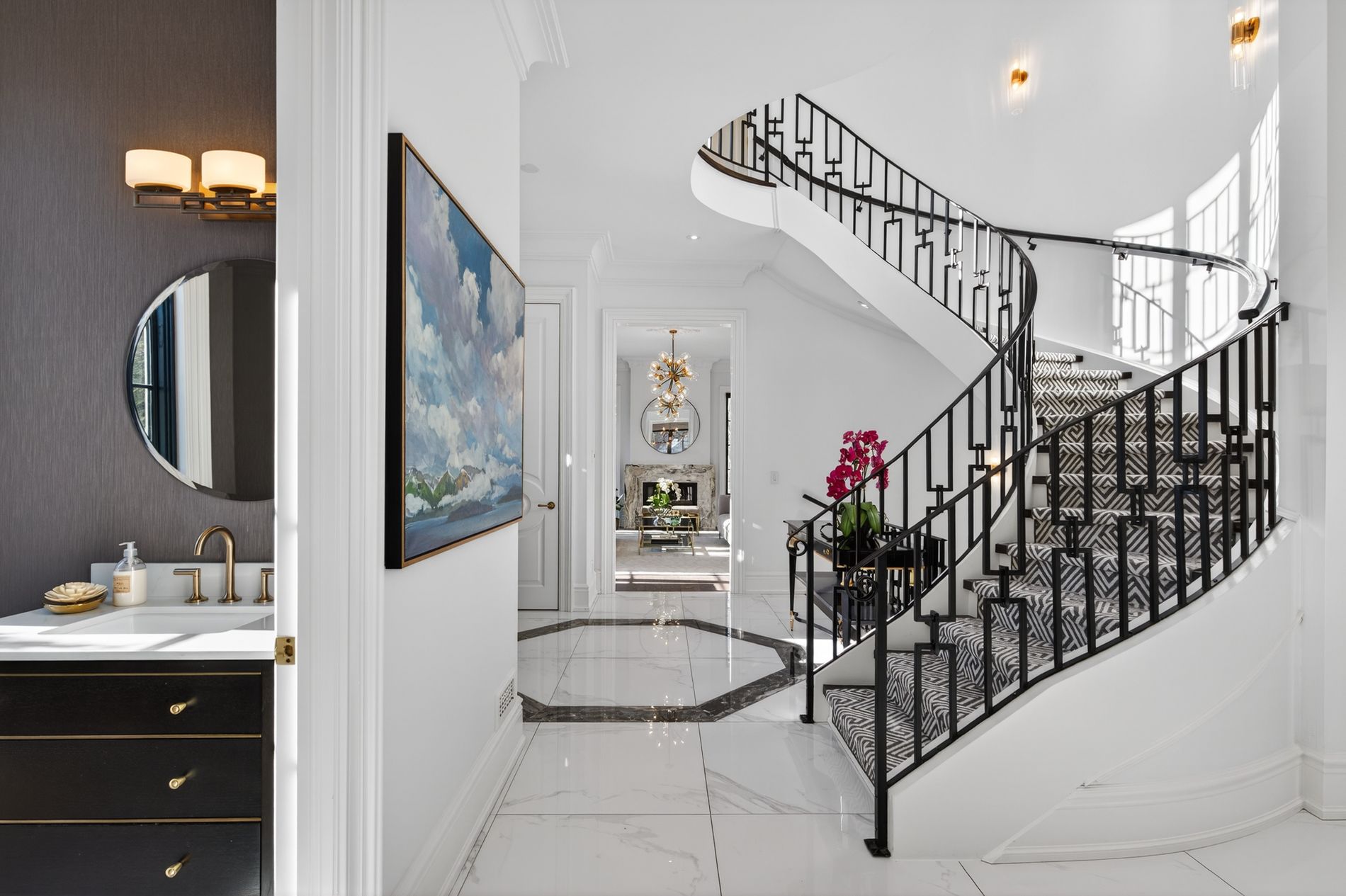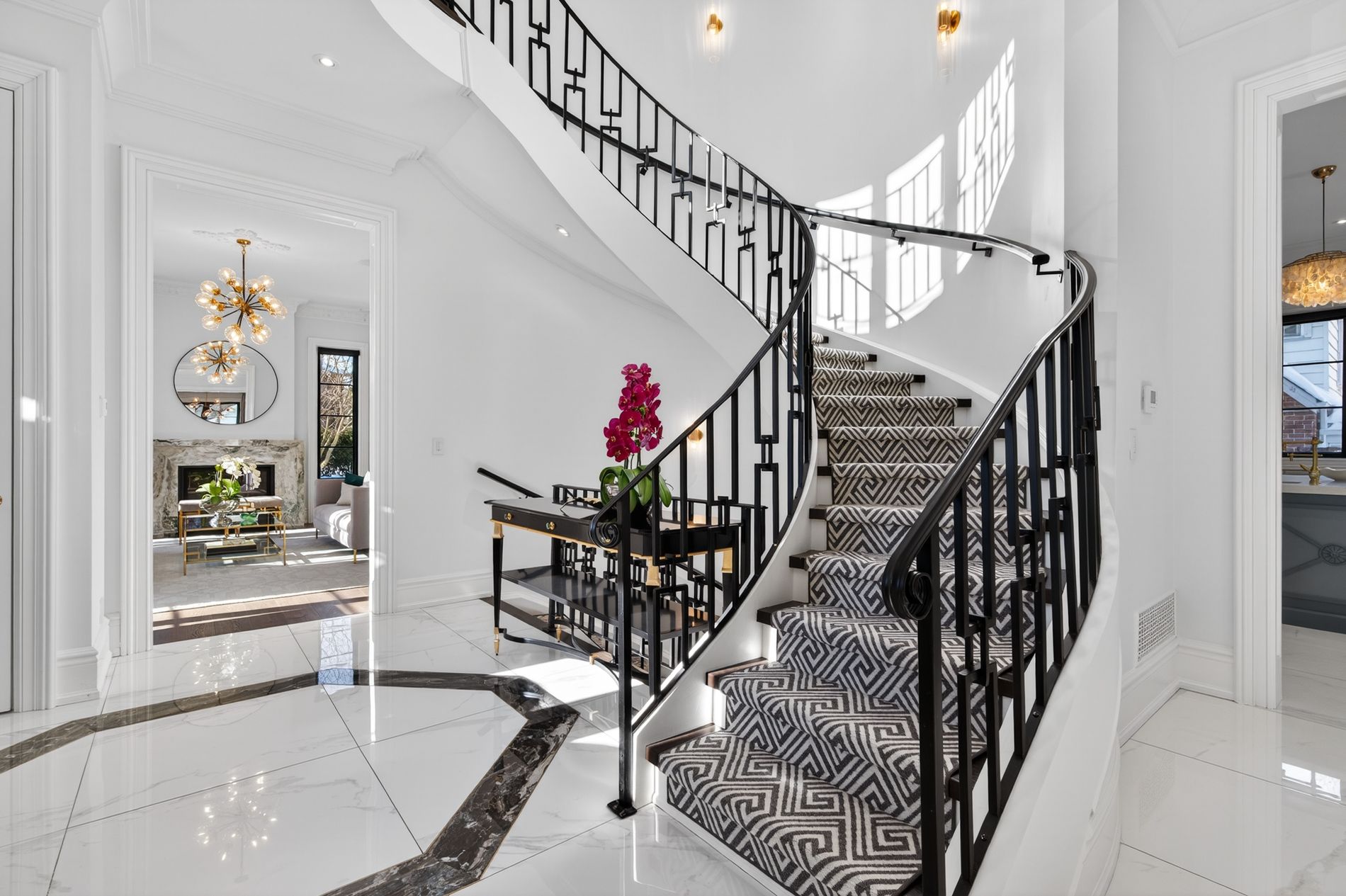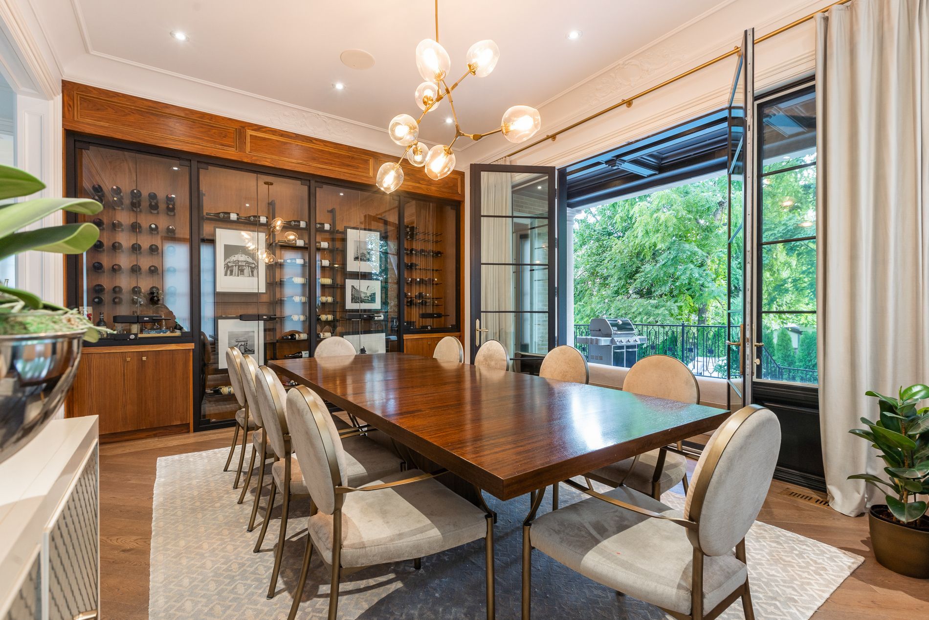 Wow... Show stopper alert. The best of the cricket club on a coveted corner lot, where classic architecture meets modern refinement, this striking contemporary georgian style family home makes an unforgettable first impression. Symmetrical lines are timeless proportions give way to light infused interiors that feel both grand & inviting, designed for elevated everyday living. Inside, a dramatic, elegant foyer welcomes you, featuring a sweeping spiral staircase that immediately sets the tone for the home's refined style. Soaring 10-foot ceilings and carefully chosen finishes continue throughout. The living room feels sophisticated yet welcoming, anchored by a gas fireplace and framed with custom cabinetry. The dining room makes a statement with a temperature-controlled wine wall, combining style and function for effortless entertaining. Upstairs, the primary suite is a private sanctuary, complete with its own gas fireplace and a lavish six-piece ensuite designed for spa-like indulgence. Additional bedrooms are generously proportioned, & a second-floor laundry adds everyday convenience. The lower level is a true lifestyle retreat. A private theatre features six theatre-style chairs, perfect for family movie nights or watching the big game in style. The glassed-in gym offers both privacy and visibility, creating an inspiring space to work out. This level also includes a nanny suite w/ its own bathroom, a powder room, & a second laundry room for ultimate convenience. Beyond, the expansive recreation space flows seamlessly to the outdoors, where a resort-style private pool creates a serene backyard escape. The result is a residence that feels both stately and livable - a seamless blend of classic presence and modern comfort. One of the great features of this cricket club gem is the close proximity to both yonge street & 401. Many of the top-tier public & private schools are a short commute, as is pearson for the frequent travellers and hwy 400 for cottage & countryside.