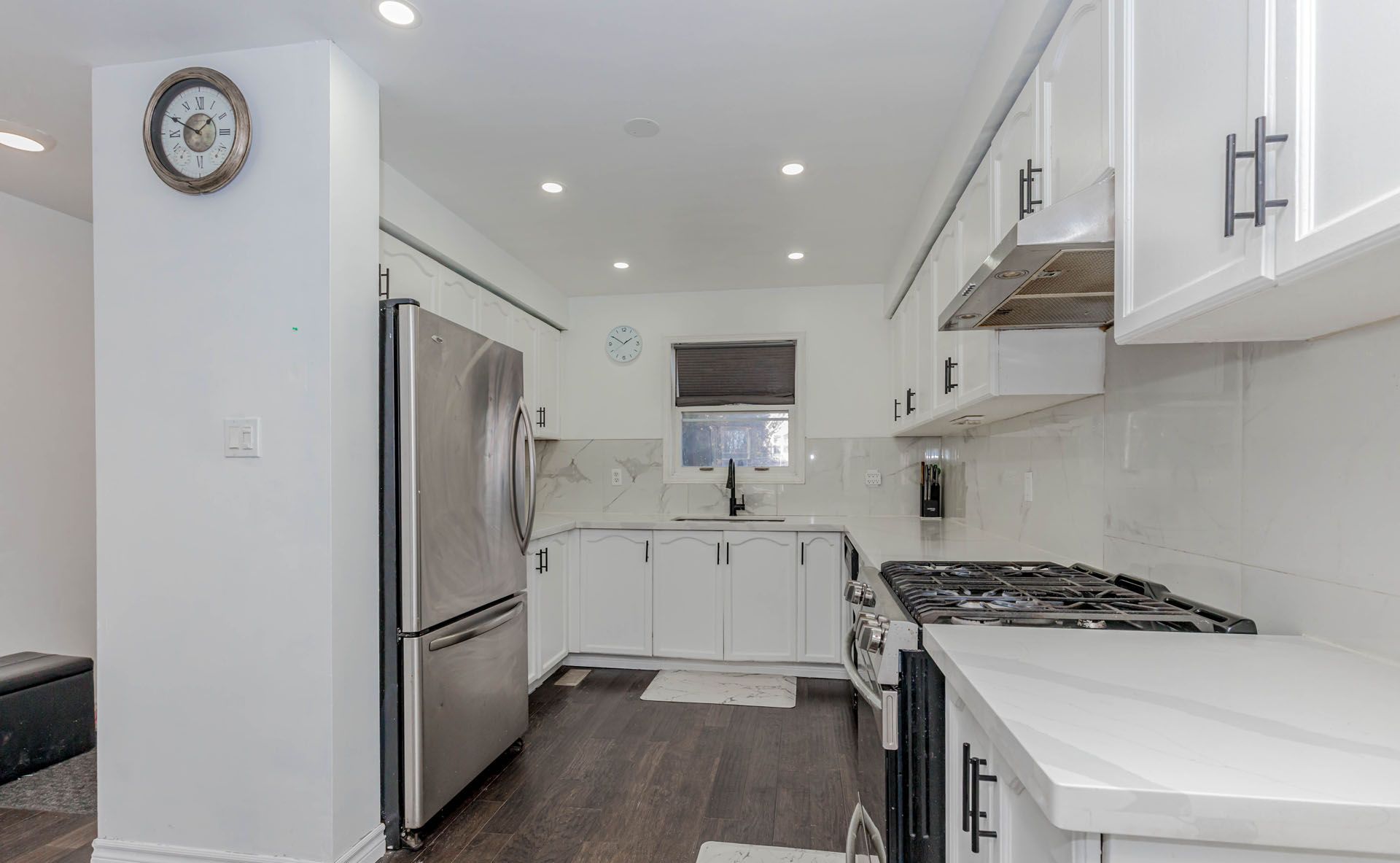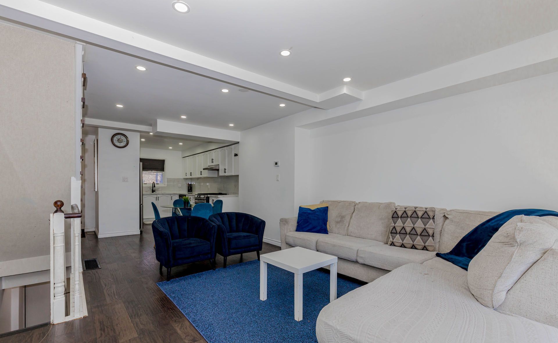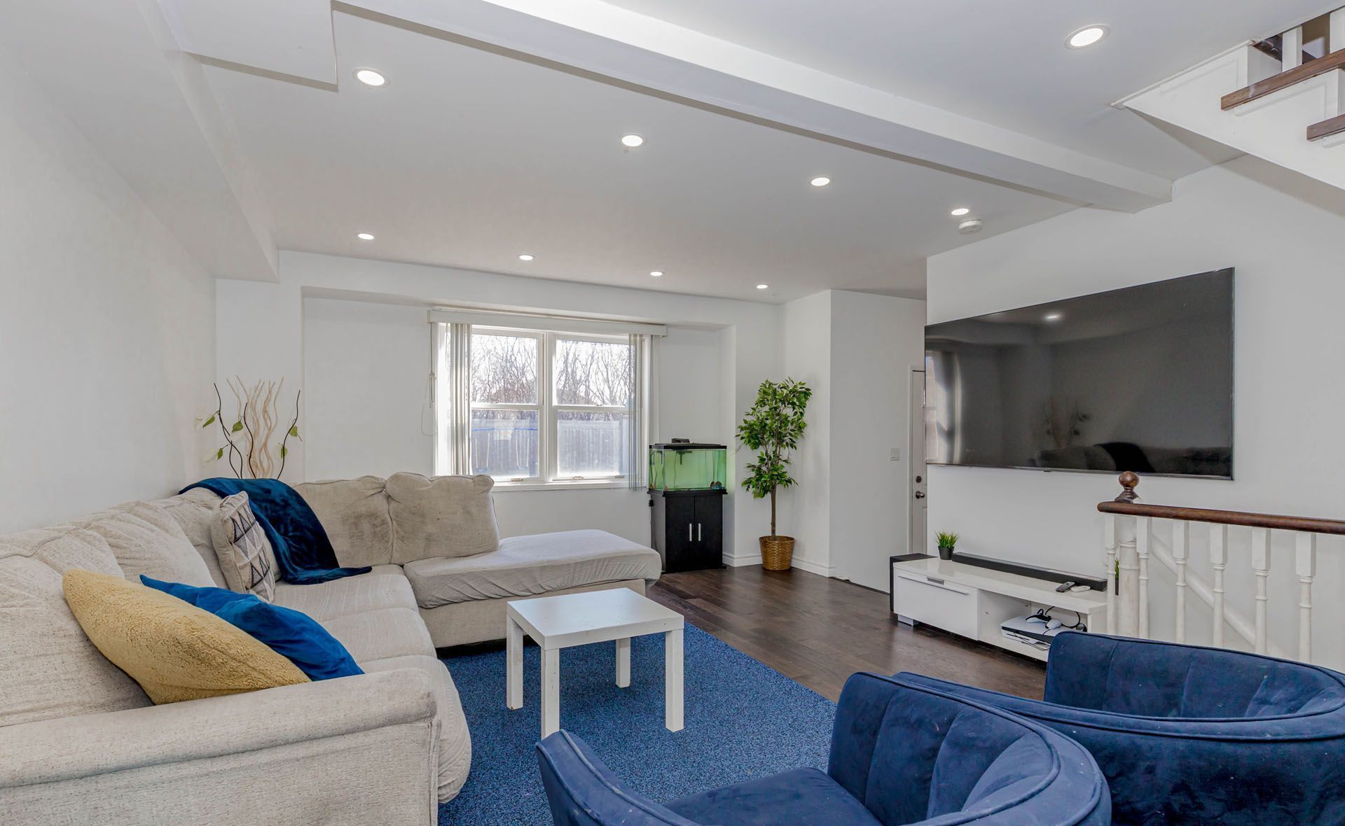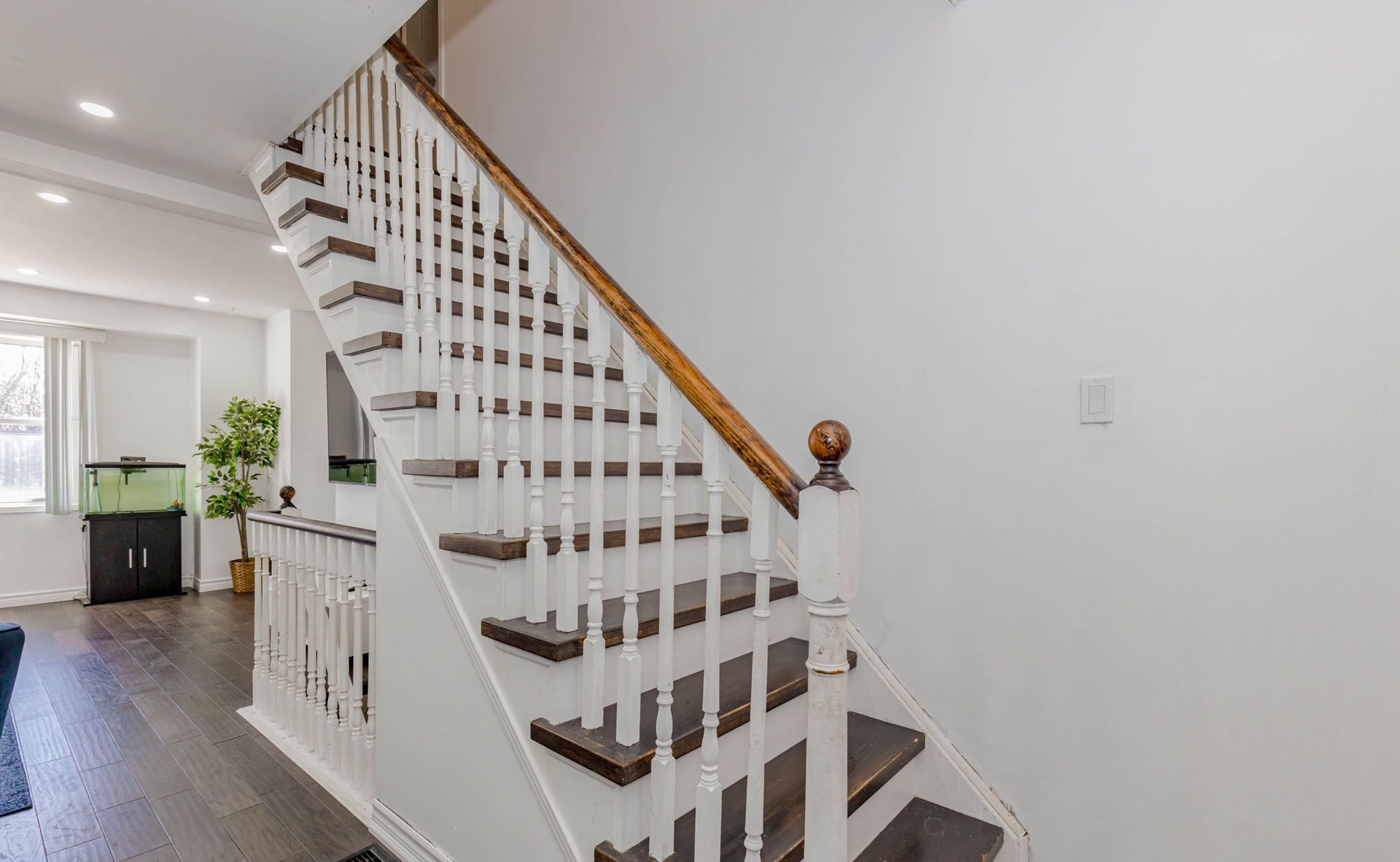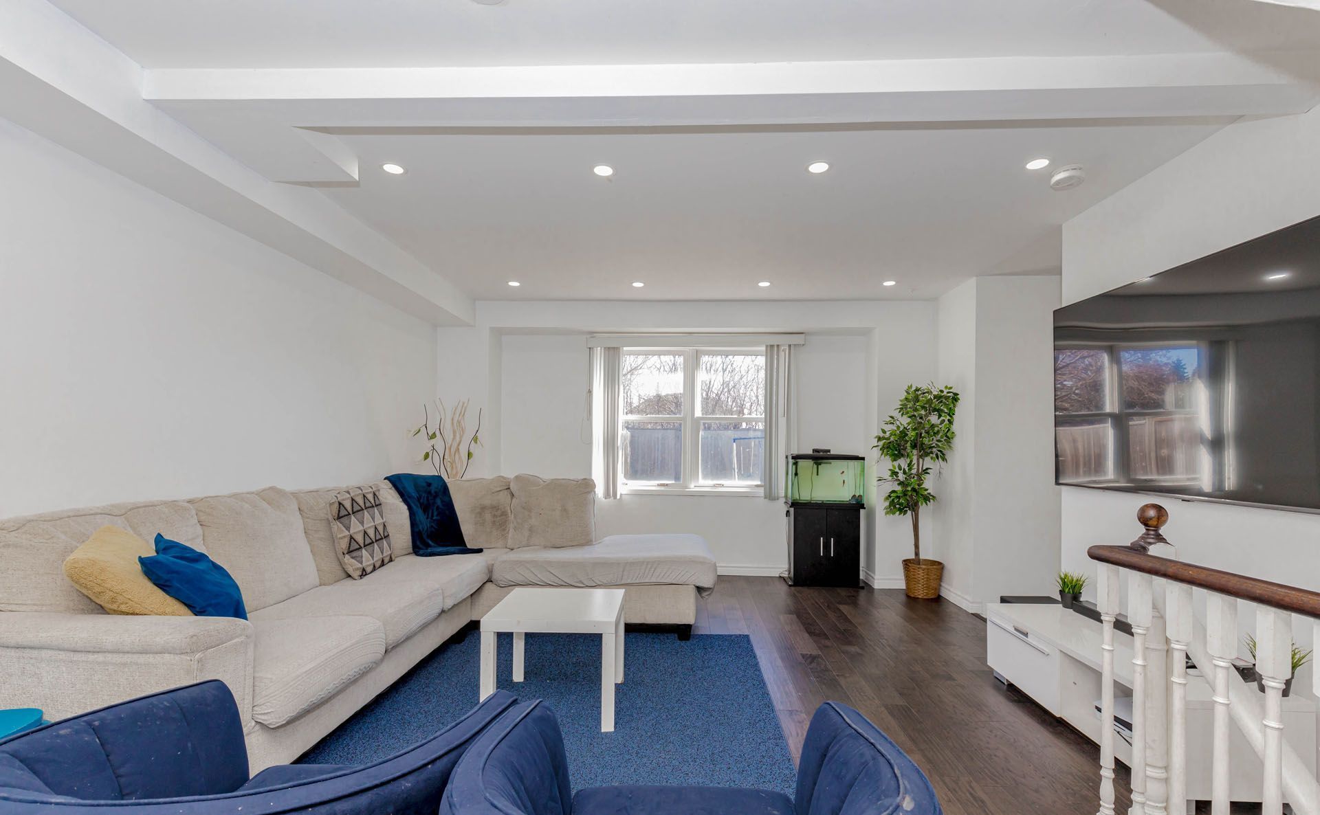 Rare find beautiful 36 ft freehold corner townhouse in highly desirable springdale! Move-in ready home on a massive extra-deep corner lot that feels like a semi. Bright & spacious layout with big sun-filled windows throughout. Family size eat-in updated kitchen, new laminate floors & fresh paint. Generous sized 3 bedrooms. Finished basement with separate legal entrance - great potential for rental income or in-law suite. Large backyard with no neighbours behind for added privacy. Extra deep lot with big driveway & parking for up to 5 cars. Close to schools, parks, shopping & transit. A must see !!