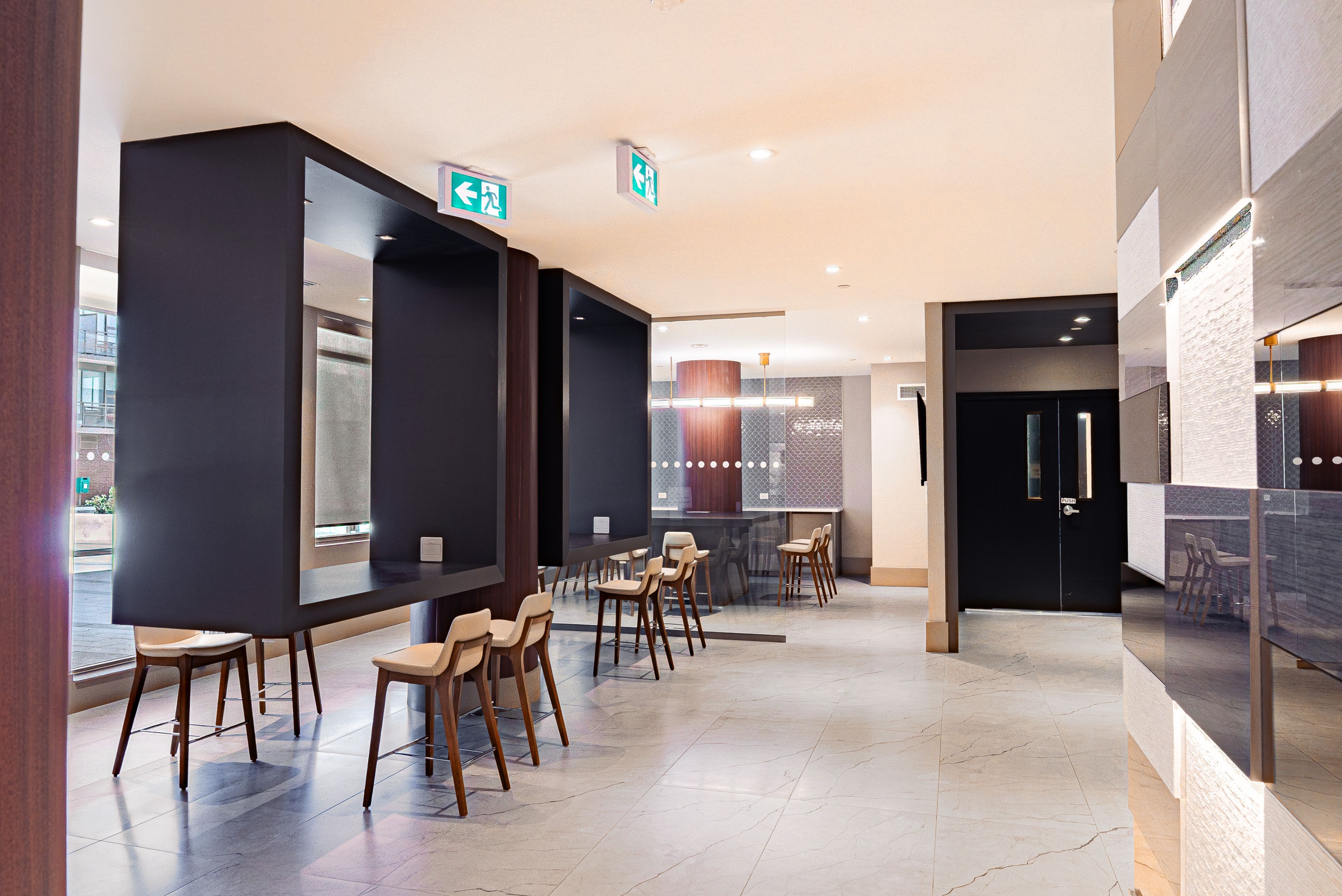 • Building amenities include a fitness zone, dining terrace, and outdoor yoga space.