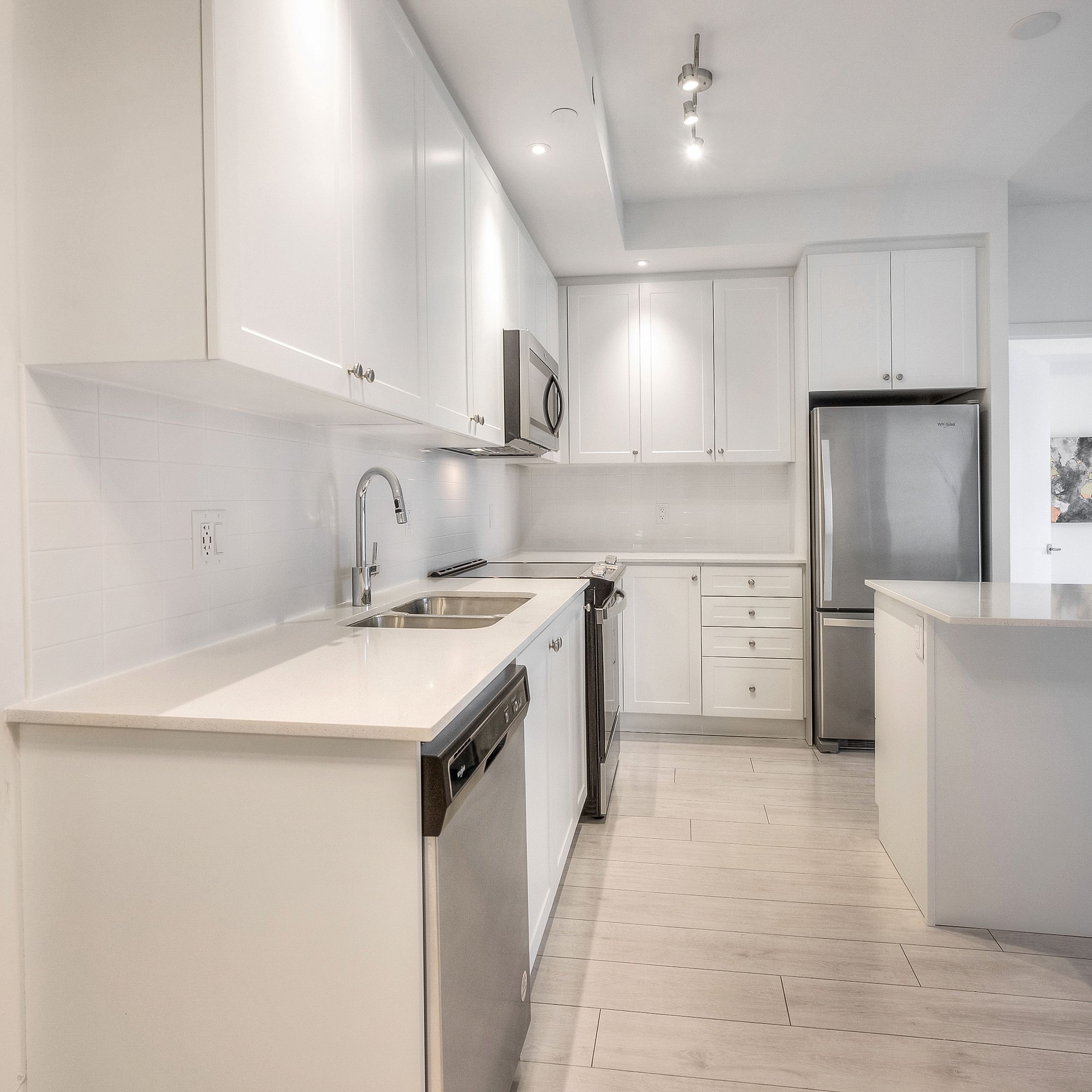 Welcome to suite 1201 at 55 duke street west! Young condos located at 55 duke street west is about as central as you're ever going to get. It's adjacent to city hall - which means it offers easy access to a ton of great amenities - like restaurants, entertainment, and shopping. How would you like to have the lrt at your literal doorstep? This brand new 2 bedroom, 2 bathroom condo with sunset views is in the heart of vibrant downtown kitchener! Soak in the breathtaking citywide panoramas from your balcony, and check out our top 5 reasons why you'll love this home! #5 carpet-free layout - this turnkey condo is just waiting for you. You'll appreciate plenty of natural light from the expansive windows with western exposure - leading to beautiful sunsets. Take note of the carpet-free layout, complete with luxury vinyl plank flooring, a well-equipped kitchen, which includes new whirlpool stainless steel appliances, stacked subway tile backsplash, and a large island with quartz countertops throughout. There's also a fantastic private balcony to kick back and relax on, with unobstructed picturesque views of victoria park. #4 in-suite laundry - this practical addition will save you time and effort! #3 bedrooms & baths - the primary suite boasts fantastic views, a walk-in closet, and a 4-piece ensuite with a shower/soaker tub combo. The second bedroom also has fantastic views, and there's a main 4-piece bathroom with shower/soaker tub combo. #2 building amenities - enjoy the fitness centre, co-working lounge, dog park, rooftop terrace with a running track, party room, and beautifully landscaped gardens. A rare bonus: your secure underground parking spot comes complete with an owned powered ev charger. There's also a locker for added storage. #1 location - your new condo sits in a prime central location, moments to excellent restaurants, cafes, shopping, & entertainment. You have a hassle-free commute with the lrt at your doorstep and quick and easy highway access