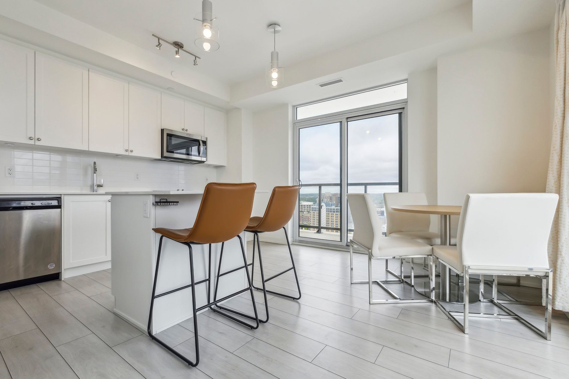 Need a furnished unit... Welcome to 55 duke street west, unit 1709, kitchener! This bright & spacious 996 sq ft corner end unit with wrap around 167 sq ft balcony will take your breath away. This 2-bedroom, 2-bathroom condo unit is on the 17th floor of young condos and offers modern urban living in the heart of downtown kitchener. The open-concept design features a sleek kitchen with stainless steel appliances, microwave hood fan, breakfast island, plenty of storage, and chic finishes. The kitchen overlooks the dining room and flows effortlessly into the spacious living area, filled with natural light from the wall of windows that offer stunning south west facing views of the city and victoria park. Its the perfect space to relax or entertain guests! Step outside to your private wrap around balcony and take in two separate views of the amazing downtown kitchener skyline ideal for unwinding after a busy day or sipping your morning coffee. The primary bedroom is a cozy retreat with a generous walk-in closet and its own ensuite bathroom. The second bedroom, with its large windows and beautiful city views, makes a great space for guests, family, or a home office. Living here means you'll have access to fantastic amenities like a fully-equipped gym, a bike studio, and a rooftop walking track with sweeping views of kitchener-waterloo. You can also entertain in the party room or enjoy a bbq in the outdoor area. Plus, this unit includes a bike locker and is just steps from downtown kitchener, the lrt and public transit, making commuting a breeze. With restaurants, shops, city hall, google, universities, and entertainment all within reach, you'll have everything you need right at your doorstep. Don't miss out book a viewing today! Ideal for working professionals, students, couples. Available for mid and long term rental.