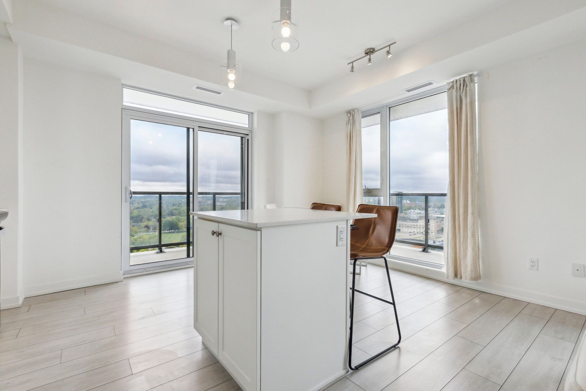 Need a furnished unit.. Welcome to 55 duke street west, unit 1709, kitchener! This bright & spacious 996 sq ft corner end unit with wrap around 167 sq ft balcony will take your breath away. This 2-bedroom, 2-bathroom condo unit is on the 17th floor of young condos and offers modern urban living in the heart of downtown kitchener. The open-concept design features a sleek kitchen with stainless steel appliances, microwave hood fan, breakfast island, plenty of storage, and chic finishes. The kitchen overlooks the dining room and flows effortlessly into the spacious living area, filled with natural light from the wall of windows that offer stunning south west facing views of the city and victoria park. It's the perfect space to relax or entertain guests! Step outside to your private wrap-around balcony and take in two separate views of the amazing downtown kitchener skyline, ideal for unwinding after a busy day or sipping your morning coffee. The primary bedroom is a cozy retreat with a generous walk-in closet and its own ensuite bathroom. The second bedroom, with its large windows and beautiful city views, makes a great space for guests, family, or a home office. Living here means you will have access to fantastic amenities like a fully-equipped gym, a bike studio, and a rooftop walking track with sweeping views of kitchener-waterloo. You can also entertain in the party room or enjoy a bbq in the outdoor area. Plus, this unit includes underground parking and bike locker and is just steps from downtown kitchener, the lrt, and public transit, making commuting a breeze. With restaurants, shops, city hall, google, universities, and entertainment all within reach, you will have everything you need right at your doorstep. Don't miss out, book a viewing today!