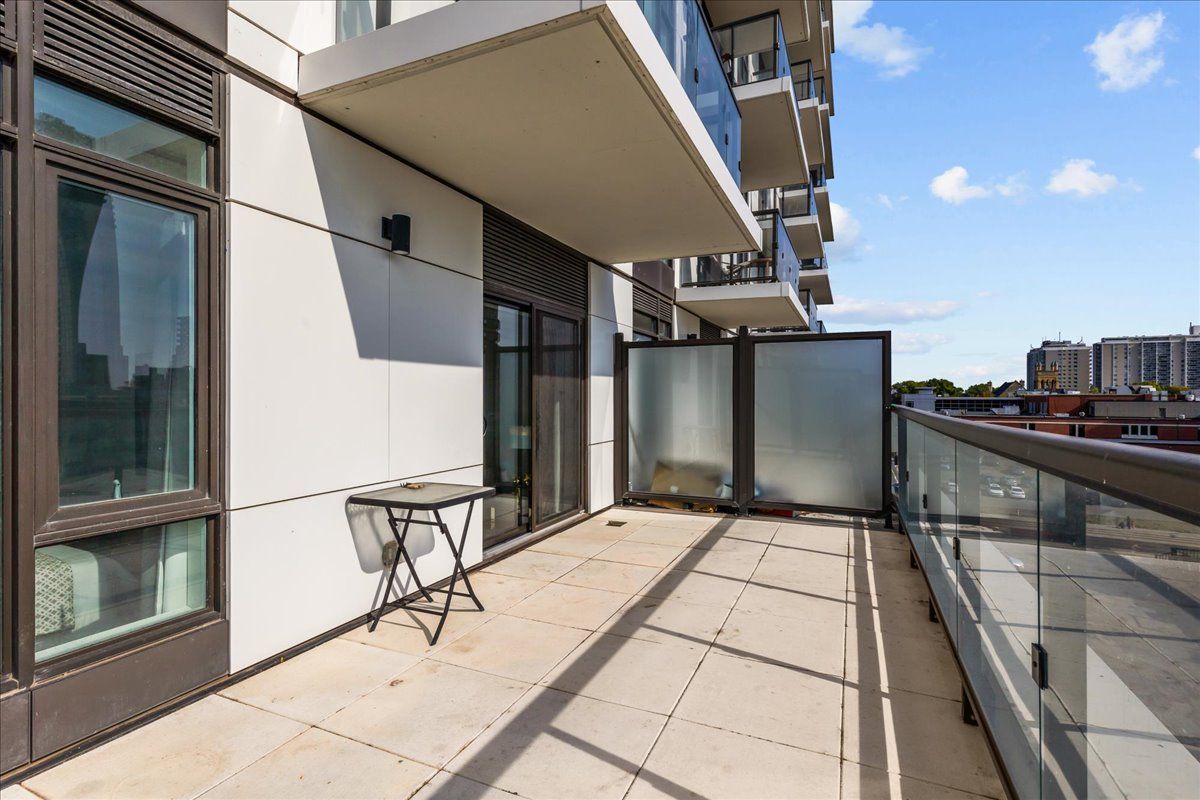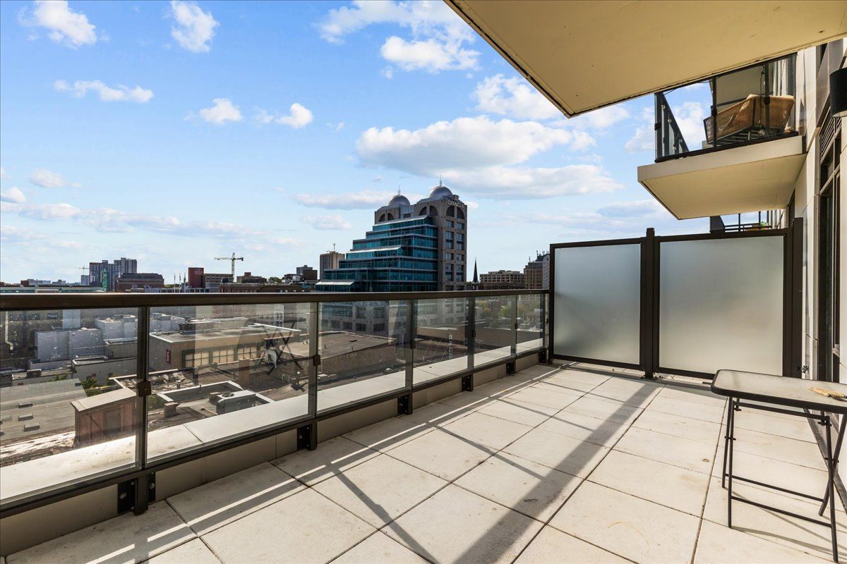 Elite dtk condo! 505 maximizes utility of the space and achieves a grand feel with the tall ceilings, open concept layout, and unobstructed easterly kitchener skyline views. This unit sits at the same level as the roof top patio with bbq access just down the hall. The eat in kitchen with center island, contemporary cabinetry, stainless steel appliances, and quartz countertops is open to the versatile living room space, which sits parallel to the bedroom and both overlook the 204 sq ft private terrace, bringing the total indoor/outdoor size of the unit to 675 sq ft. Click flooring flows throughout the unit. One of the most successfully integrated condo buildings in the downtown core, reconstructing the john forsyth shirt company, duke street level façade & capturing the historic landmark while moving the city forward with urban renewal. The building amenities are impressive; a clean and modern lobby with a full-time concierge service, comfortable sitting spaces and open to the ground level state of the art fitness center, complete with heavy bags and exercise bikes surrounded by windows connecting you to the outdoors. Truly unique is your ability to take your fitness journey outside to the 25th floor, roof top running track while you enjoy the stunning 360-degree views. When its time to relax or entertain larger groups, take advantage of the 5th floor, furnished patio and party room, overlooking the duke street forecourt. The building also includes car wash station, dog wash station, and artificial turf dog walk. Short walking distance to victoria park, charming cafés, popular restaurants, boutique shops, and lrt. Downtown kitchener is changing to become a popular urban center and now is the time to take advantage. Dont miss out
