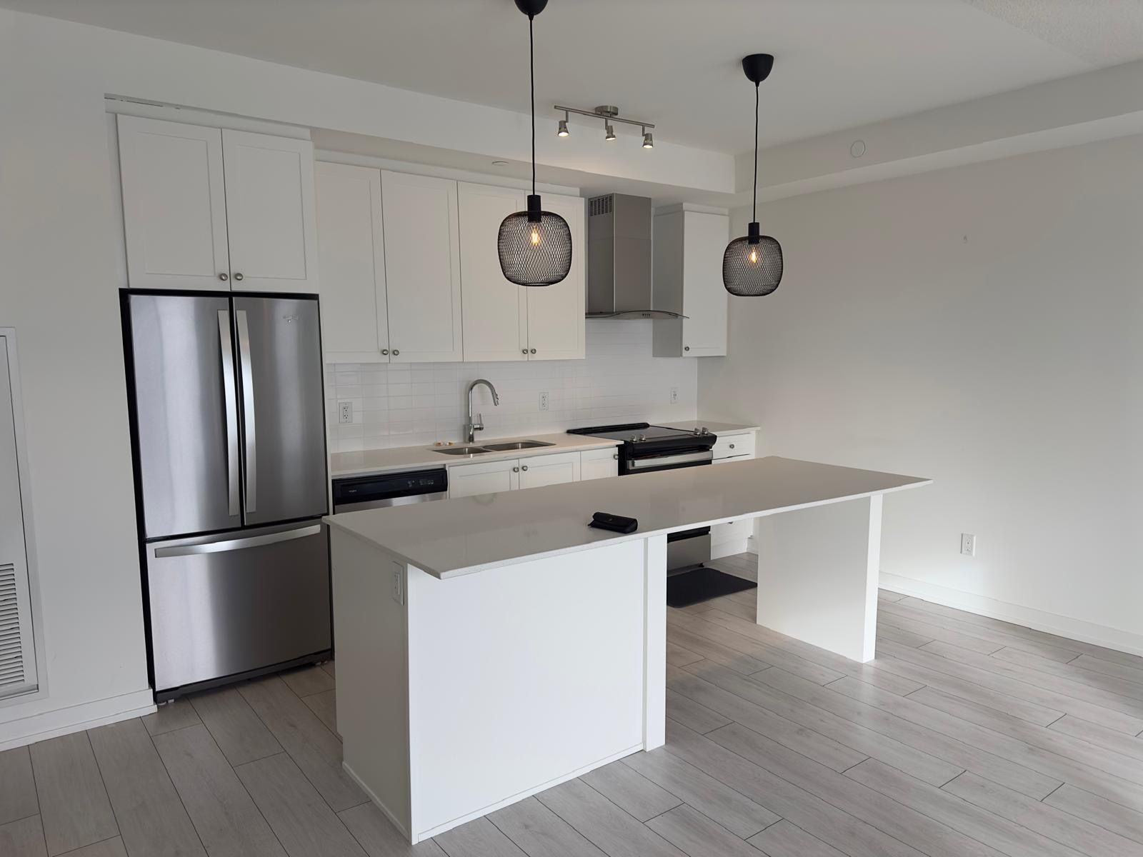 Live in the heart of downtown kitchener at young condos! Experience urban living at its finest in this spacious 1-bedroom + den unit at young condos, where modern design meets exceptional convenience. Located just steps from shopping, dining, victoria park, and everything that makes city life exciting, this condo is perfect for those seeking both style and location. Spacious layout: over 687 sq. Ft. Of indoor living space with a private 63 sq. Ft . Balcony that offers stunning city views. Bright & airy interiors: large windows throughout fill the open-concept space with natural light, creating a warm, inviting atmosphere. The well-thought-out floor plan ensures maximum comfort and functionality, featuring a seamless flow between the living, kitchen, and den. A large island with a breakfast bar and subway tile backsplash add a contemporary touch to the kitchen. Two lockers included; one underground with a bike rack and another in the building for daily essentials.