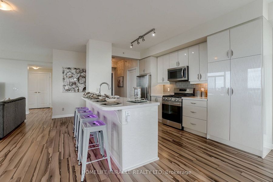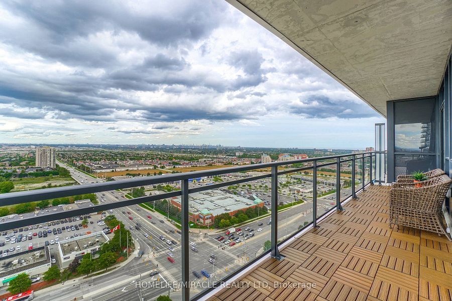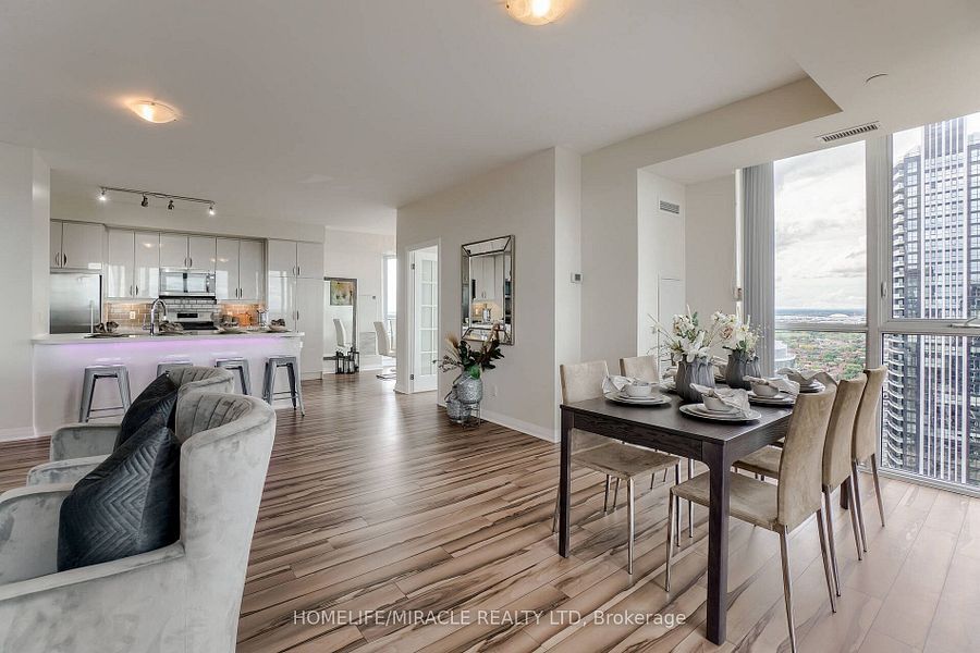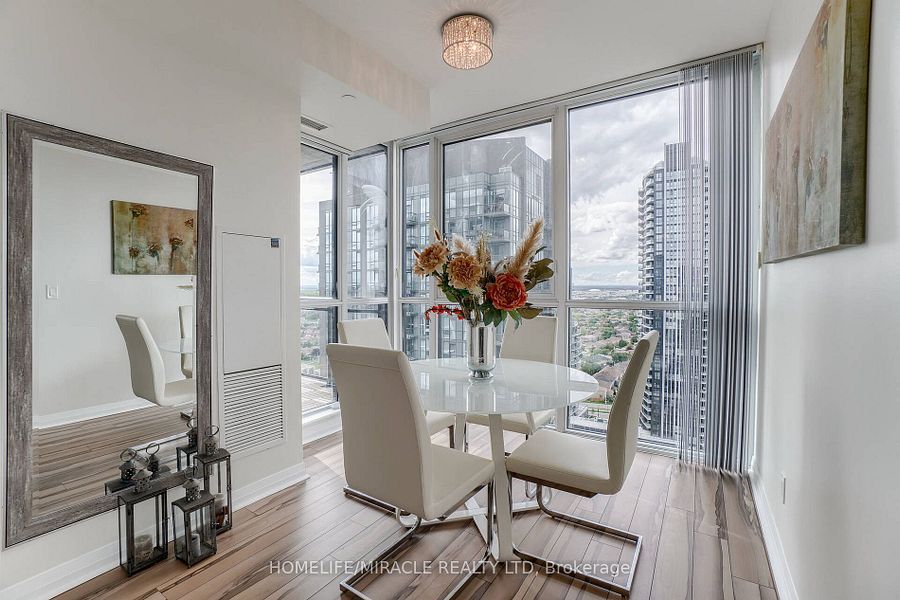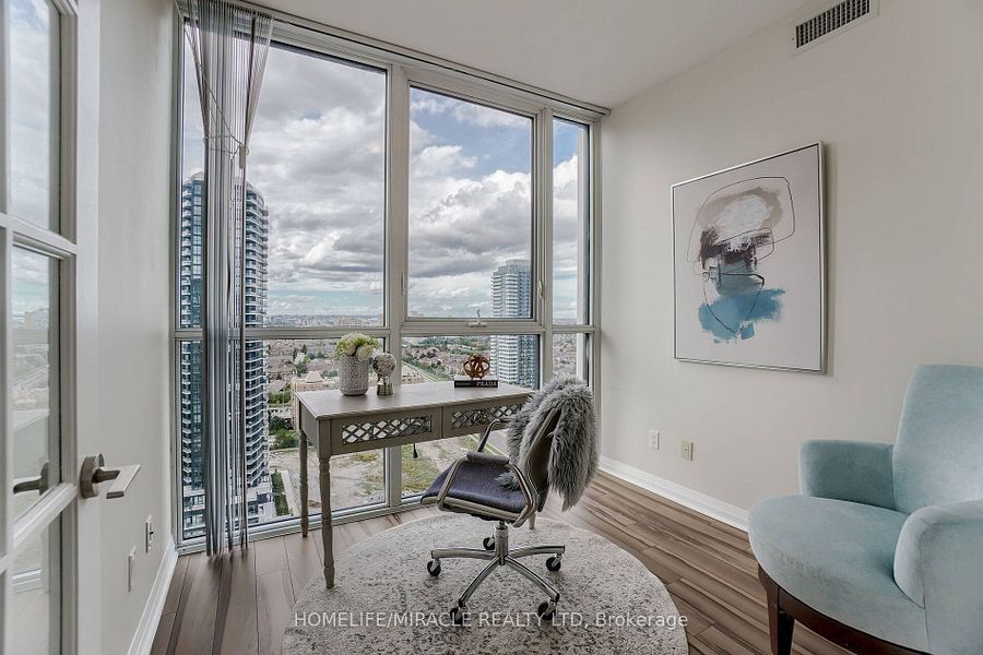 Welcome to this stunning 2,100 sq. Ft. Luxury corner penthouse, offering premium finishes and floor-to-ceiling windows that flood the space with natural light. With only four units on the floor, enjoy enhanced privacy and exclusivity. This spacious layout features 3 bedrooms plus a den and two full bathrooms. The open-concept living and dining area is surrounded by floor-to-ceiling windows, creating a bright and airy atmosphere. The generous primary bedroom includes a large walk-in closet, a 5-piece ensuite, and direct access to a private balcony. Enjoy top-tier building amenities including 24-hour security, a fully equipped gym, yoga studio, sauna, indoor swimming pool, and party room. Additional highlights include two large balconies, two parking spaces, and a spacious locker. Located in a prime area directly across from the new hurontario lrt, this property offers excellent convenience and connectivity. The unit is currently leased for $5,000 per month, with a tenant willing to renew.