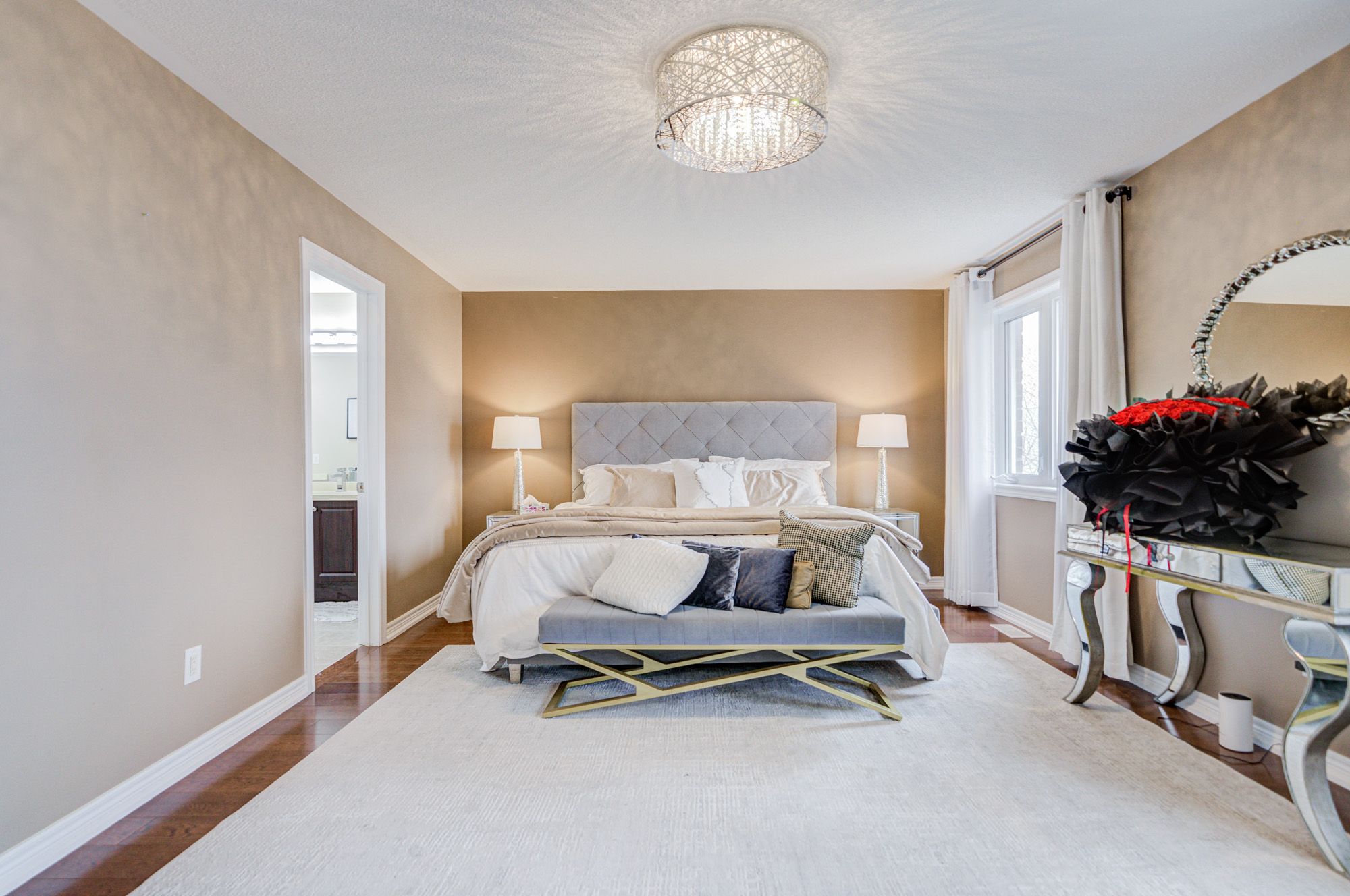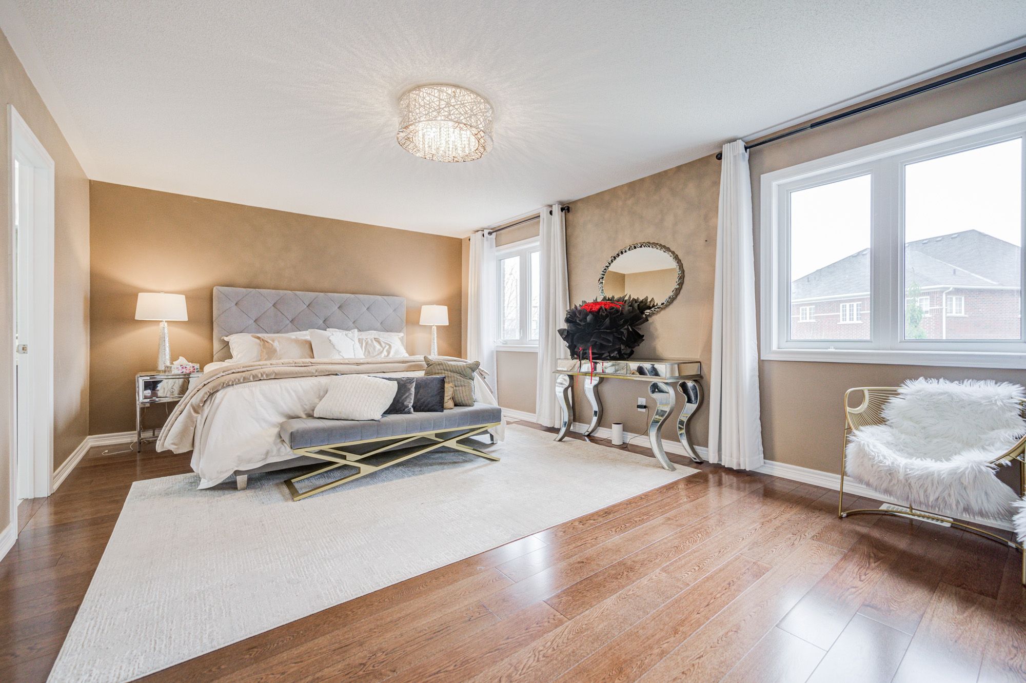 A must see! Premium south facing deep lot! Enchanting detached double garage modern home built by monarch* over 5000 sqft living space (include prof finished bsmt) + beautiful landscaping w/ inground sprinkler & lights* brand new upper-level hardwood flooring throughout* newly painted* one-of-a-kind chandelier light* library rm main fl* 9 ft ceilings* custom entrance door + wrought iron picket* pot lights* open-concept kitchen combined with living rm & dining rm* walk-out to deck in the court* 5-pc ensuite with w/i closet* 3 semi-ensuites* smart thermostat, ev charger, professional interlocking in front and backyard with lovely designed landscaping* convenient location* close to mall, park, community rec centres, costco & hwy 404* victoria square ps & richmond green secondary school* sir wilfrid laurier ps and pierre elliott trudeau hs(fi)* this is the perfect home for all!