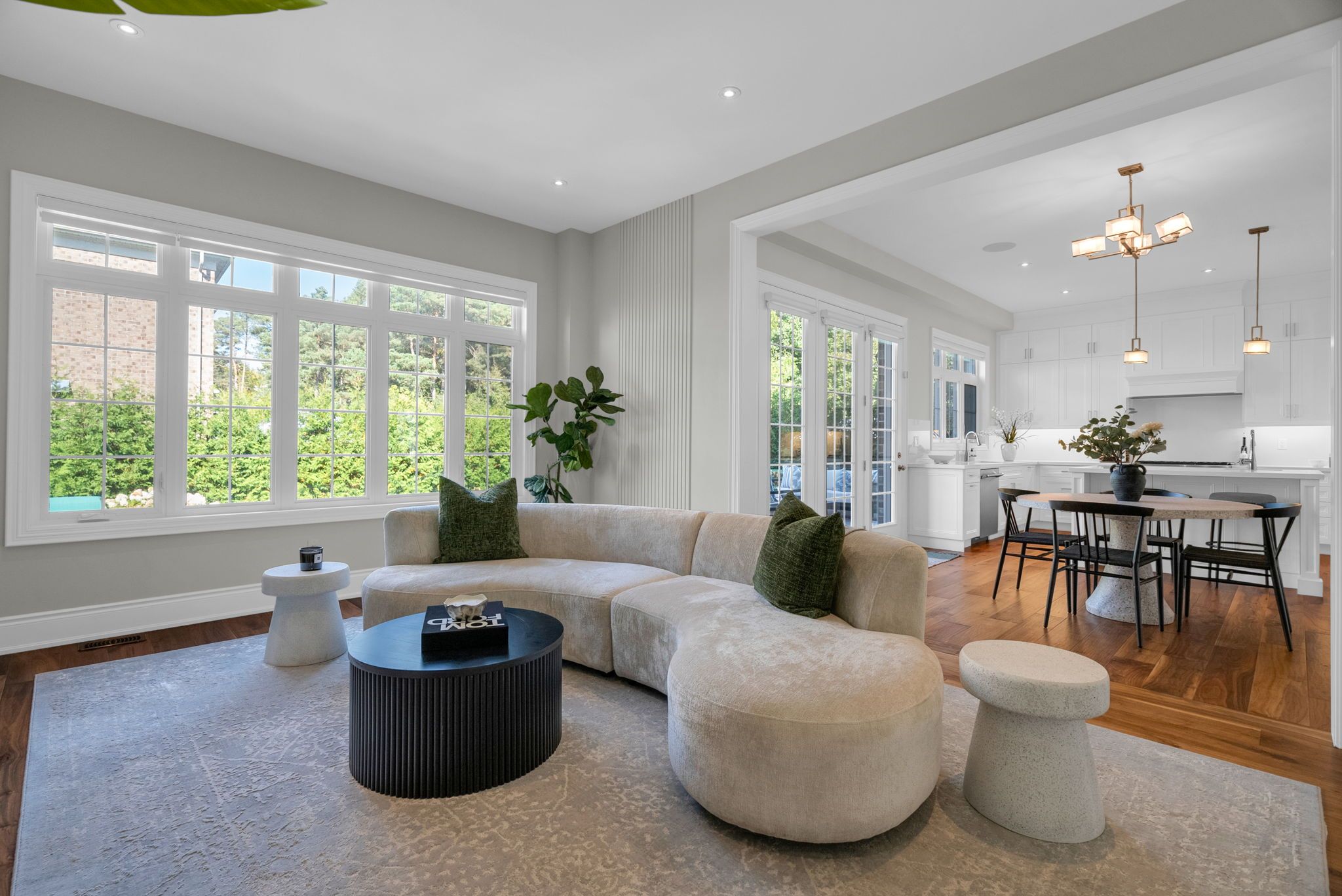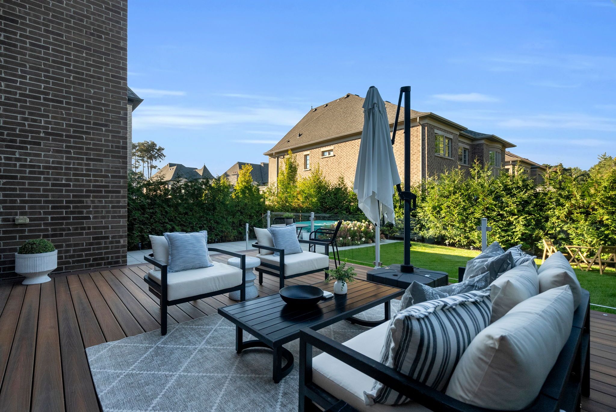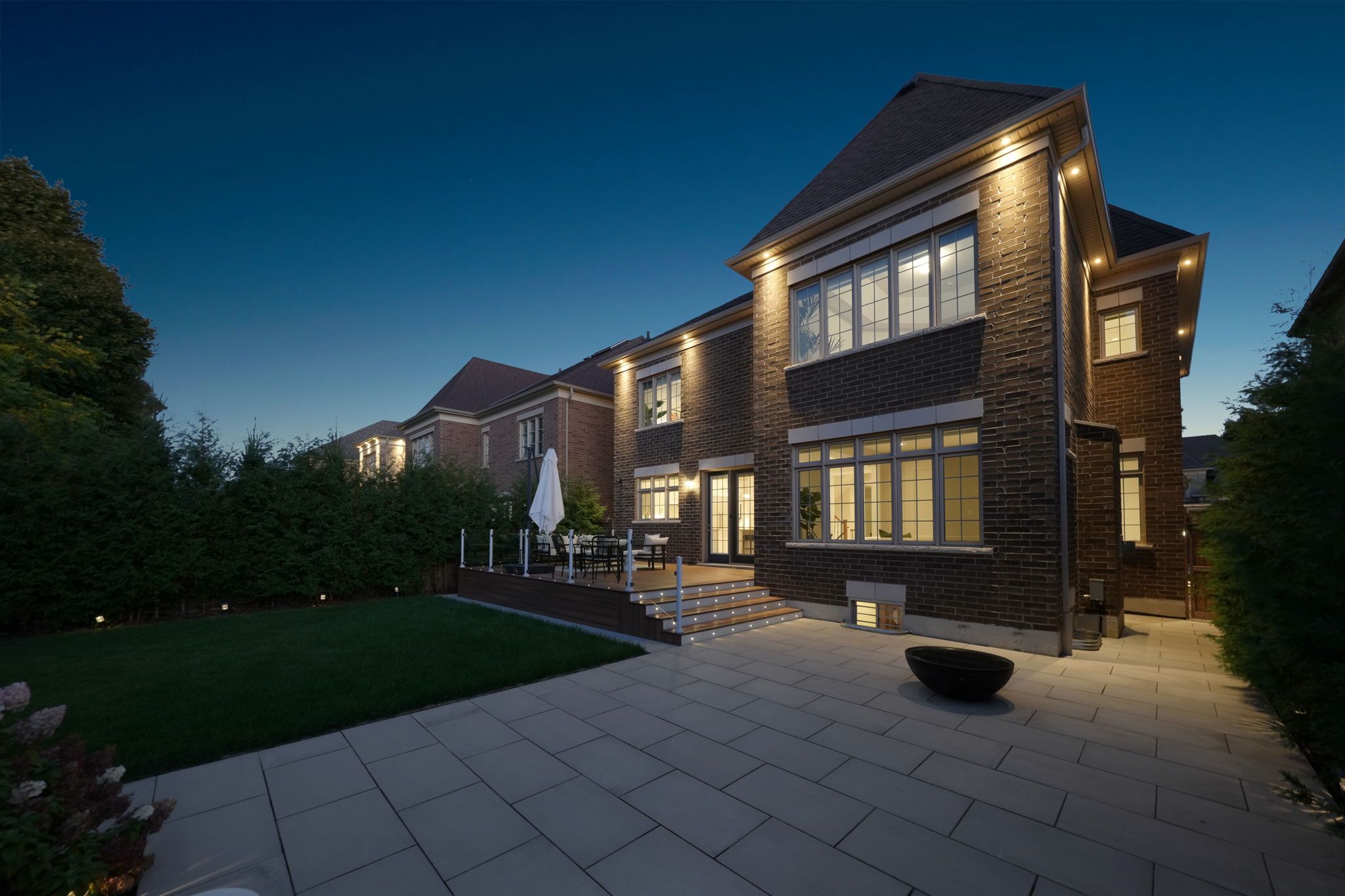 Welcome to 55 glensteeple trail an extraordinary executive residence where timeless elegance meets modern luxury in one of auroras most sought-after communities. This 3,576 sq. Ft. Home (above grade) sits proudly on a premium 49 ft x 118 ft lot and offers a thoughtfully designed layout with 4 spacious bedrooms plus a dedicated den and 3. 5 bathrooms. There are soaring 10-foot ceilings on the main level and 9-foot ceilings on the second floor and basement, with custom walnut engineered hardwood and tile throughout. At the heart of the home, the chefs kitchen impresses with premium thermador appliances, ceiling-height cabinetry, dual sinks, and a butlers pantry with a wine fridge. The living area adjacent to the kitchen provides ample space for seating arrangements as well as a custom limestone fireplace, specialized wall-detailing and fluting. Upstairs, the generously sized primary suite is a true retreat, featuring a spa-like 5-piece ensuite complete with a private water closet, two separate vanity sinks, a stand-alone soaker tub, and a luxurious glass-enclosed shower. Step outside to an impressive backyard retreat designed for both relaxation and entertainment, boasting a low-maintenance composite deck with integrated lighting, a built-in irrigation system, custom stone patio, and a 98-jet 10-person hot tub. Exterior enhancements also include a gas line, composite exterior finishes, and elevated security features. Inside, comfort and convenience are elevated even further with built-in speakers and an hrv system for a fresh-air home all year round. Situated in a vibrant, family-friendly neighbourhood, 55 glensteeple trail is steps from excellent schools including highview p. S. And aurora h. S., multiple parks and playgrounds, family activities, and convenient public transit. Nature lovers will enjoy quick access to briar nine park and reserve, while essential services like southlake regional health centre, fire, and police stations are all close by.