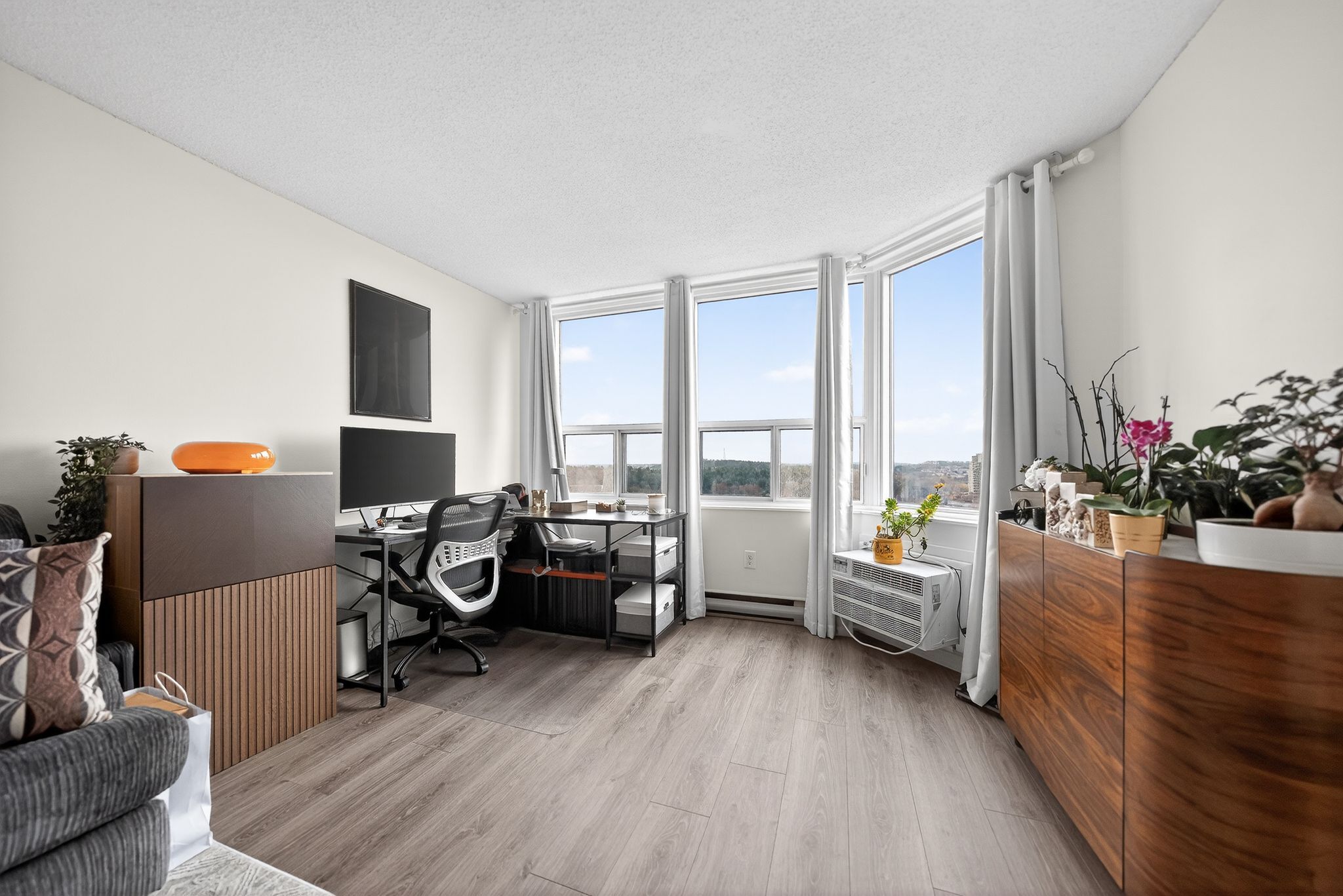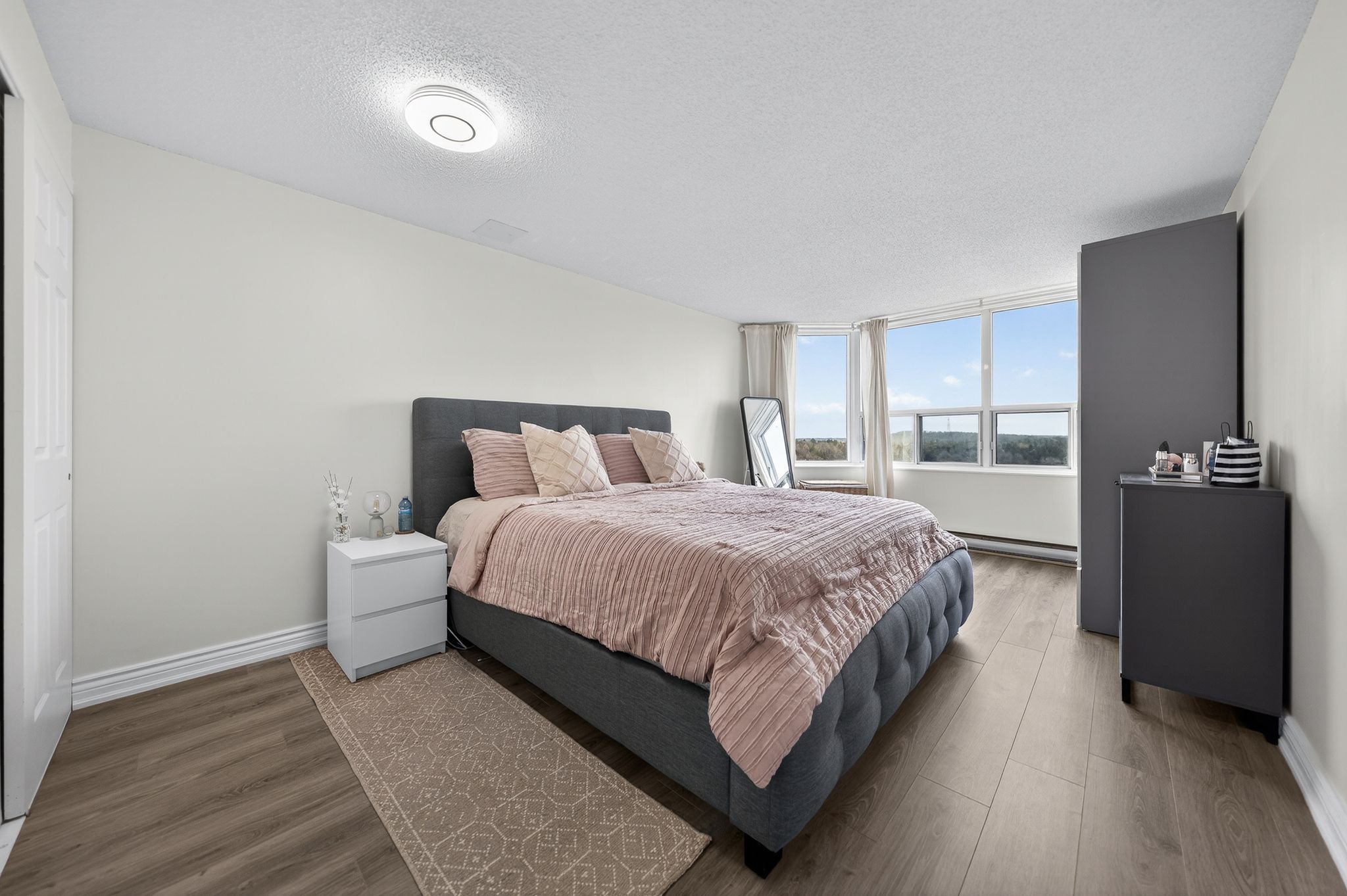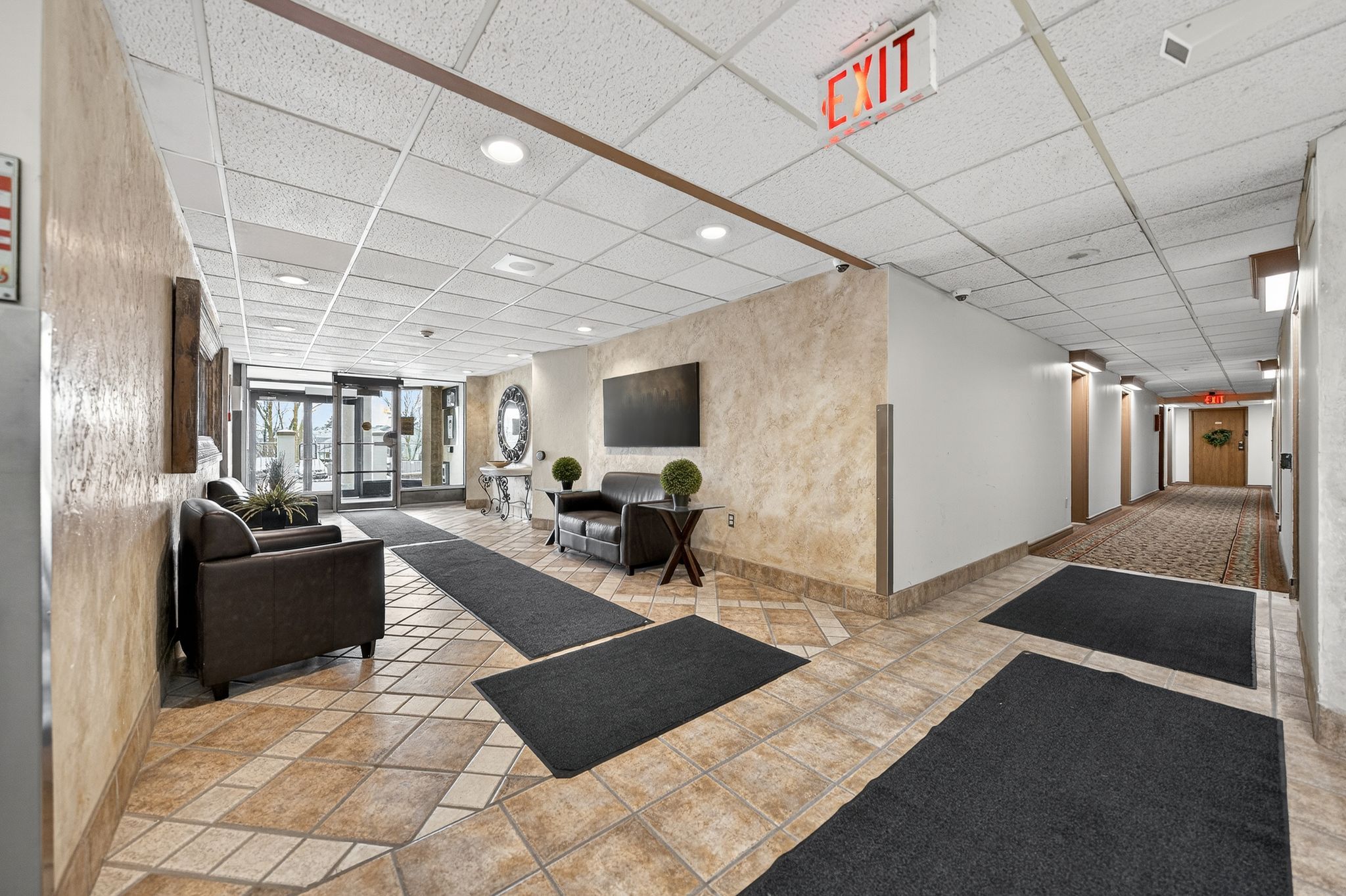 • Amenity-rich building with fitness center, sauna, and secure entry.