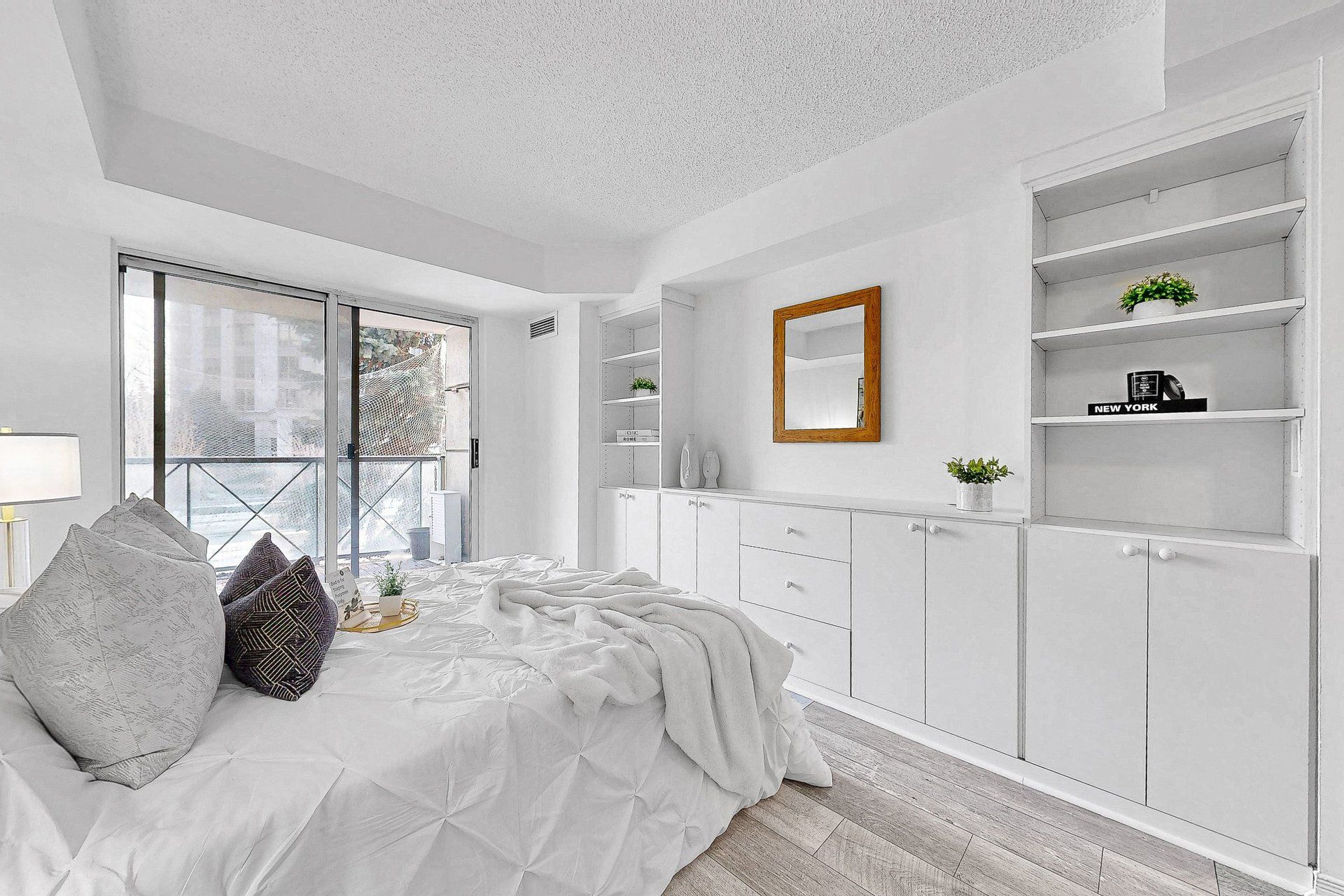 • Primary bedroom includes built-in shelving and a generous walk-in closet.