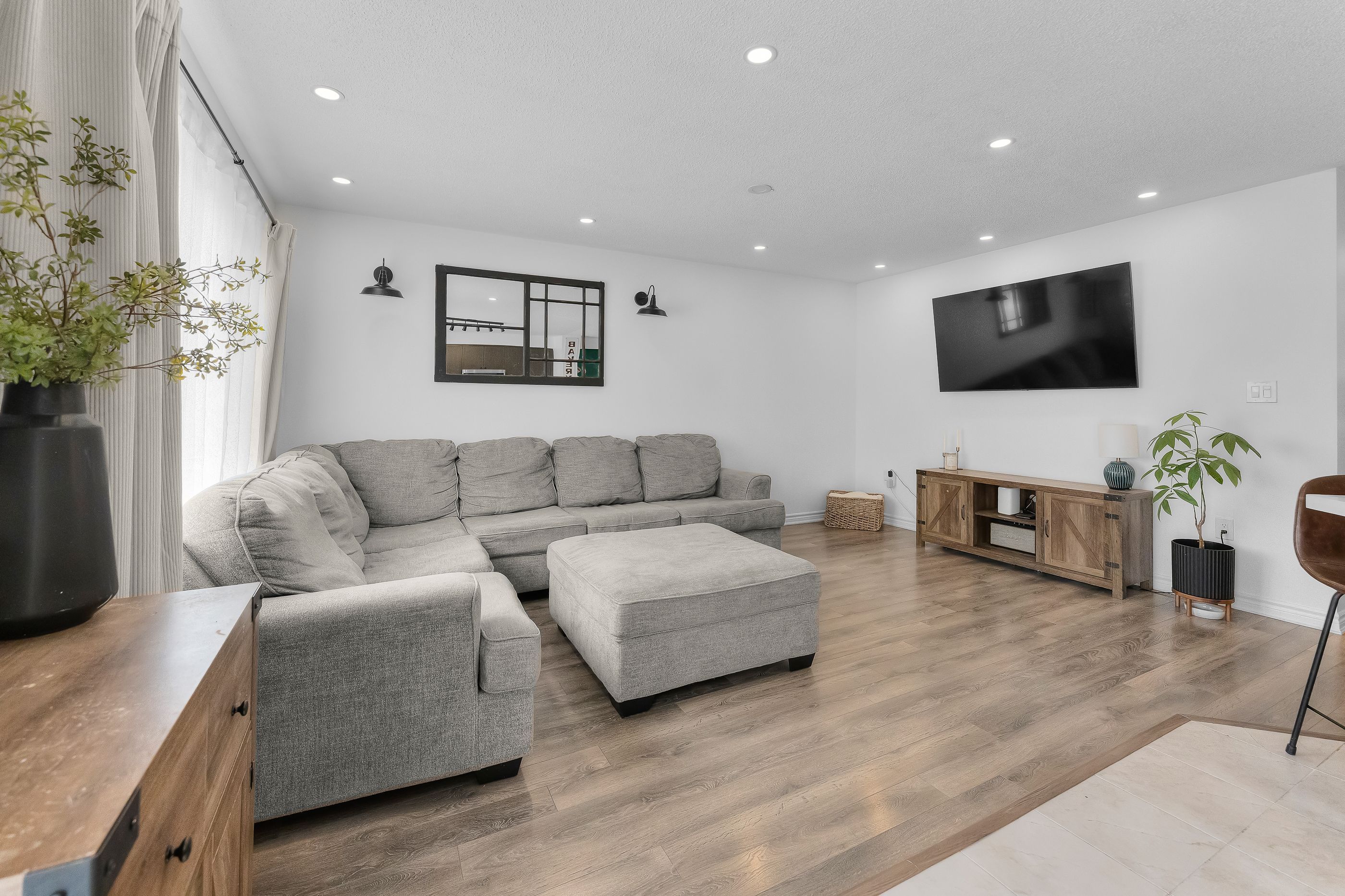 Bright, stylish, and move-in ready! This well-maintained home features a modern neutral palette with warm wood accents, contemporary plank flooring, and a classic wood staircase. A welcoming tiled entry leads to a functional open-concept main level with a modern kitchen, stainless steel appliances, and a bright living/dining area-perfect for entertaining. The main floor includes a chic 2-pc bath with wainscoting and updated fixtures. Upstairs offers 3 generously sized bedrooms with ample natural light, including a primary bedroom with a walk-in closet, 3-pc ensuite, and eye-catching accent wall, plus convenient second-floor laundry. The finished basement features a cozy electric fireplace, spacious rec room, and additional storage. Ideally located close to parks, schools, shopping, and major commuter routes-an exceptional turnkey opportunity!