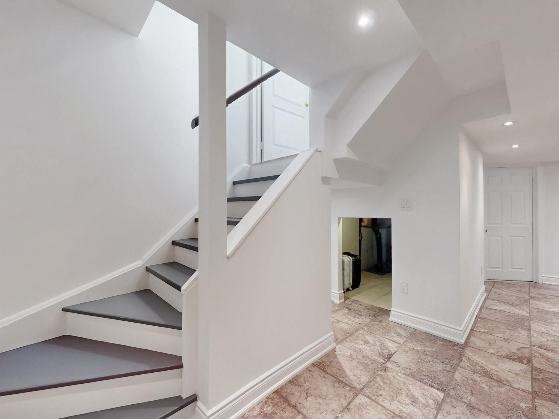• Open concept finished basement featuring laminate and ceramic floors.