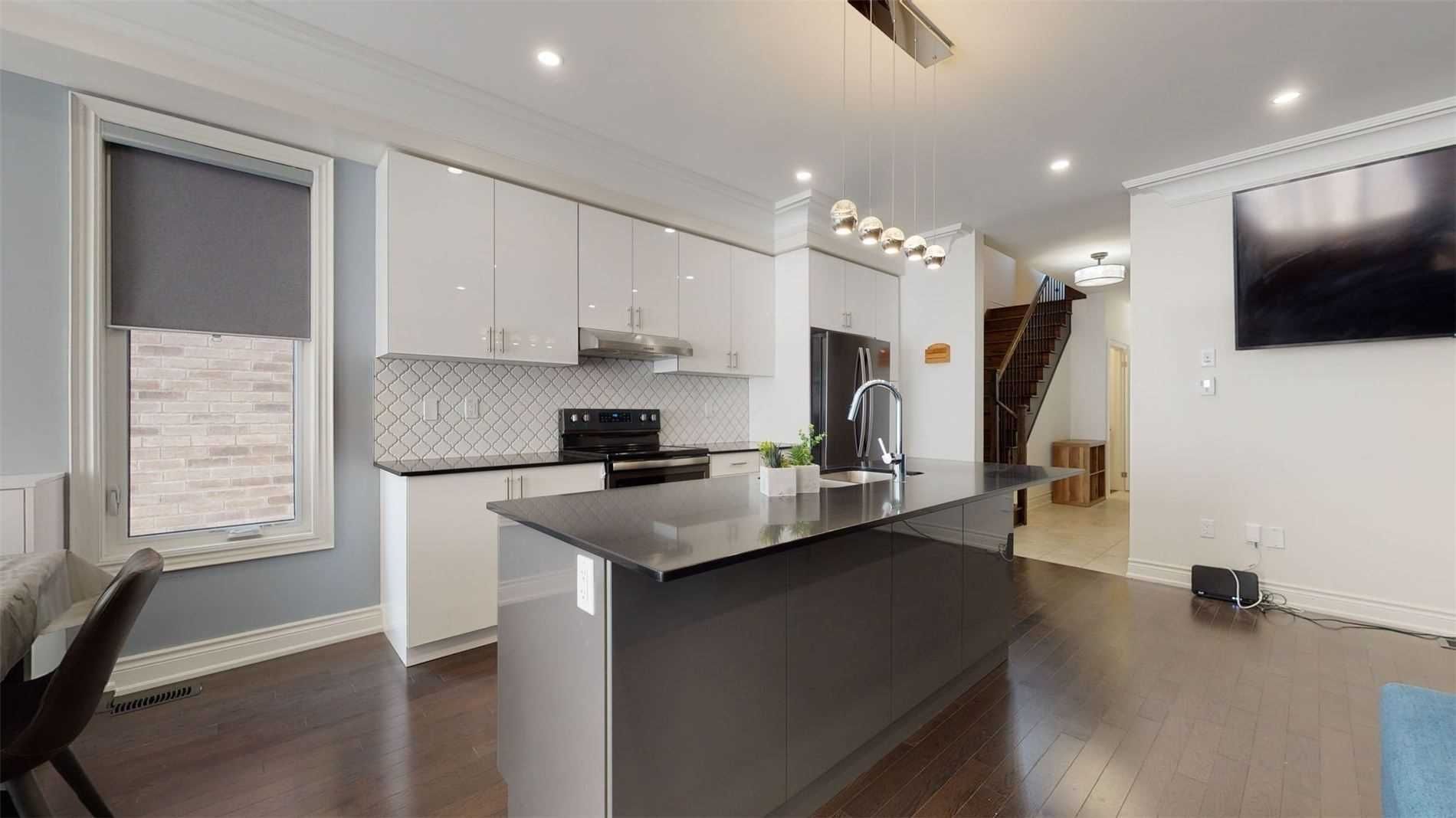 • Elegant designer kitchen featuring Quartz countertops and stylish backsplash.