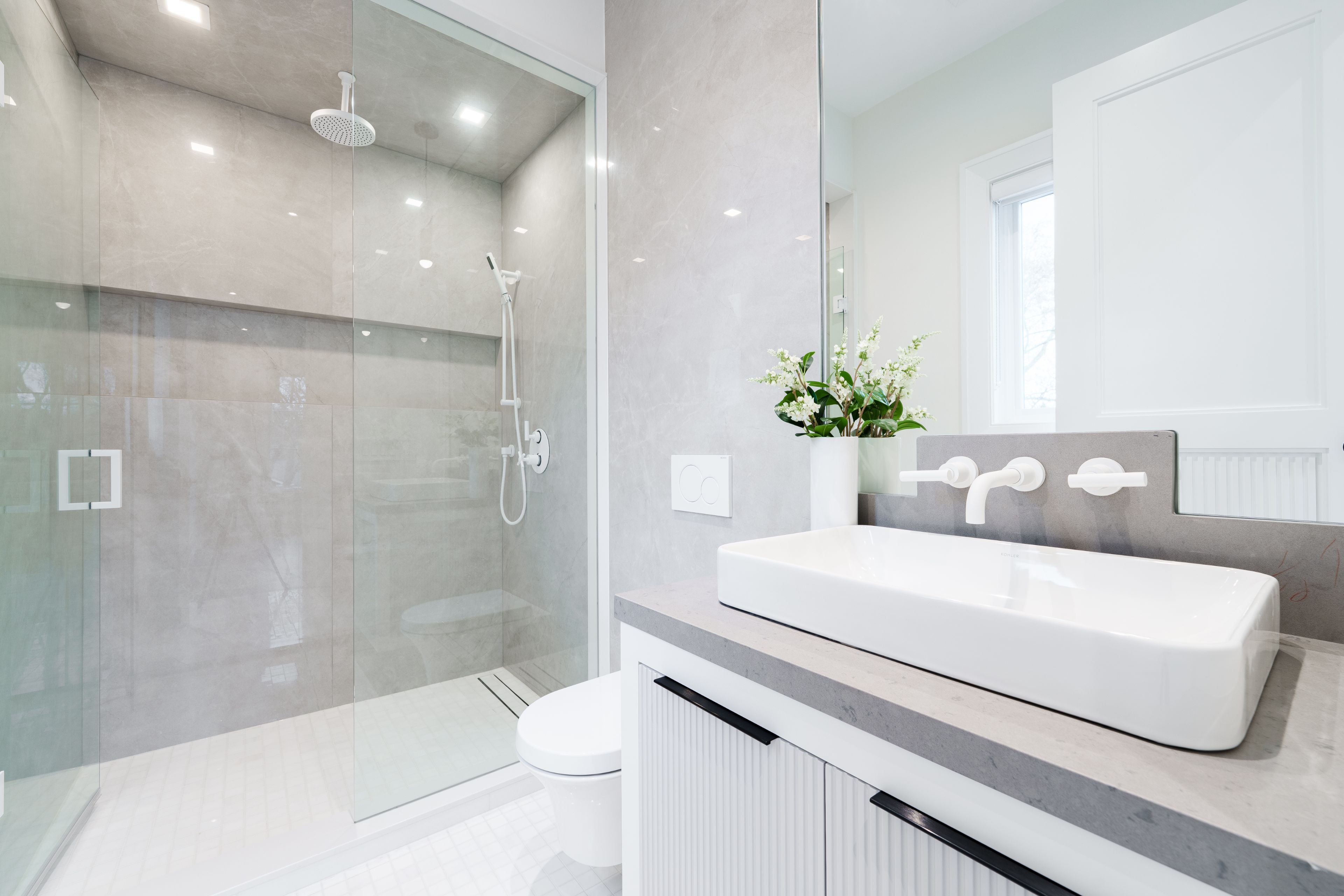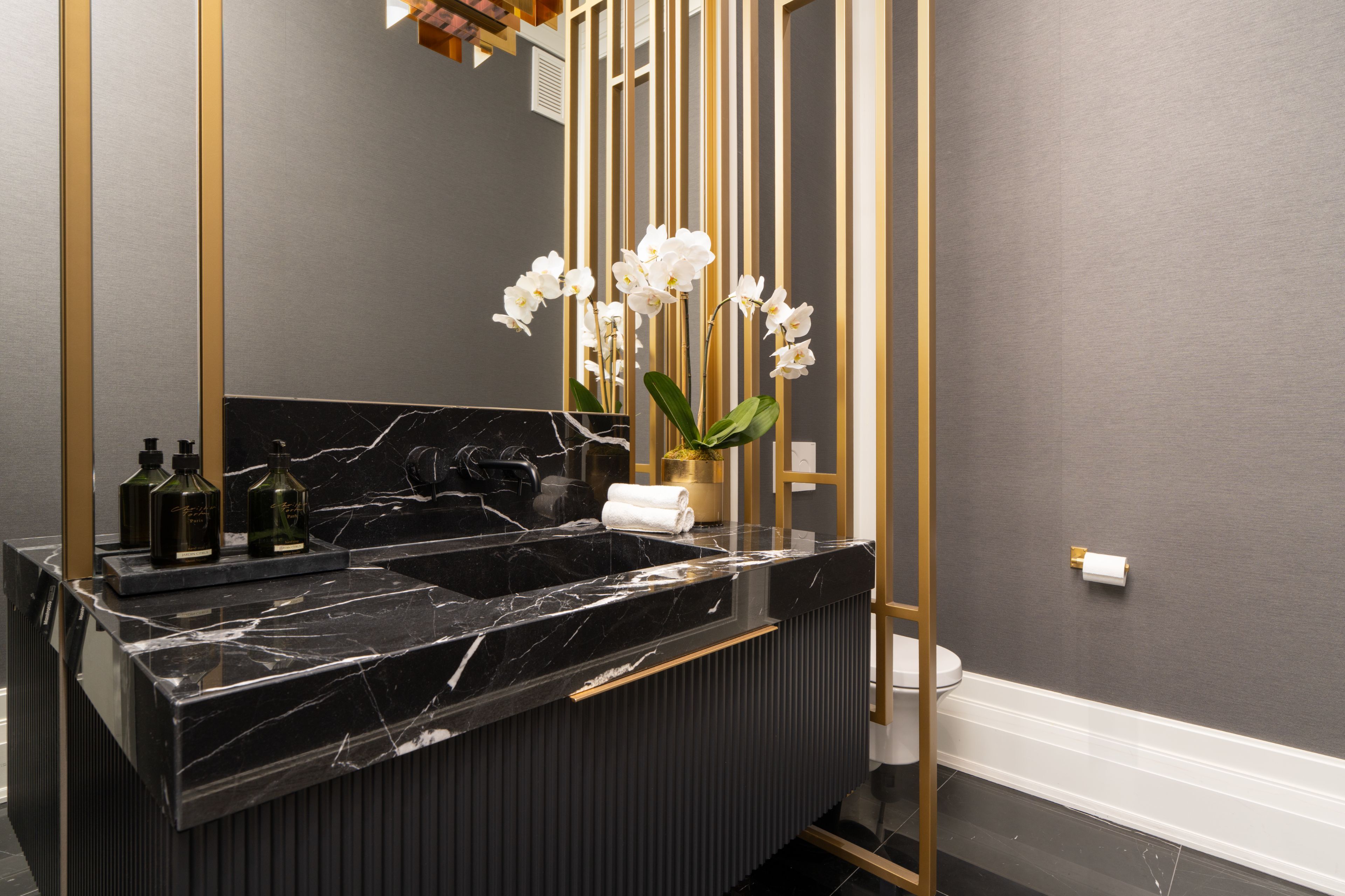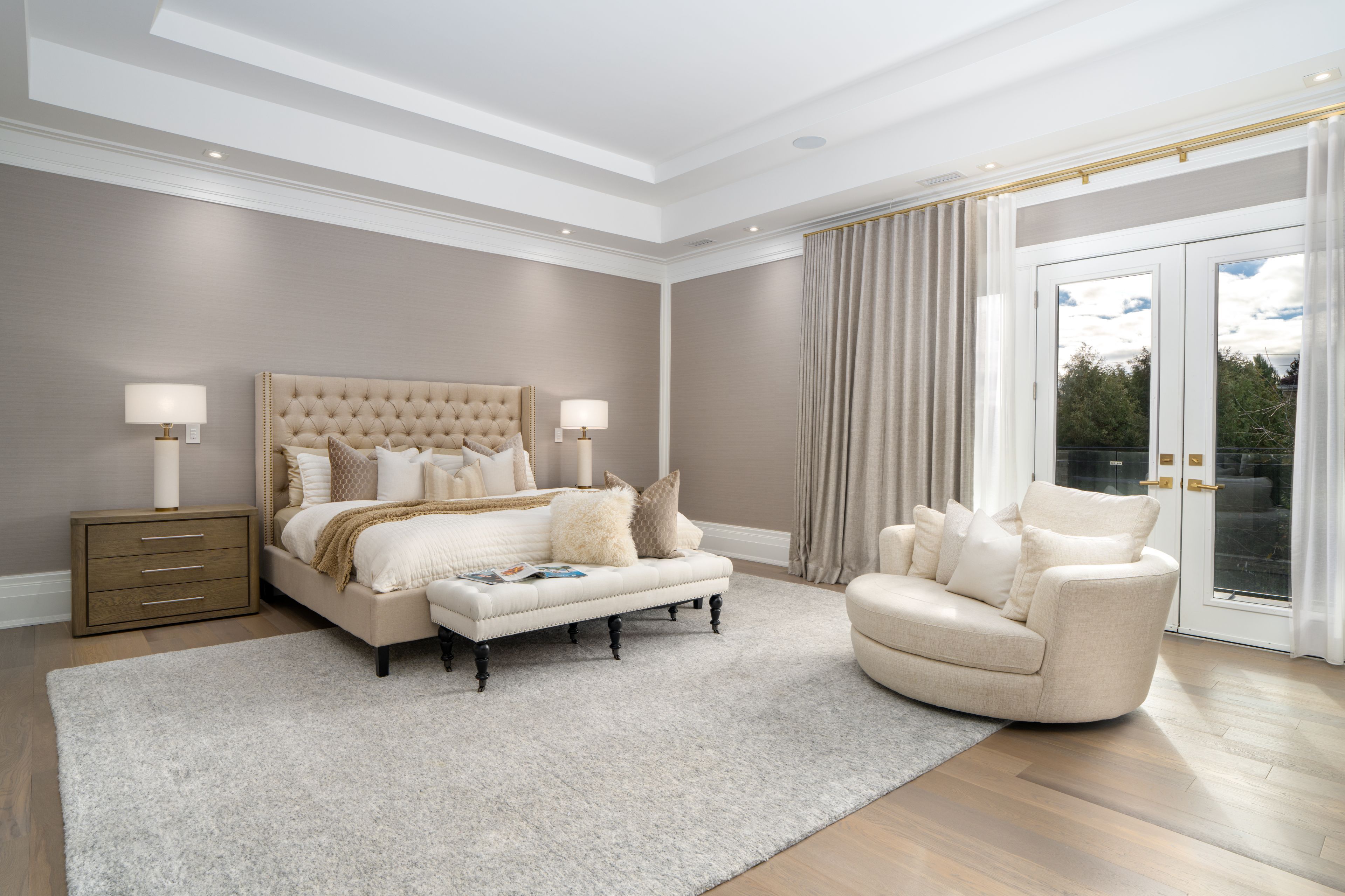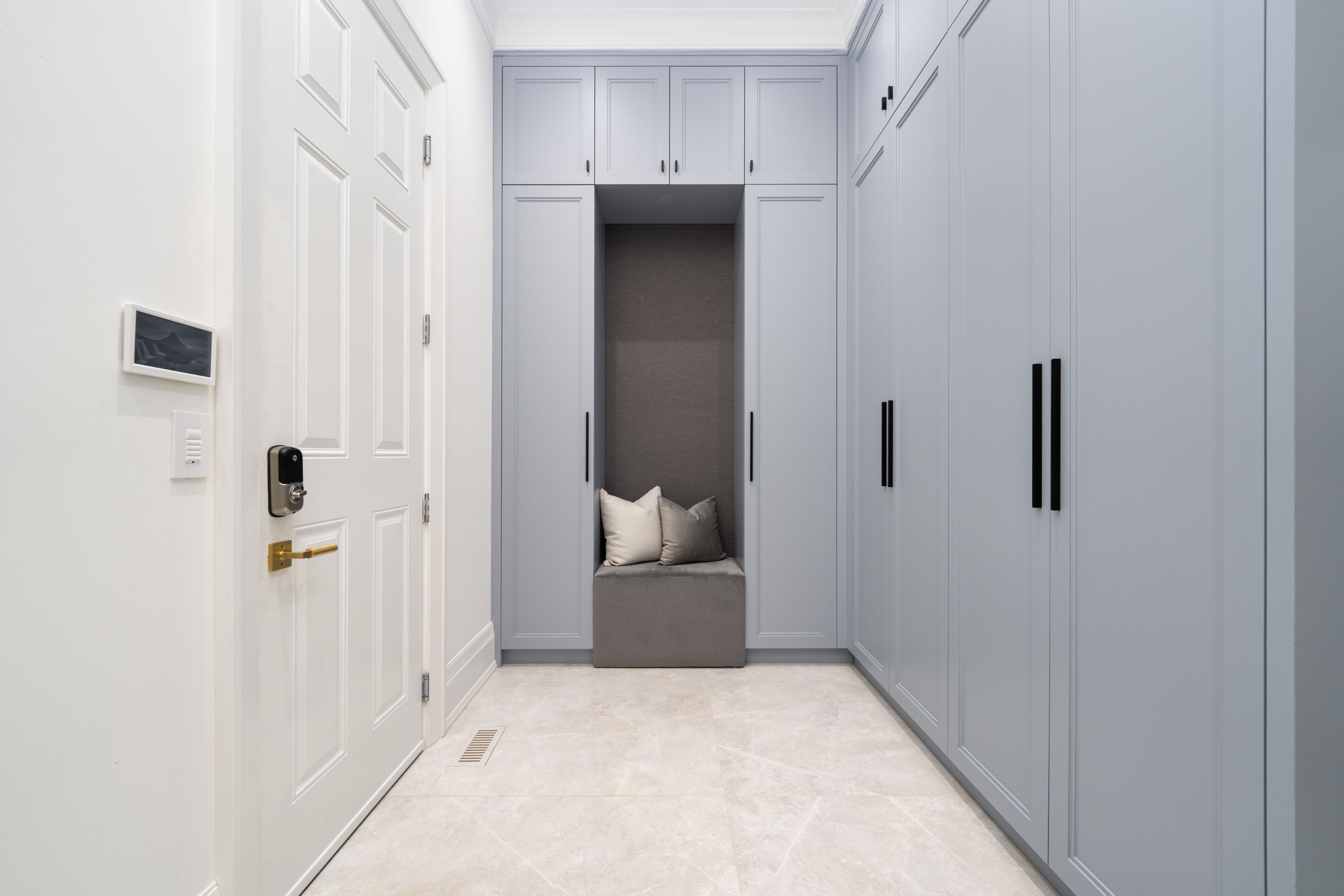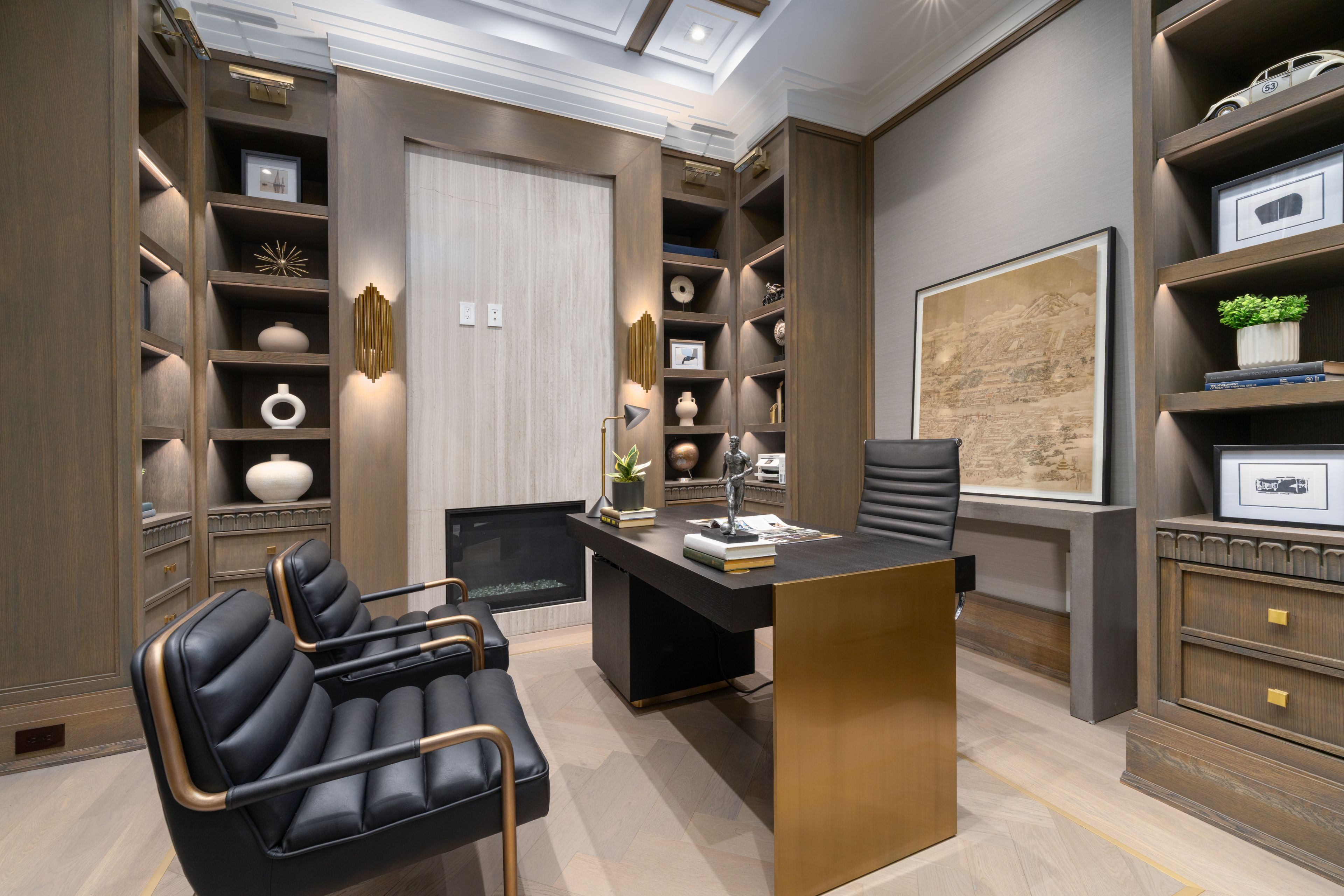 Neighbourhood of banbury only about 650 homes in this neighborhood, right next to the bridle path, considered one of toronto's premiere neighbourhoods. Welcome to 55 leacroft, showcasing a 5 bedroom 9 bathroom, multiple fireplaces throughout the home, pool, a cabana, wine cellar, a sauna, movie theatre, gym, courtyard, a library, and even your own elevator. 11 ft main, 11 upstairs. Entire house is automated. 8,800 square feet of living space 10,000 sq ft land area 62 feet pies out to 117 ft at the back. Roof is synthetic slate, downspouts, gutters, coated copper, not aluminum. Designed by a renowned toronto-based architectural firm created by lorne rose who has designed beautiful homes across the gta. Main floor with transitional entryway, dolomite marble in this really unique almost chevron like pattern, pairs well with the herringbone hardwood flooring throughout the house, elements of brass woven throughout the home. Kitchen featuring a huge pantry, 30 inch standing fridge and another 30 inch standing freezer, ebony coloured cabinets, bookmatch marble throughout including over the island, ribbed brass accents, metal coated accents, la canche stovetop, waterstone fixtures.