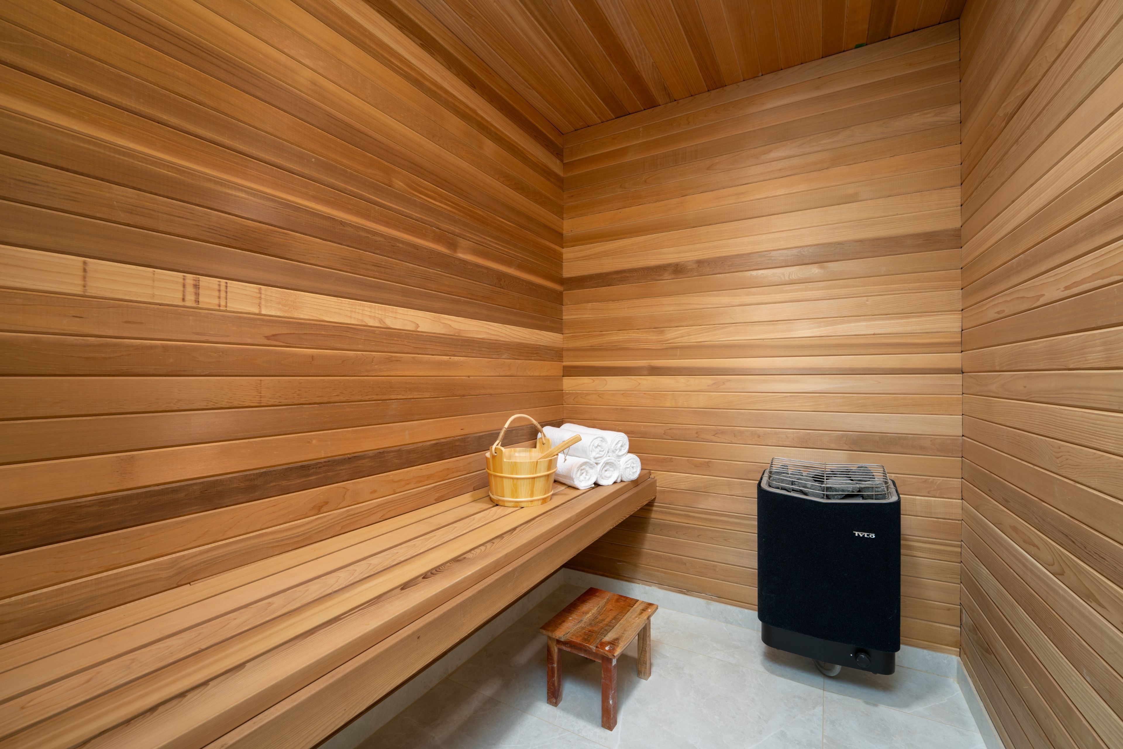 • Features a gym, movie theatre, wine cellar, and sauna for entertainment.
