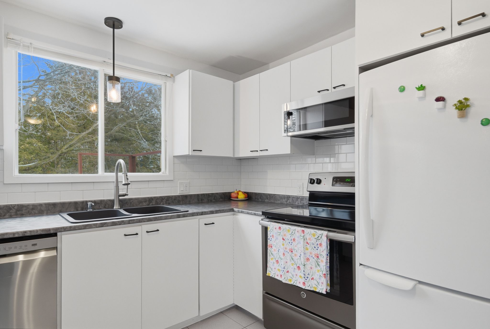 Welcome to this beautifully maintained 3 bedroom townhome located in kingston's sought-after east end. The ground level provides direct interior access from the garage and features ample storage, a dedicated laundry room, and a versatile bonus space-perfect as a home gym, music room, or office-with a walkout to the private backyard. Upstairs, enjoy a bright and inviting open-concept living area highlighted by a large bay window with a charmingbuilt-in ledge-ideal for displaying plants. The kitchen has been thoughtfully updated with a new over-the-rangemicrowave (2022), dishwasher (2024), stylish backsplash, and modern lighting, making it both functional and attractive. Step out from the dining area through patio doors onto a spacious, recently stained deck, complete with agas bbq and direct gas hookup-perfect for outdoor entertaining. A conveniently located and updated 2-piece bathroom (2021) completes this level. The third floor offers three generously sized bedrooms, along with a refreshed main bathroom (vanity with doublesink, 2021) that includes direct access to the primary bedroom for added convenience. Outside, enjoy a large, fully fenced backyard-ideal for family activities, pets, or relaxing in your own private space. This home has been recently painted throughout and includes a ring alarm system (door and window sensors, doorbell and camera). Situated close to schools, shopping, parks, and all amenities, this move-in ready home is an exceptional opportunityin a prime location.