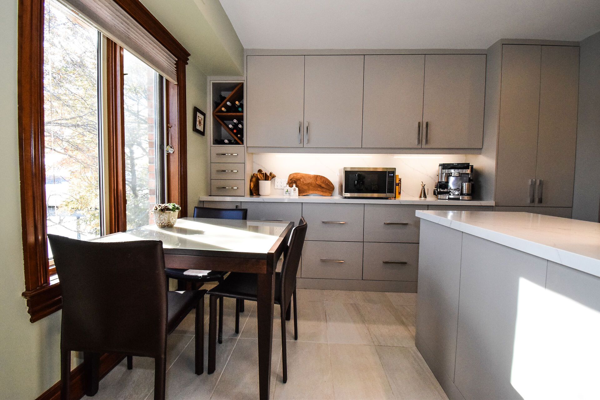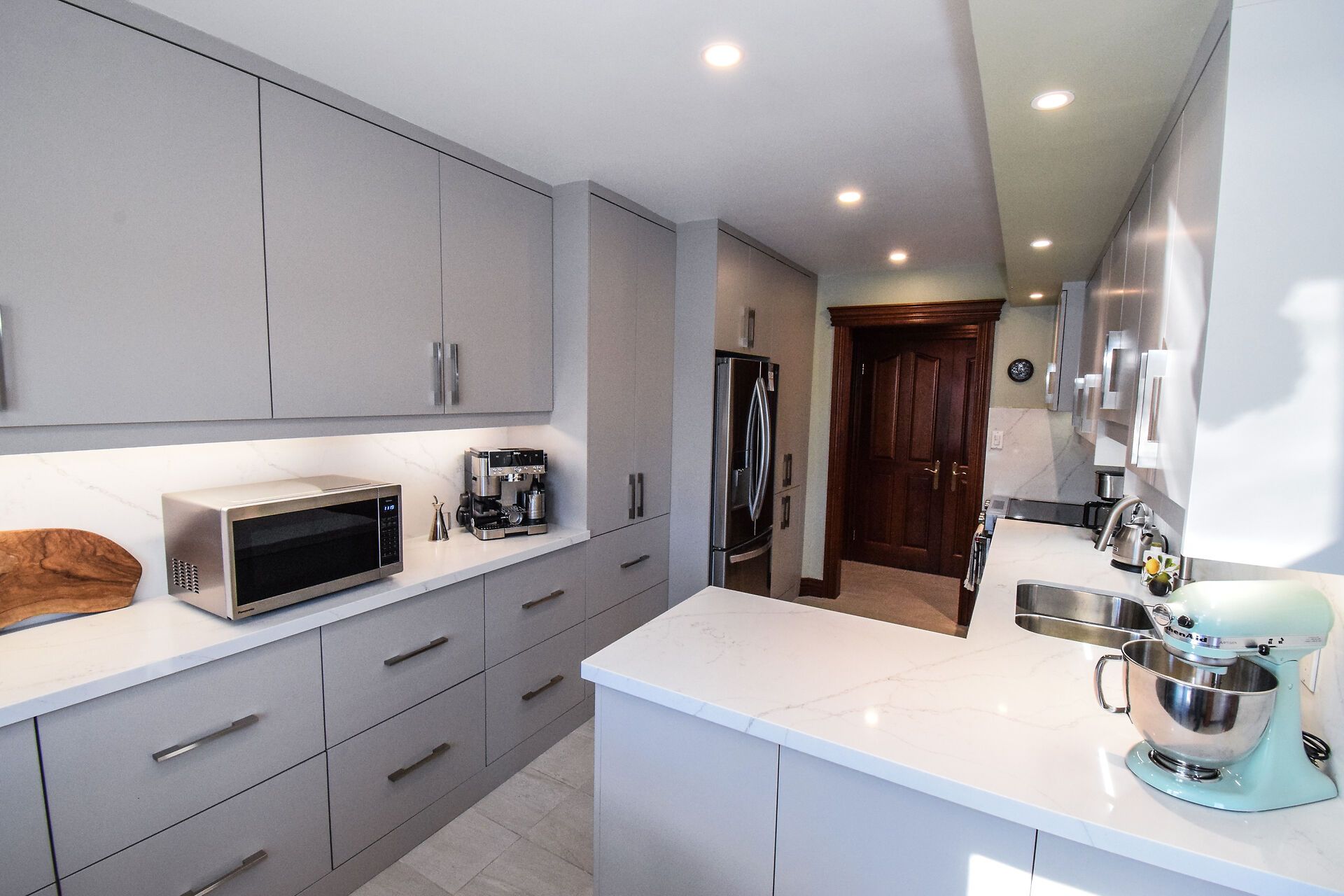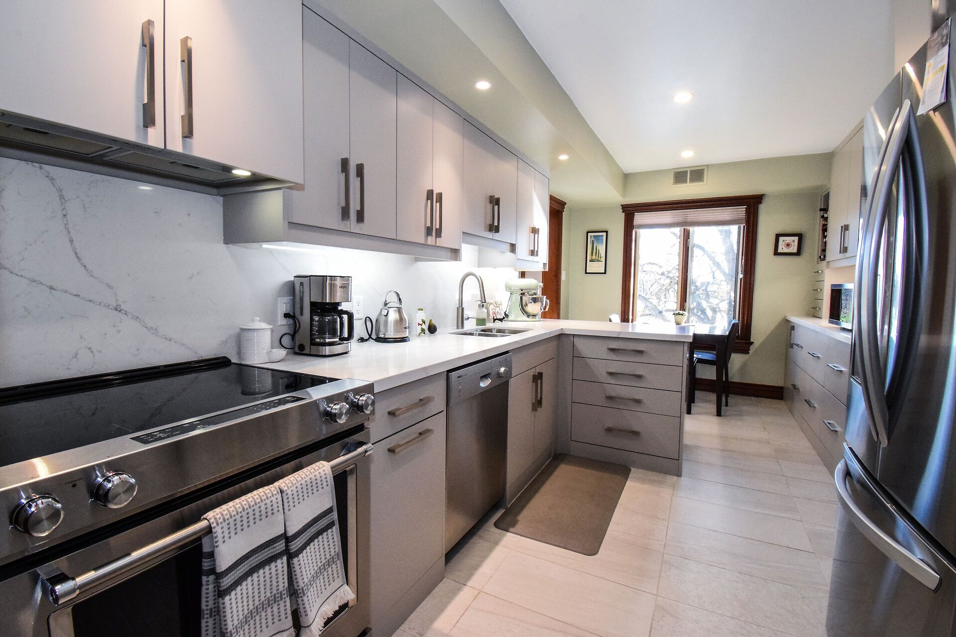 • Gourmet kitchen features quartz countertops, custom cabinetry, and water views.