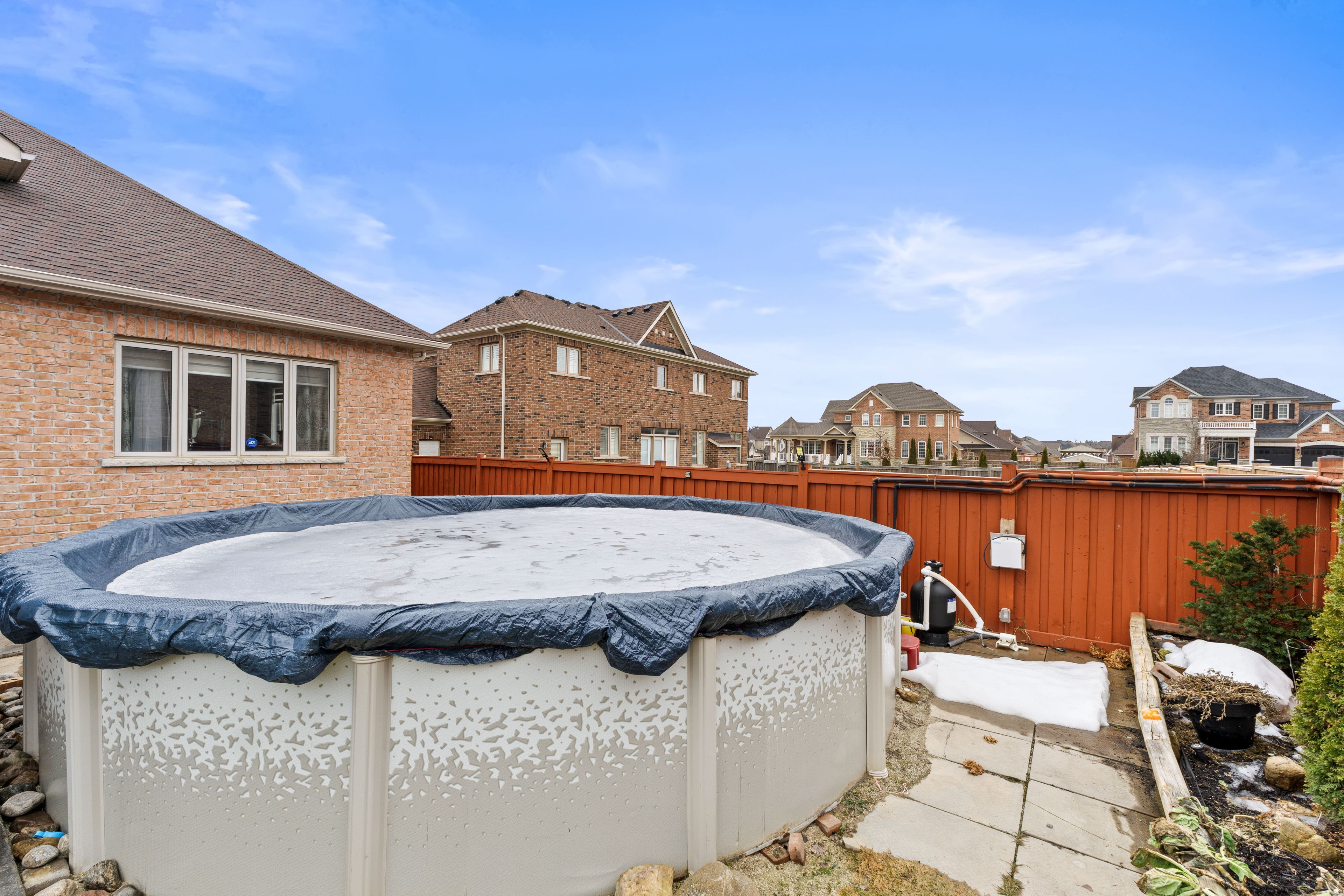Beautiful 80-foot wide lot with a 5-bedroom detached home featuring 3 car garages. The house has a double frosted glass front door, a den on the main floor, a great room with a gas fireplace that is open to above, and a modern kitchen with stainless steel appliances. The breakfast area walks out to the yard. The professionally finished walk-up basement has a double door, kitchen, bar, 3-piece washroom, 200 amp electrical box, new furnace, humidifier, tankless water heater, central vacuum, and a custom shed. There is also a solarium, exterior pot lights, a sprinkler system, a 21-foot round above-ground pool, aggregate stamped borders, and fencing all around with a double gate entrance.