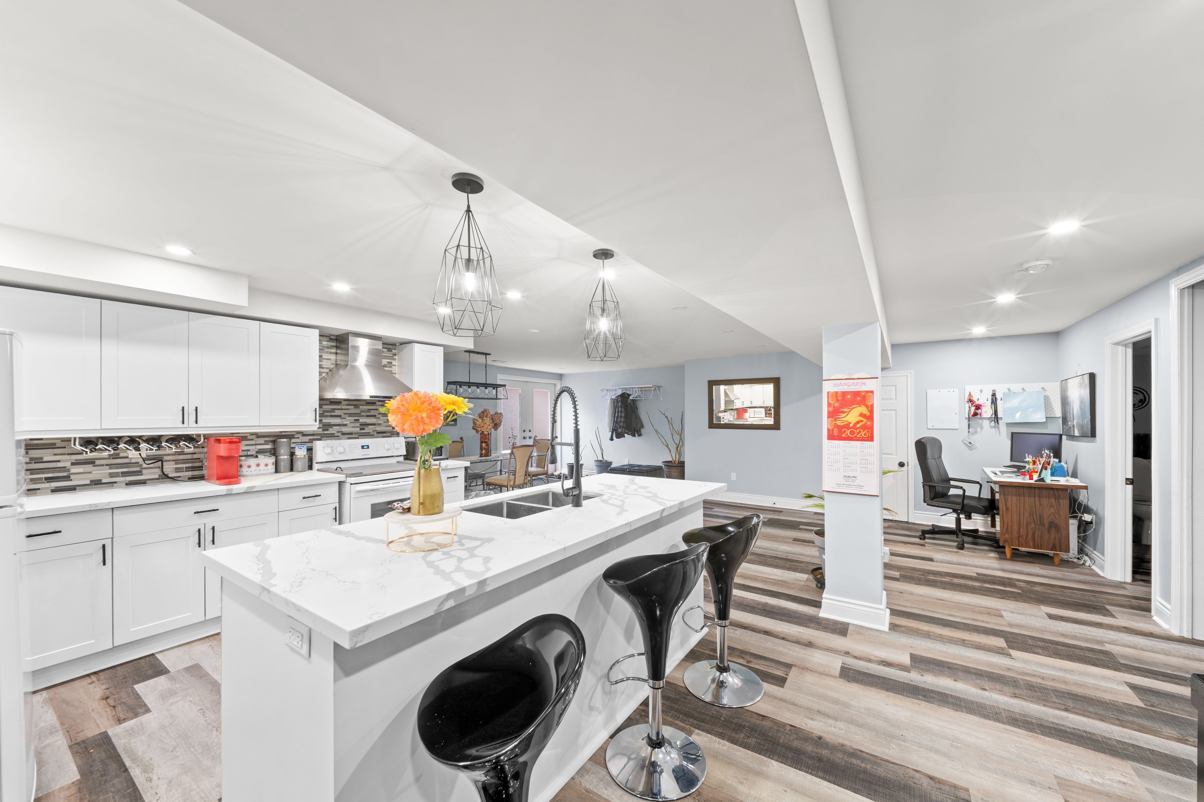 • Professionally finished walk-up basement with kitchen, bar, and full washroom.