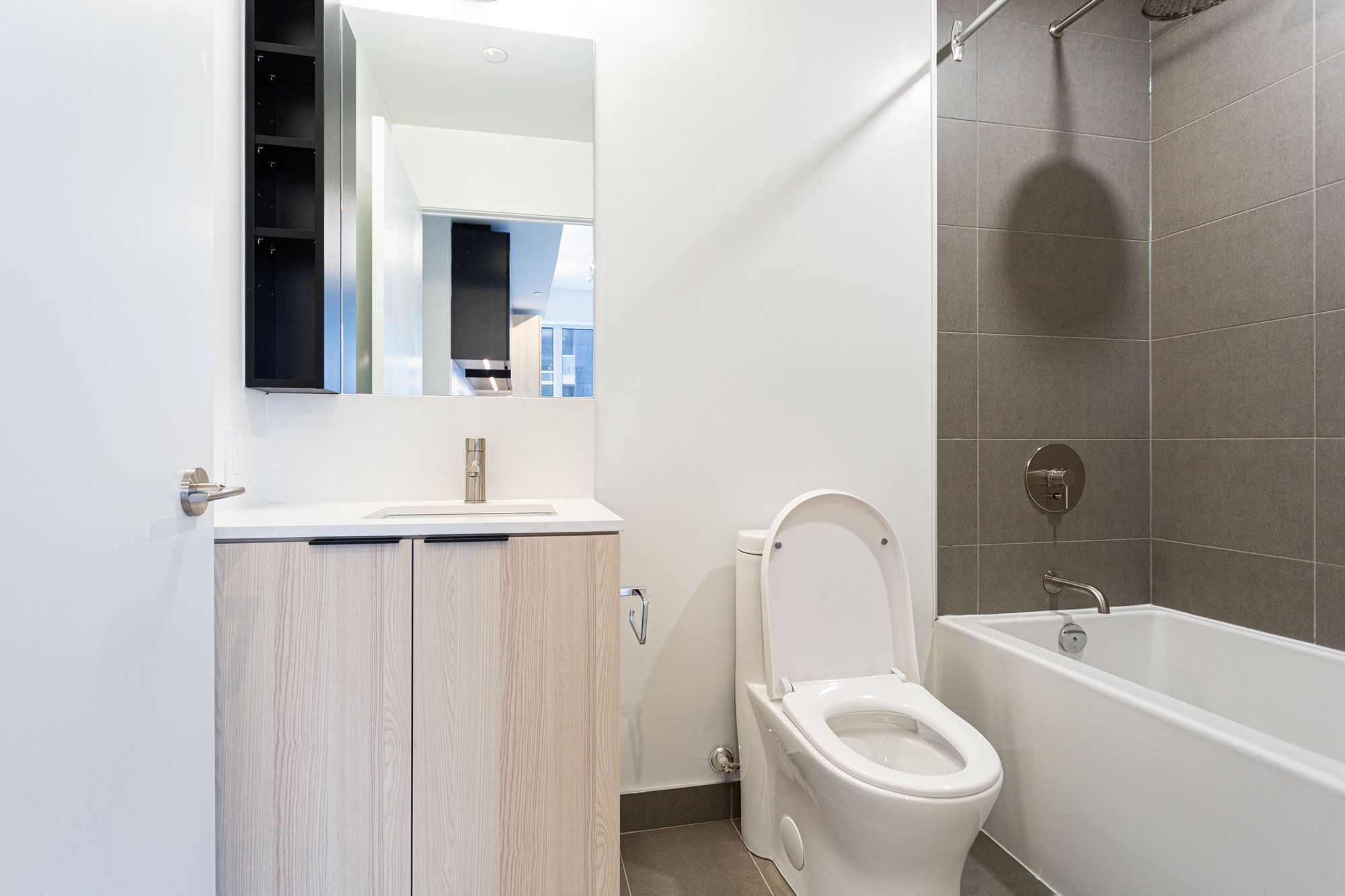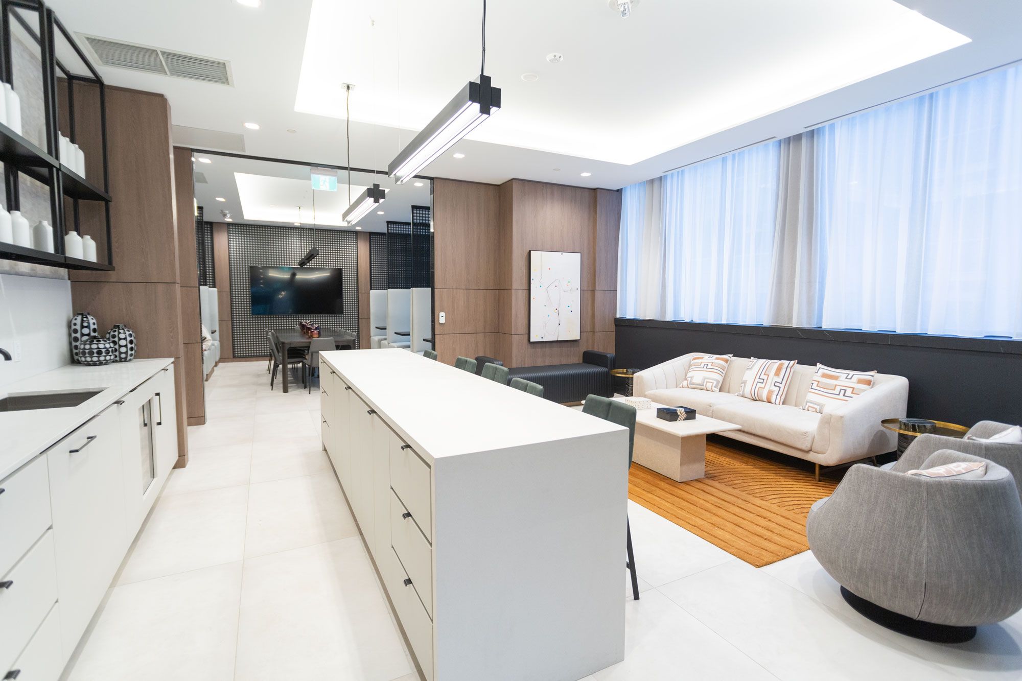 • Modern kitchen equipped with built-in appliances for convenience.