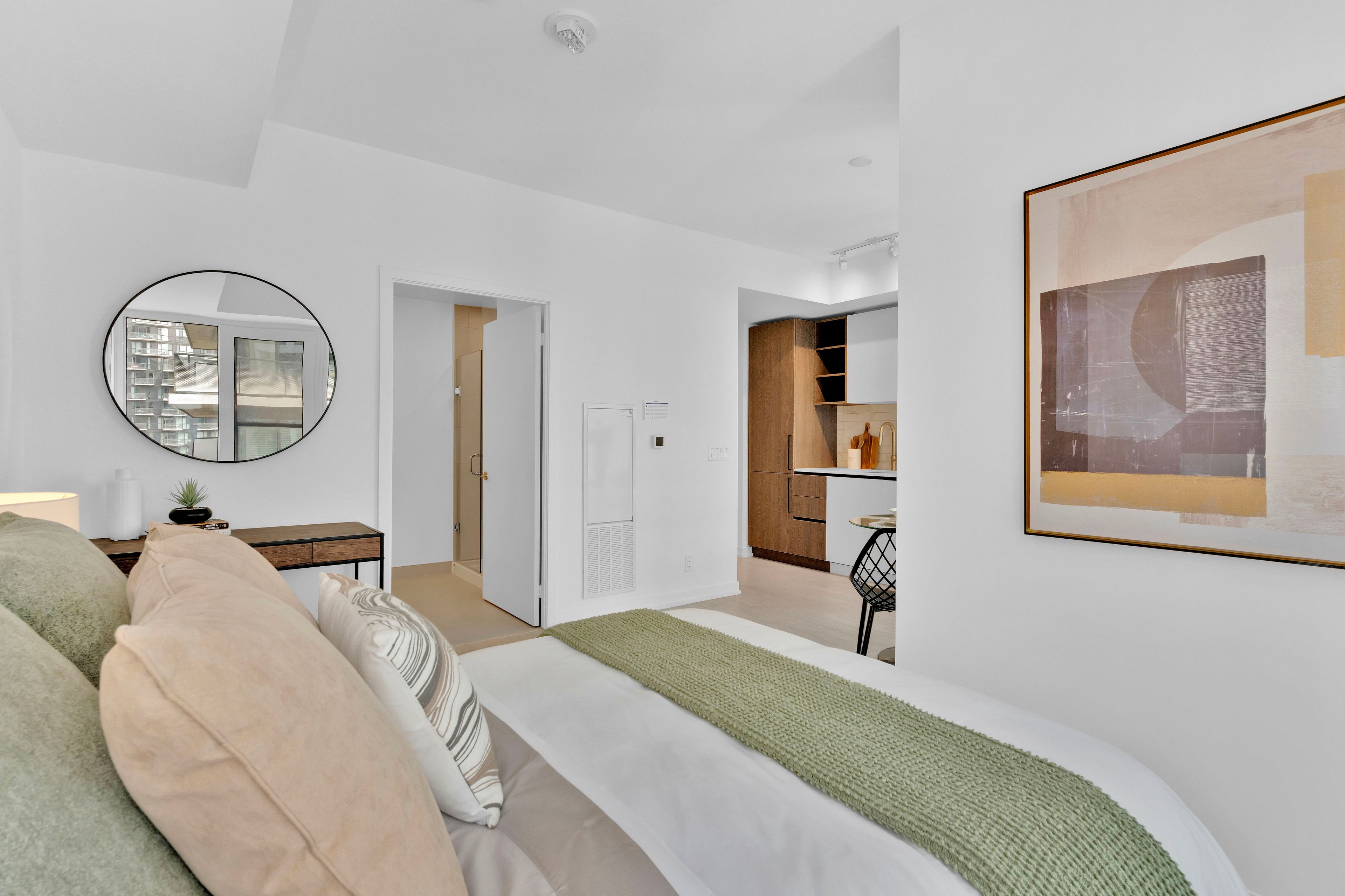 Welcome to 55 mercer - a modern studio suite perched on the 46th floor with a clear north-facing view. This efficiently designed unit offers contemporary finishes, integrated appliances, and floor-to-ceiling windows that bring in plenty of natural light. Located in the heart of the entertainment district, steps from transit, top restaurants, shops, and cultural hotpots. Enjoy access to exceptional building amenities, including a state-of-the-art fitness center. Perfect for professionals or students seeking a connected downtown lifestyle