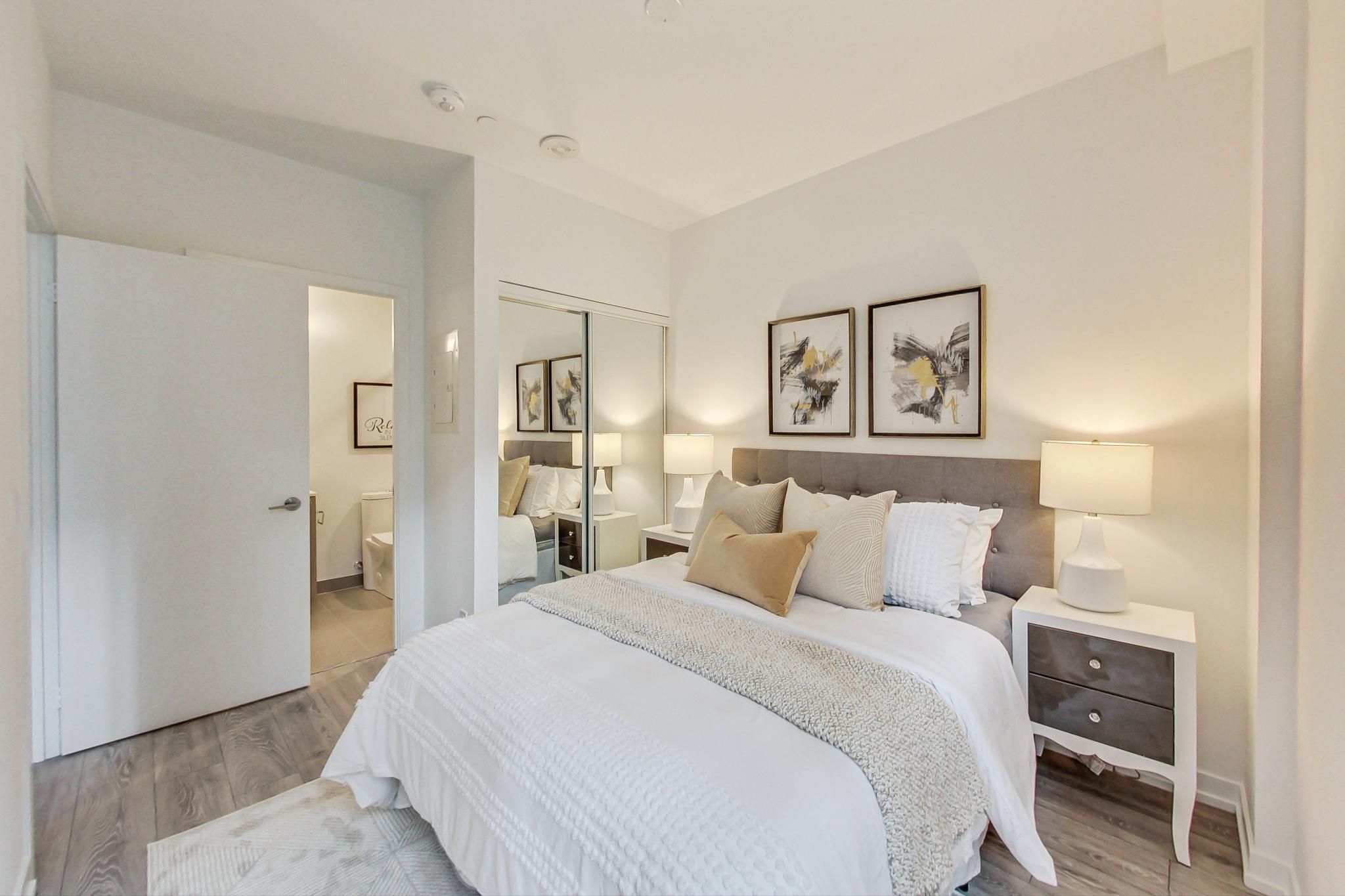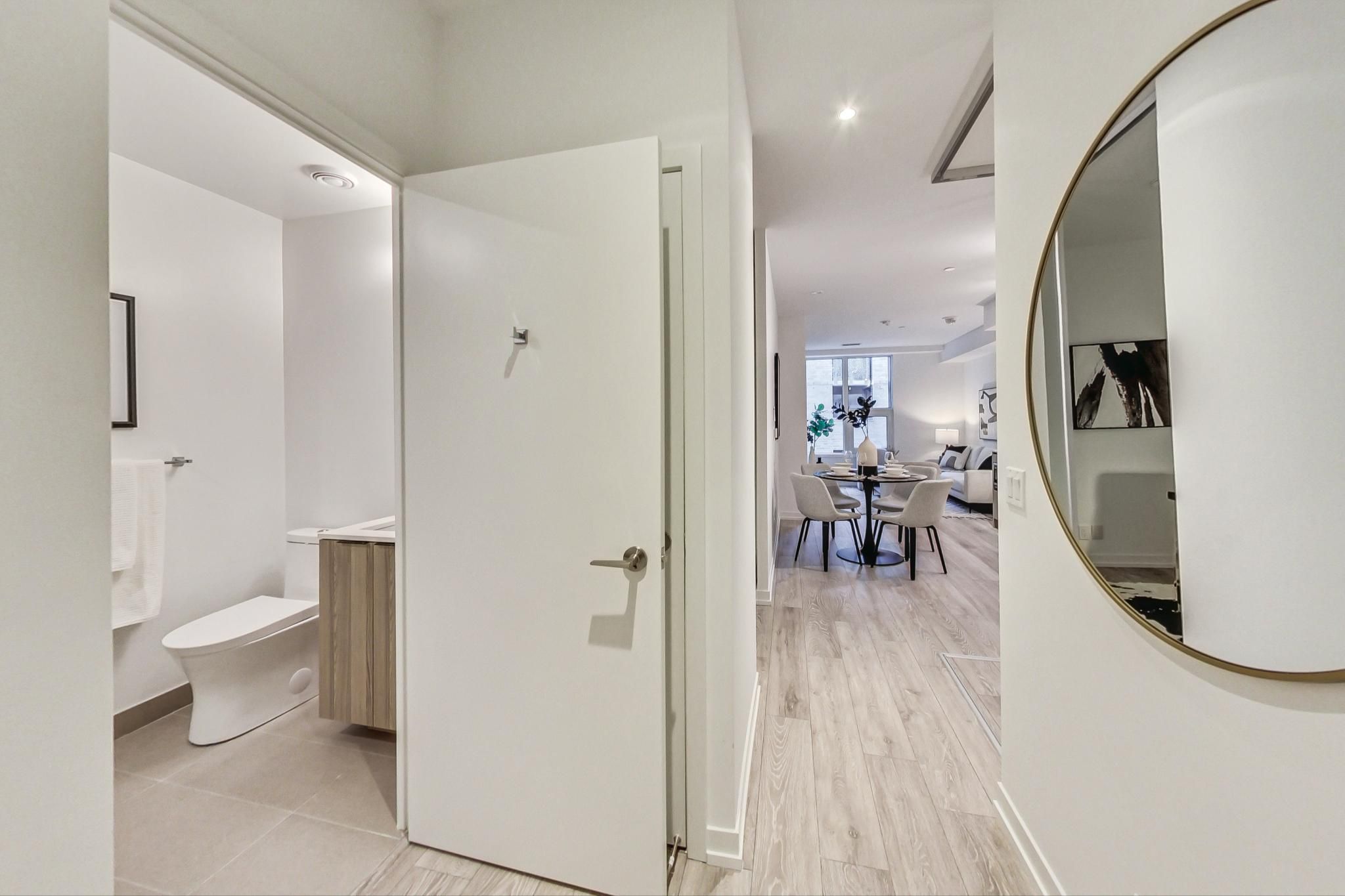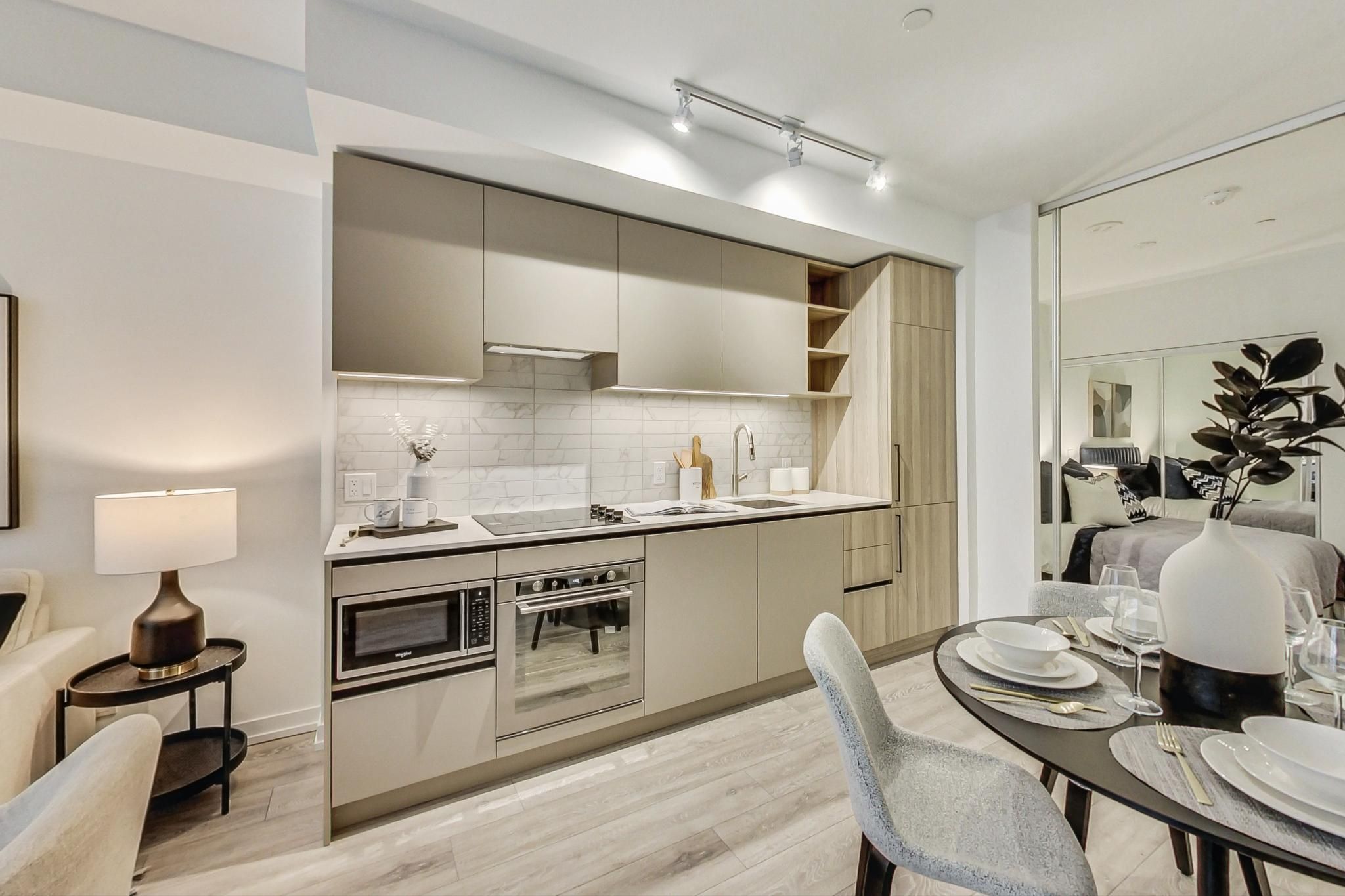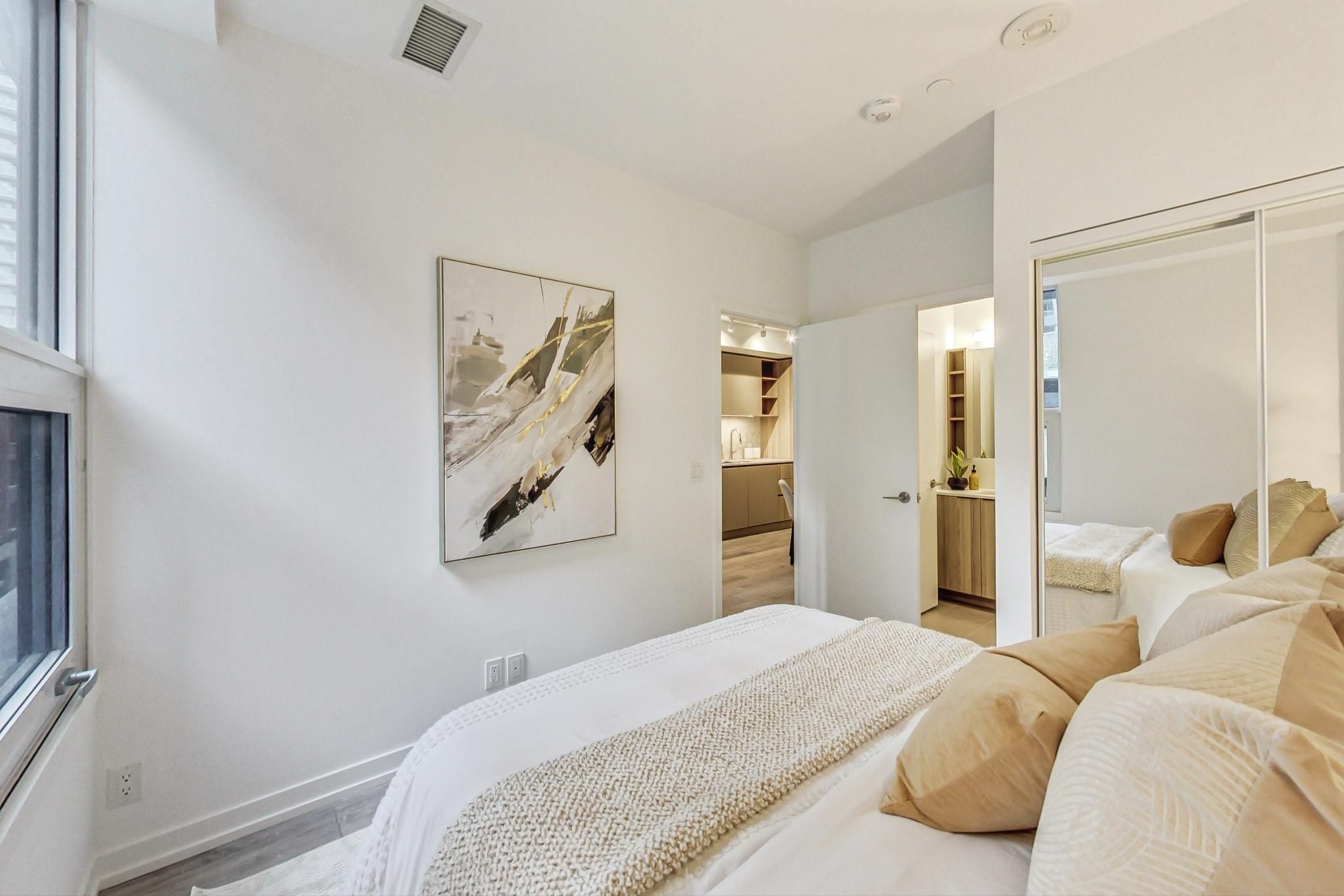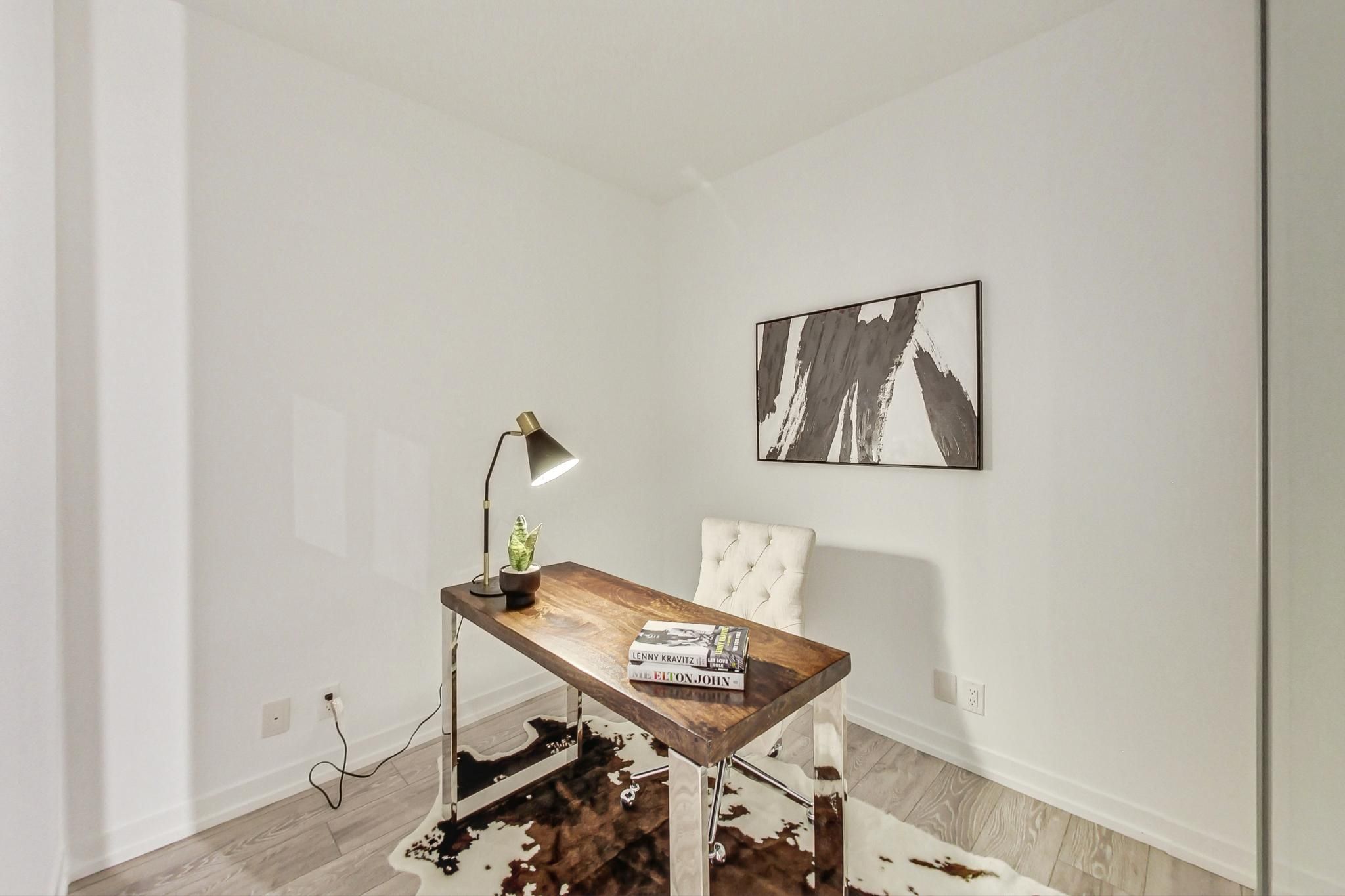 Beautifully designed 2 bedroom plus den unit in the newly built 55 mercer condominiums by centrecourt. With 738 sq ft of well appointed living space, this north-facing unit offers a serene retreat in the heart of the city. As you enter, you'll be greeted by an open-concept layout that maximizes space and light. The bright living area is perfect for relaxation and entertaining, while large windows provide an abundance of natural light. The contemporary kitchen is equipped with high-quality appliances and sleek cabinetry. The separate den provides an ideal space for a home office, nursery, or cozy reading nook. As a resident of 55 mercer, you'll enjoy access to the mercer club which offers 3 floors of state-of-the-art fitness, co-working and entertainment spaces. Parking available upon request.