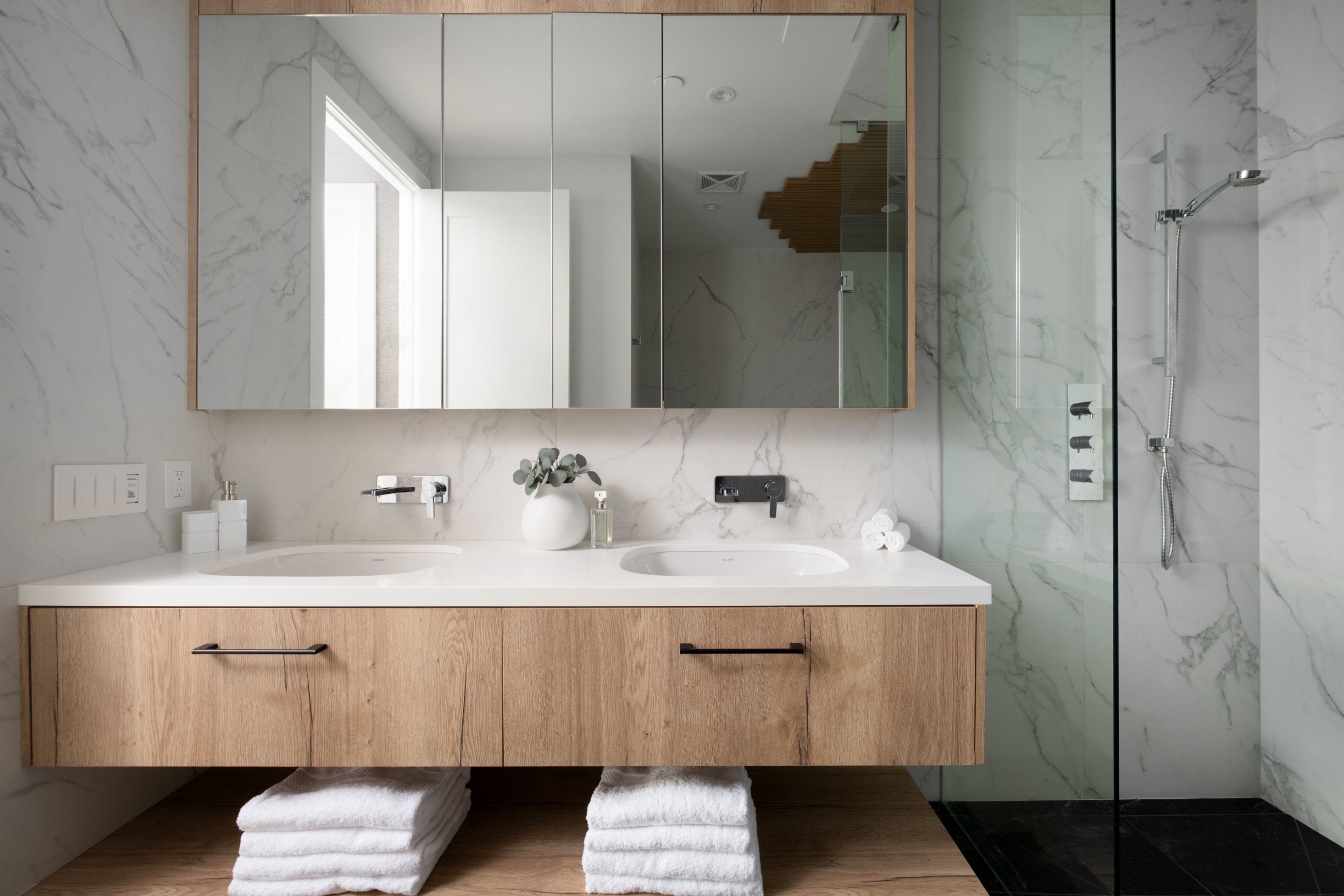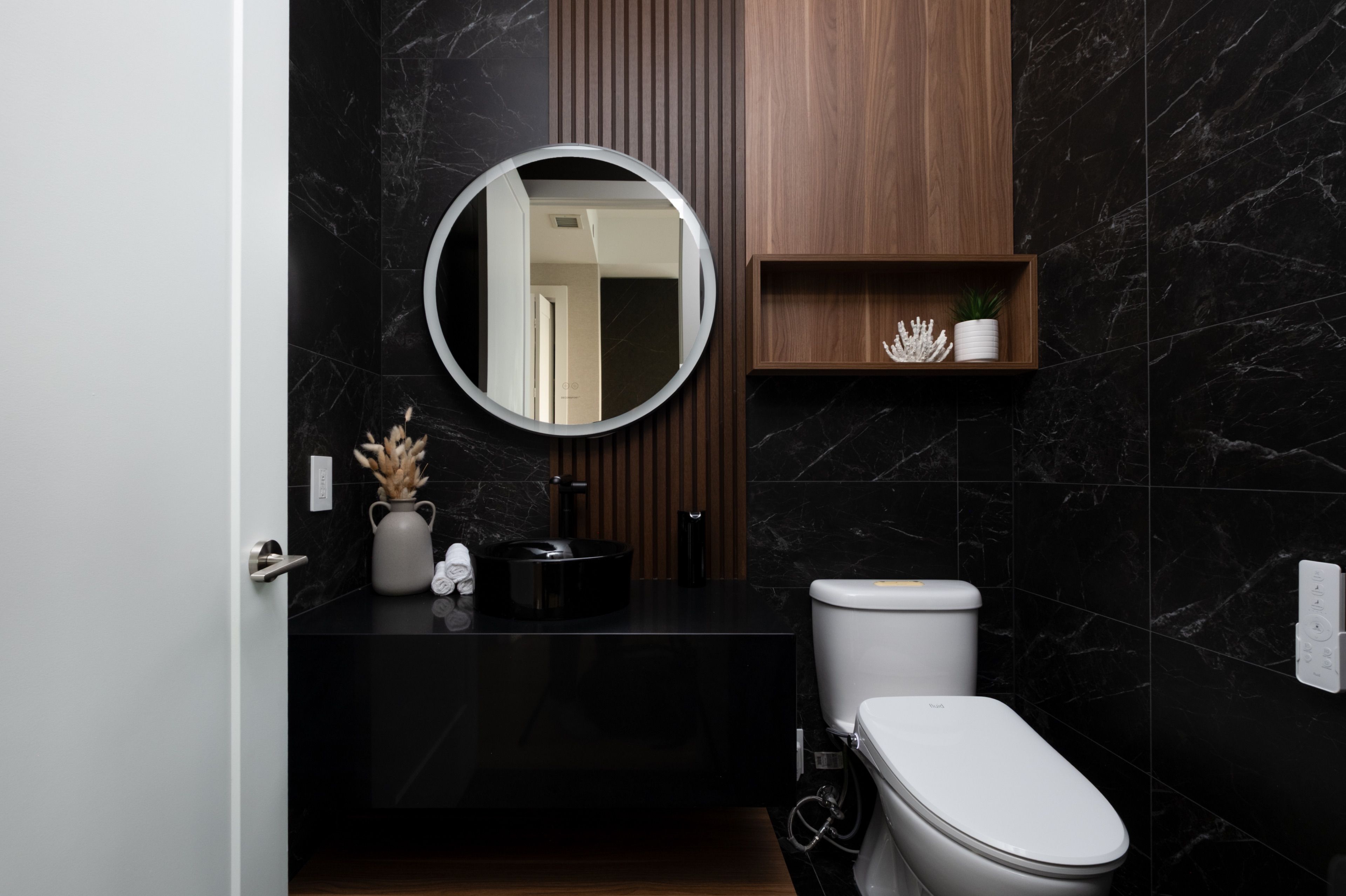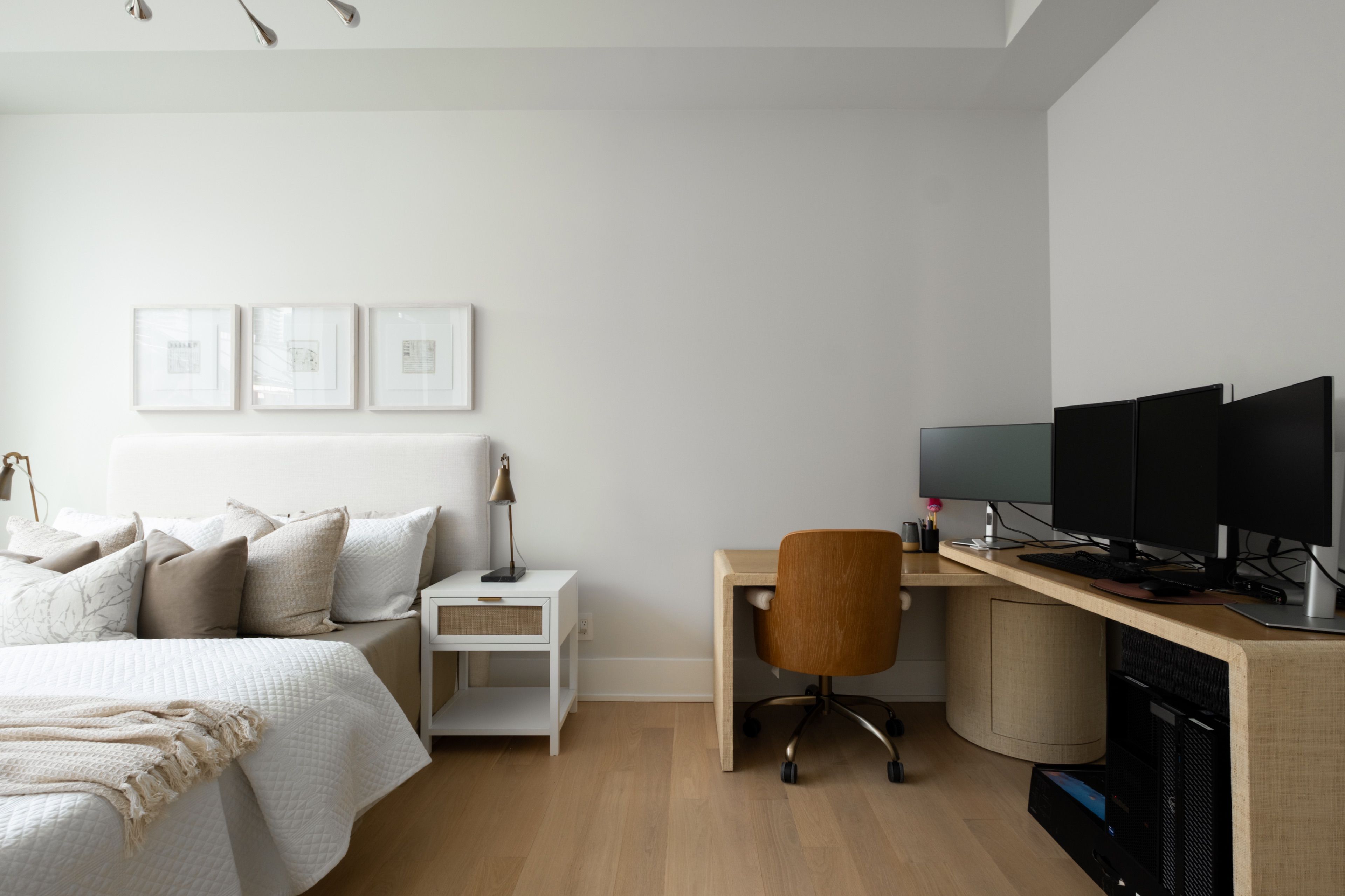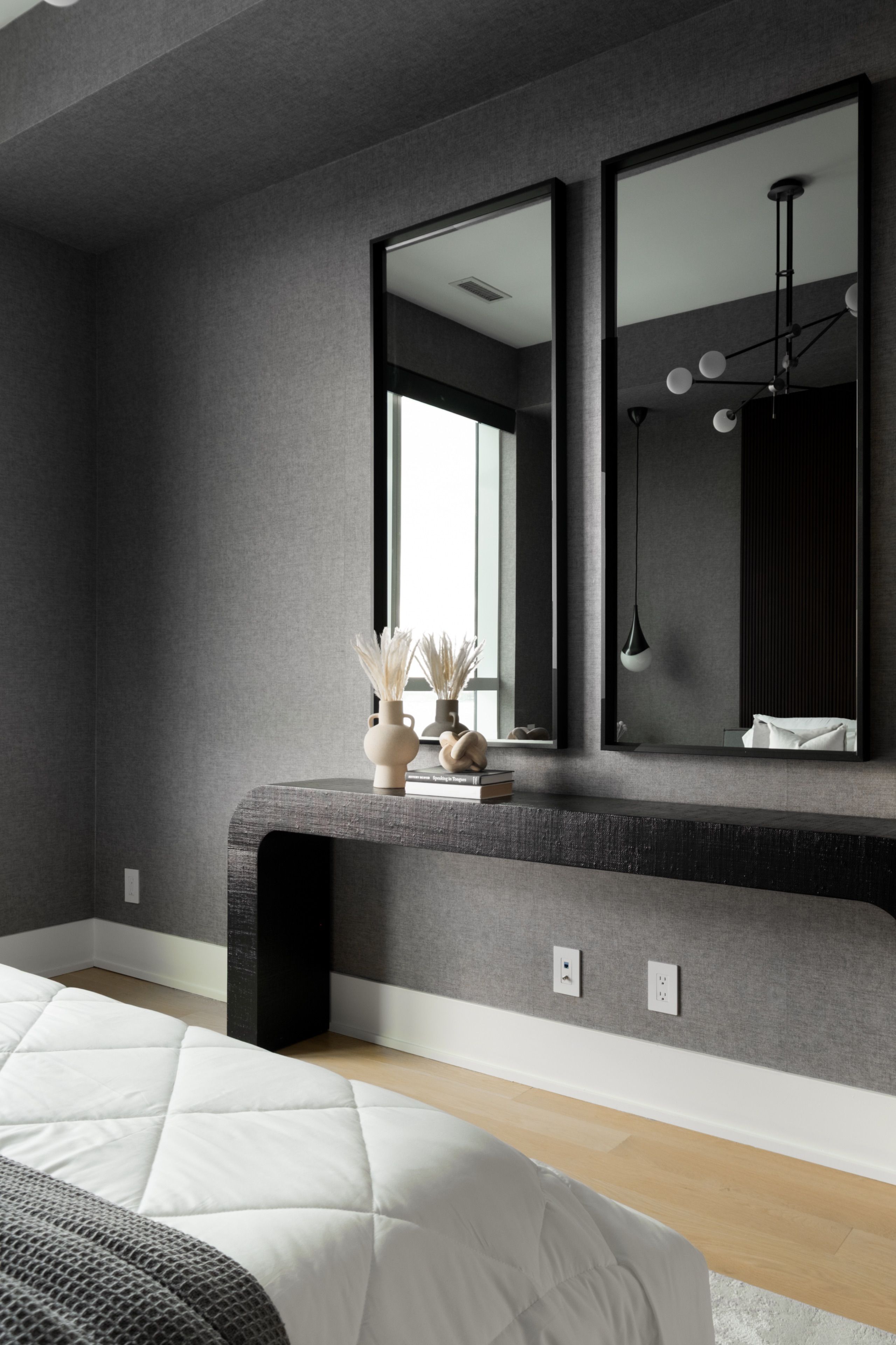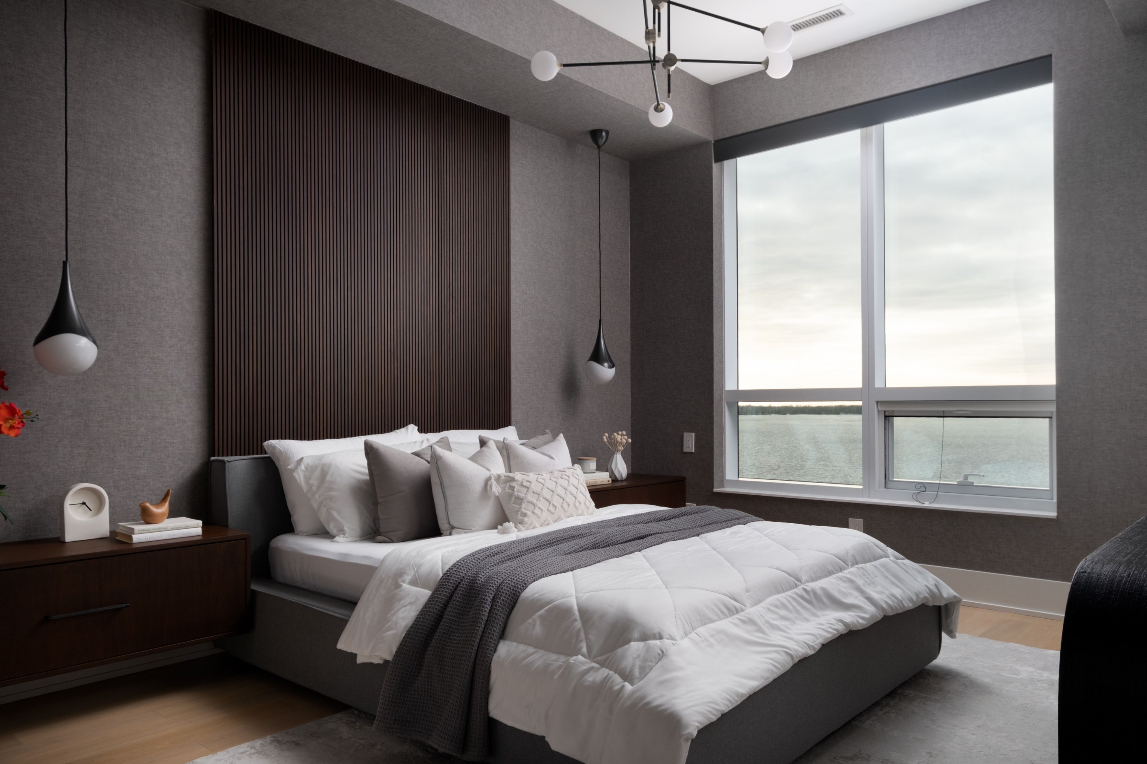• Primary bedroom with a spa-like ensuite and serene urban outlook.