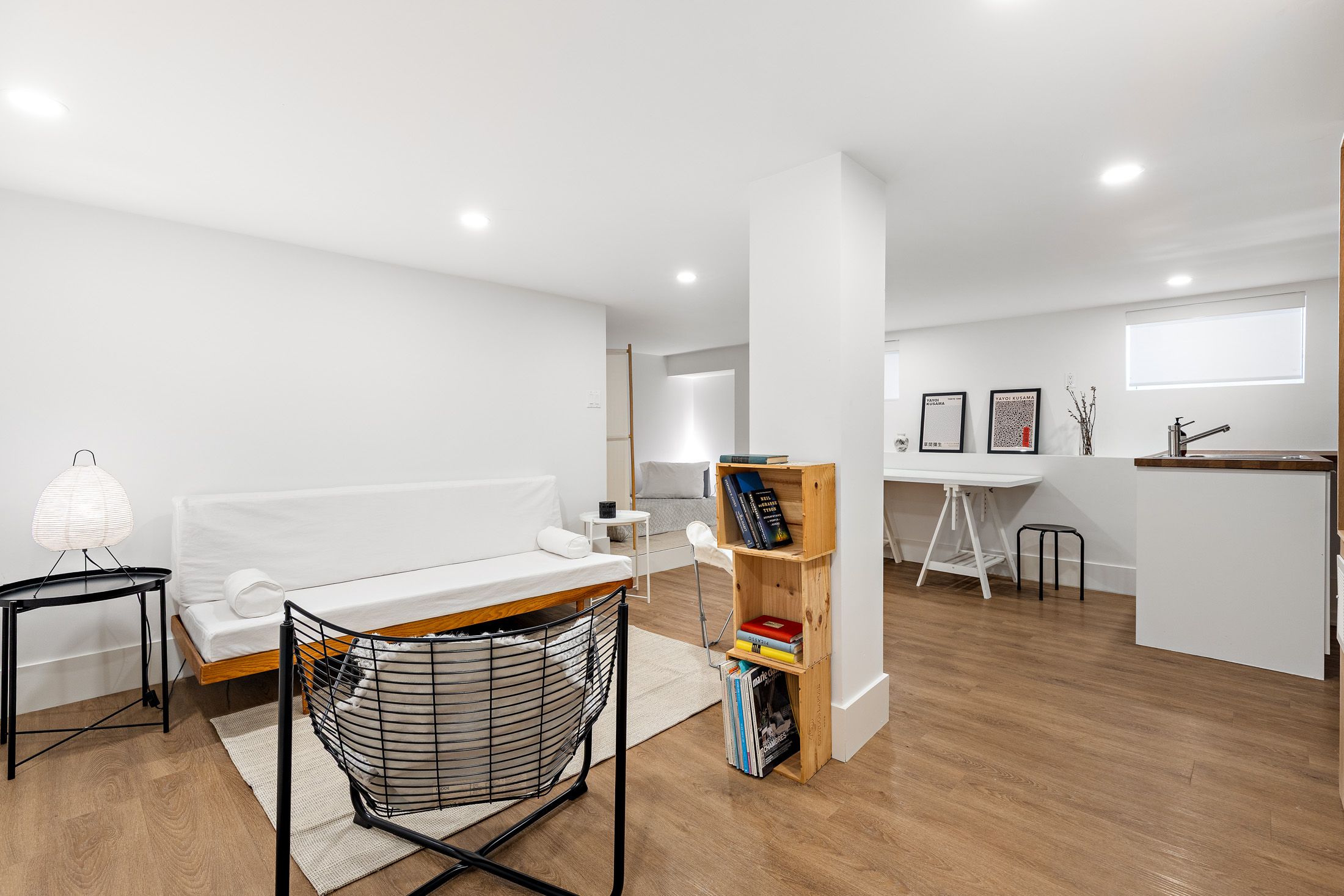 Modern mimico living by the lake. Architectural gem in heart of coveted lakeside enclave. Extraordinary residence offers rare combination of main home, modern coach house, loft, garden space, private parking. Thoughtfully designed for multi-generational living/sophisticated live-work opportunity. Every detail executed w artistry and precision. Recently renovated over 2,200 sq. Ft. Beautifully finished living space. Home features all-new electrical, plumbing, mechanical, structural systems. Custom bauhaus windows/doors flood interior w natural light, soaring ceilings, warm wood, sculptural layers of concrete and tile. Open concept main level flows seamlessly through expansive windows to private deck w lush garden. Heart is chef's kitchen anchored by impressive 8-foot island and premium miele appliances. Private main-floor salon w decorative fireplace and powder room offer versatile retreat -ideal reading room, home office, or intimate gathering space. Striking sculptural white oak staircase, dramatic vertical window, lead to upper level w bedrooms featuring custom rift-cut white oak cabinetry, complemented by spa-inspired bathroom with rain shower, antique clawfoot tub, double vanity, private water closet - all a sanctuary of quiet luxury. Lower level adds exceptional flexible self-contained studio complete w kitchen and bath -perfect for extended family, guests, teens, or creative workspace. Unique appeal is a 600 sq. Ft. Modern coach house w soaring 15-foot ceilings, full-width accordion glass doors that blur line between indoors and out. Heat pump for year-round comfort and running water make a remarkable space ideal as atelier, studio, retreat, or inspiring separate work environment. Located on quiet tree-lined one-way street minutes from waterfront, parks, schools, transit, neighbourhood favourites include birds & beans cafe,san remo bakery, and mildenhall montessori school. This exceptional property delivers a perfect blend of design, lifestyle, location.