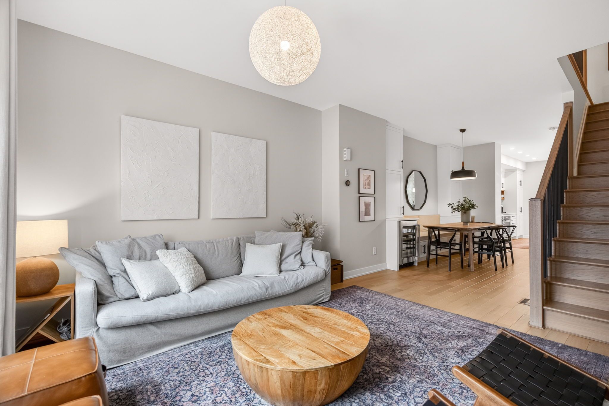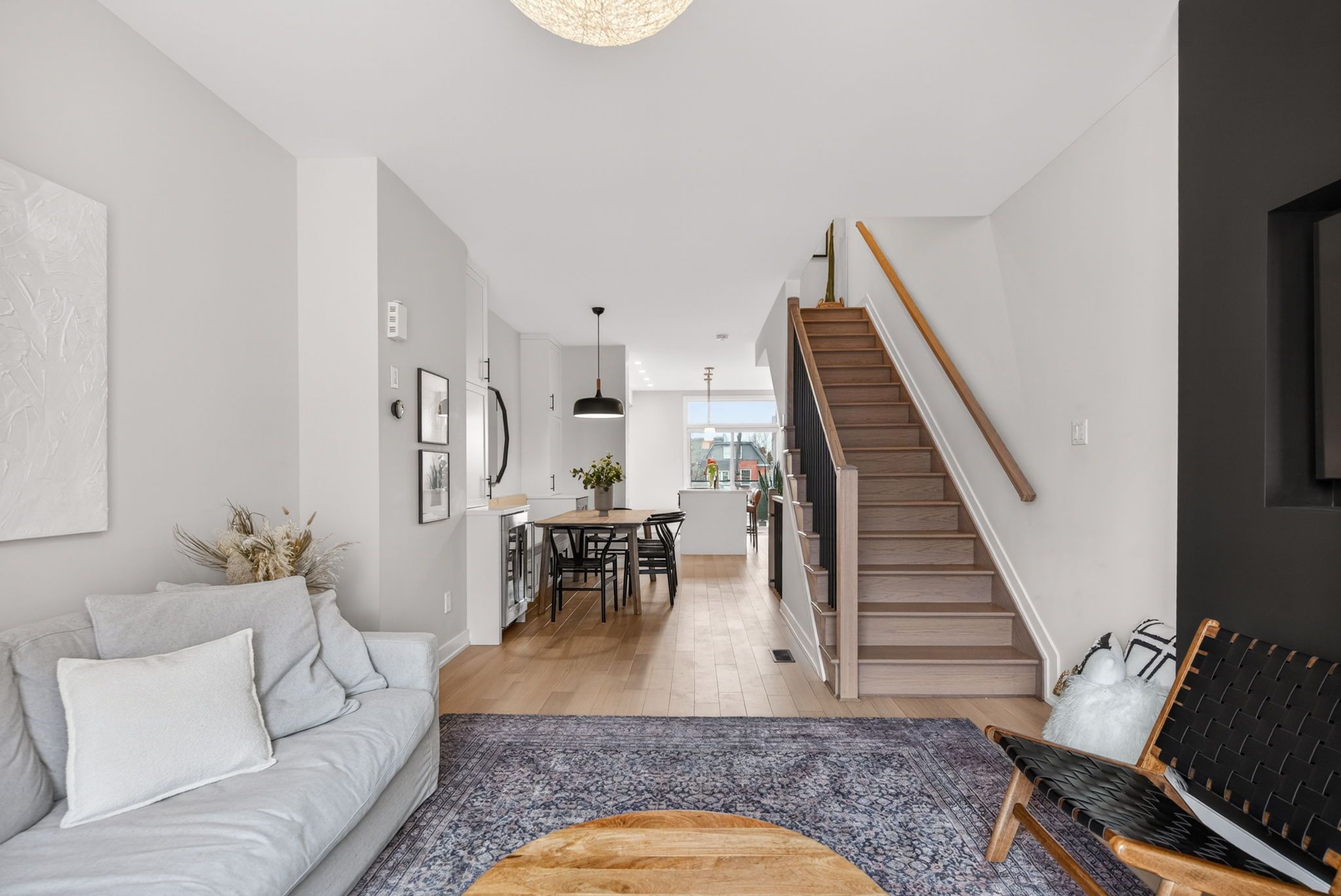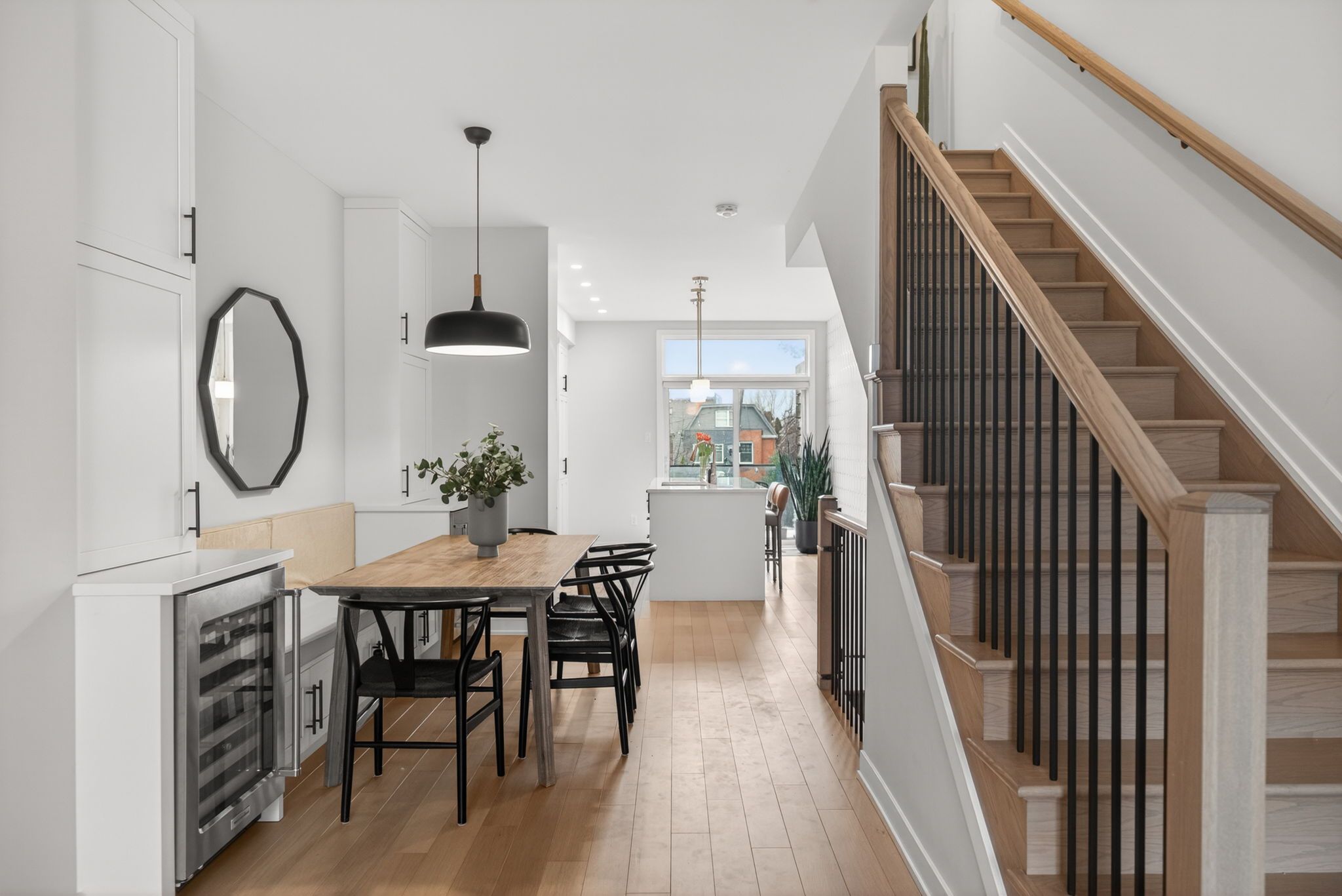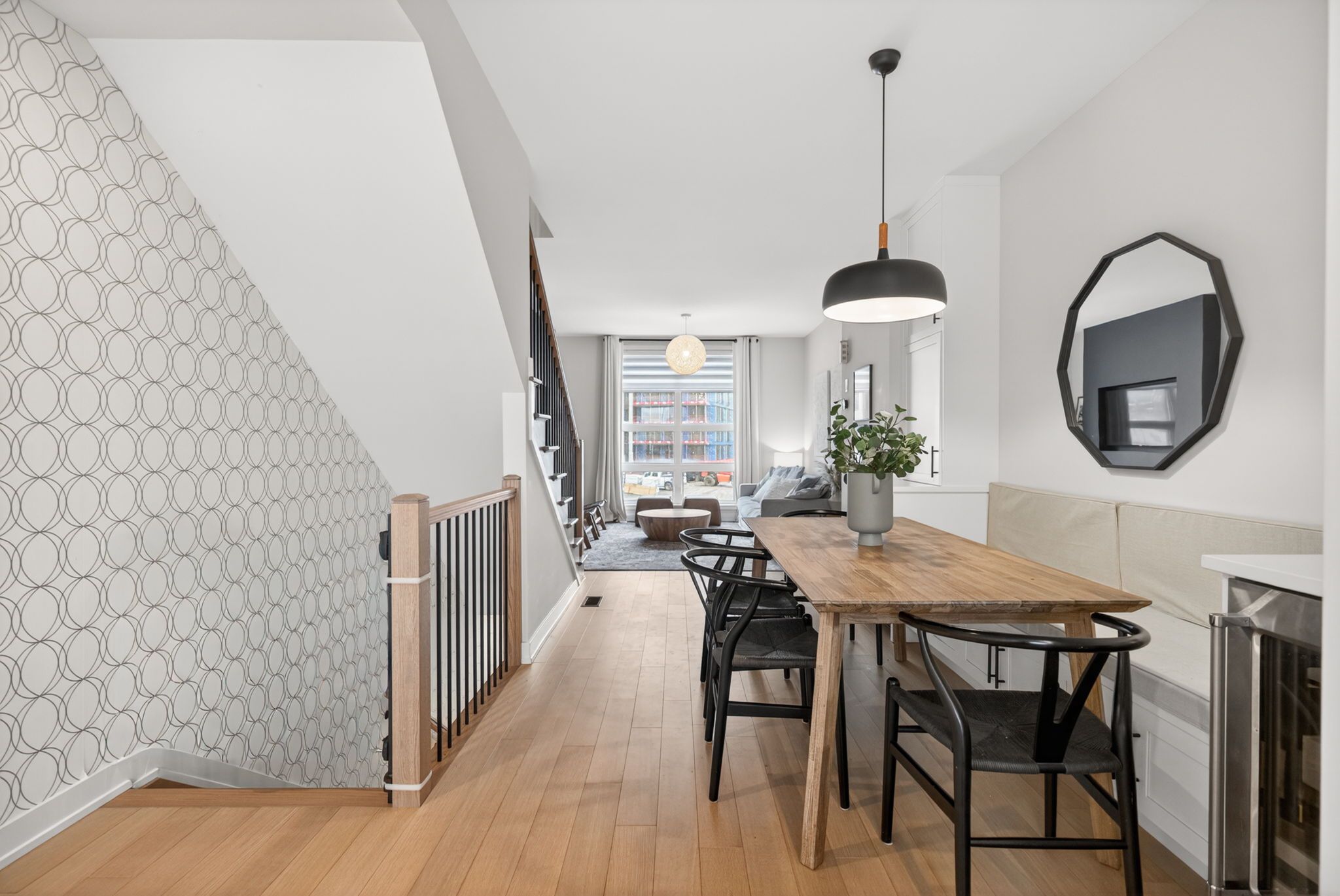 Welcome to 55 oblats avenue in the heart of greystone village, old ottawa east - where modern design meets an exceptional riverside lifestyle. This beautifully upgraded home offers a bright, open-concept layout with clean lines and large windows that fill the space with natural light. The main living area flows seamlessly into a thoughtfully enhanced dining space featuring custom cabinetry, a built-in bistro-style banquette, dual beverage fridges, and a statement light fixture, perfect for both everyday living and entertaining. The contemporary kitchen is designed with both style and function in mind, offering sleek finishes and ample storage while connecting effortlessly to the living and dining areas. Sliding patio door leads to private balcony with bbq line and space for al fresco dining. The spacious primary bedroom features a full wall of custom built-in closets and a well-appointed ensuite with an extended vanity and walk-in glass shower. A second bedroom includes integrated wardrobe storage and a built-in desk, ideal for guests or a home office. The ground level features a spacious den, ideal as a family room, playroom, office, or flexible guest space. A stylish powder room is conveniently positioned near the attached garage, alongside a custom mudroom closet. The foyer also includes a built-in entry closet for added convenience. The finished basement offers valuable additional living space, currently set up as a versatile area for a home office, lounge, and compact gym. Set within the award-winning greystone village community, this home is steps to the rideau river, scenic pathways, parks, and just minutes to downtown, the canal, and all the amenities of main street. A perfect blend of design, functionality, and location.