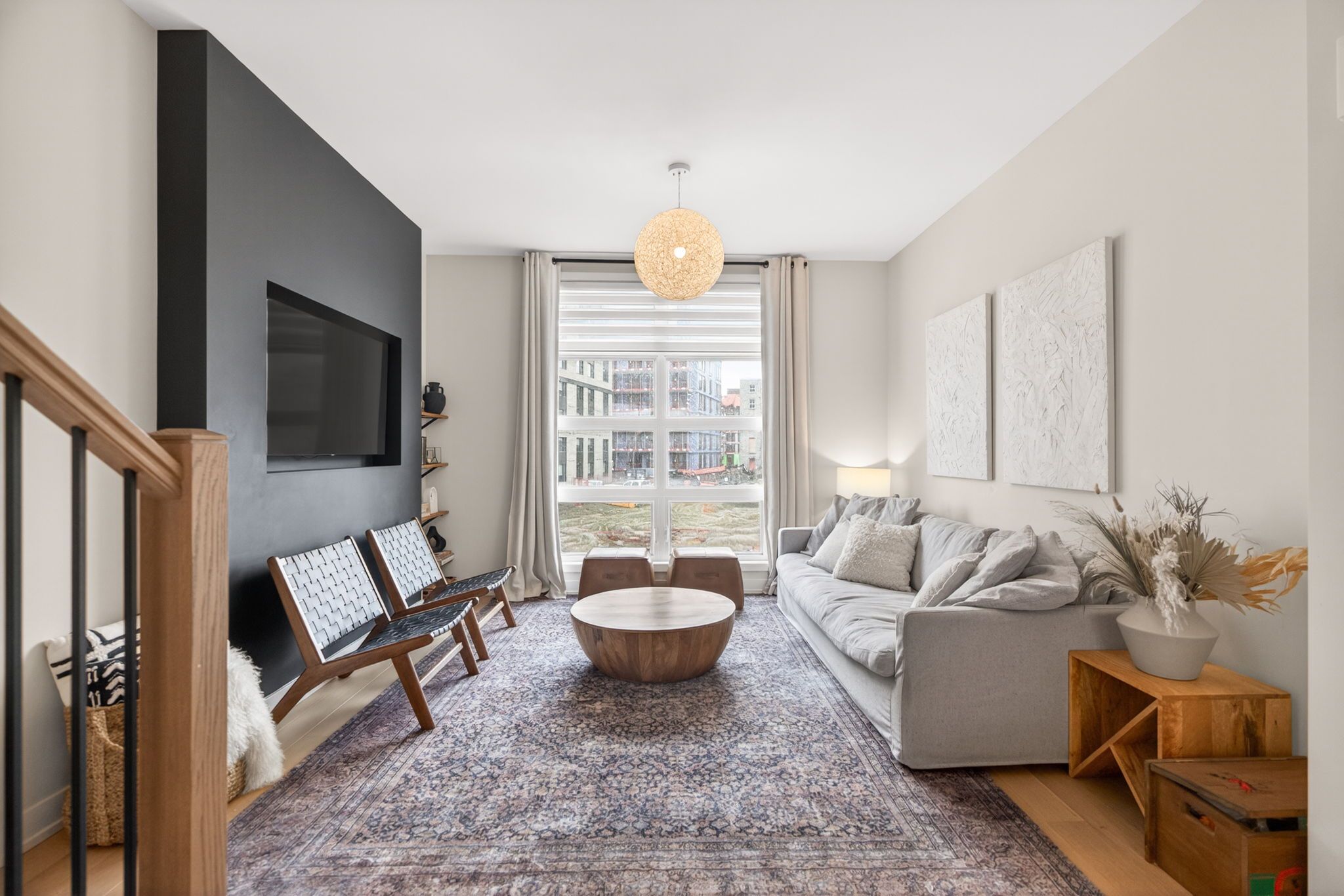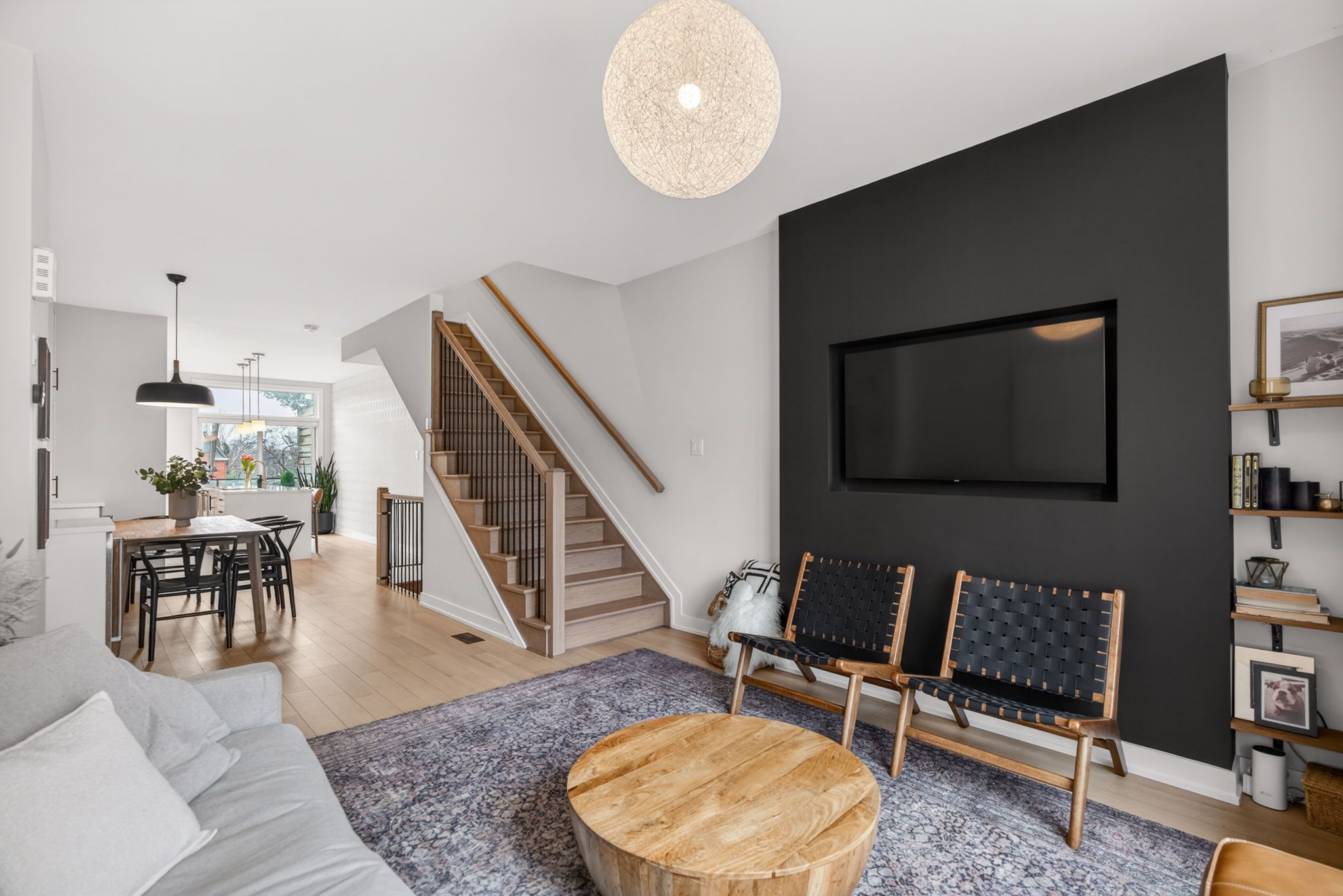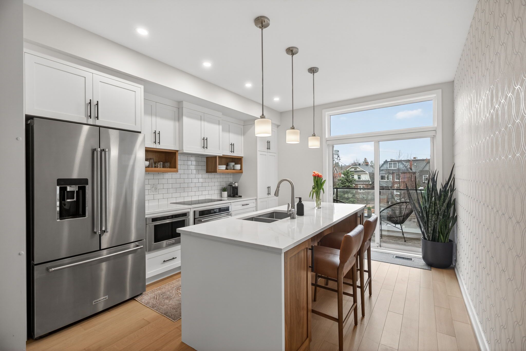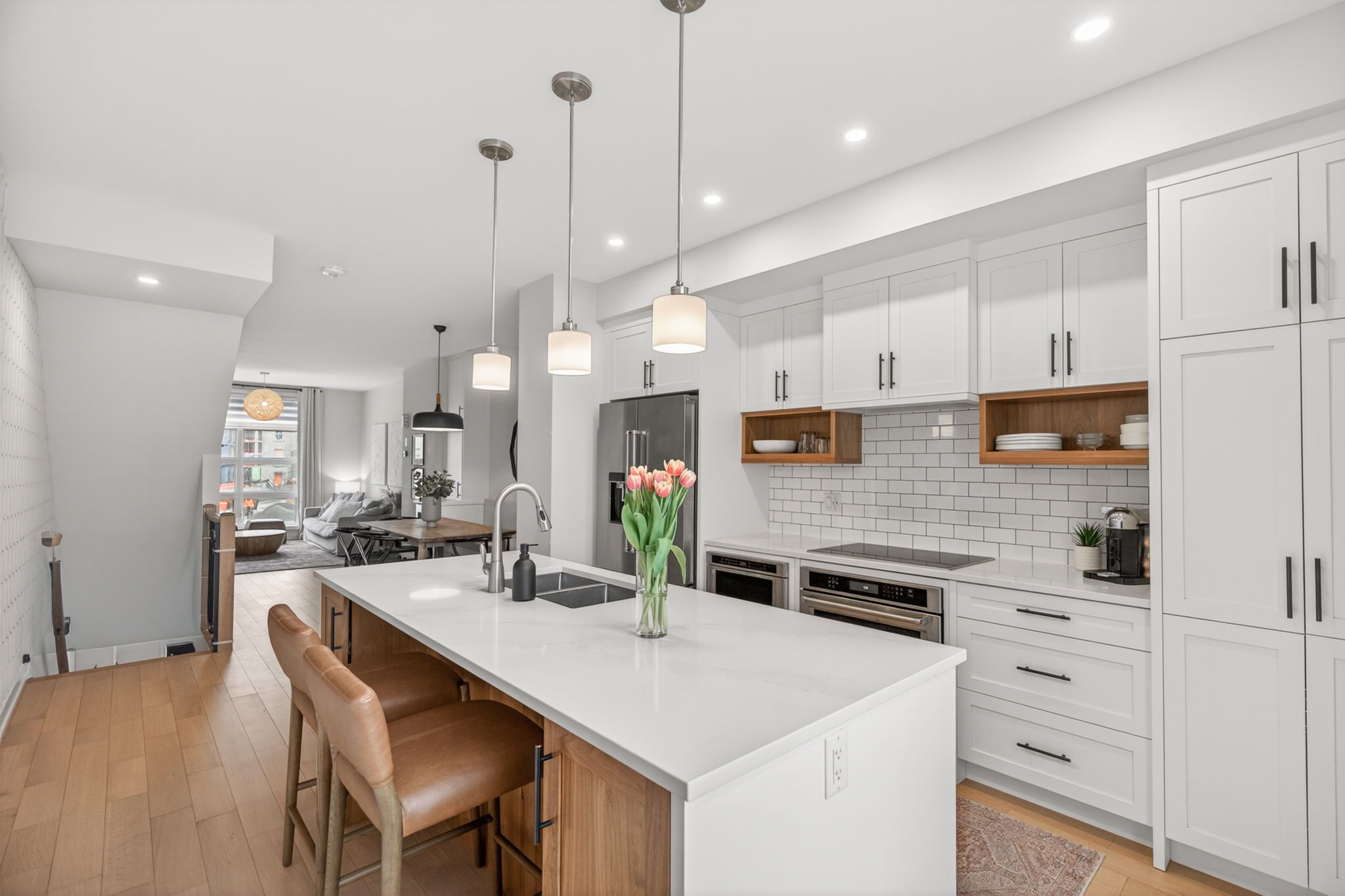 Welcome to 55 oblats avenue in the heart of greystone village, old ottawa east - where modern design meets an exceptional riverside lifestyle. This beautifully upgraded home offers a bright, open-concept layout with clean lines and large windows that fill the space with natural light. The main living area flows seamlessly into a thoughtfully enhanced dining space featuring custom cabinetry, a built-in bistro-style banquette, dual beverage fridges, and a statement light fixture, perfect for both everyday living and entertaining. The contemporary kitchen is designed with both style and function in mind, offering sleek finishes and ample storage while connecting effortlessly to the living and dining areas. Sliding patio door leads to private balcony with bbq line and space for al fresco dining. The spacious primary bedroom features a full wall of custom built-in closets and a well-appointed ensuite with an extended vanity and walk-in glass shower. A second bedroom includes integrated wardrobe storage and a built-in desk, ideal for guests or a home office. The ground level features a spacious den, ideal as a family room, playroom, office, or flexible guest space. A stylish powder room is conveniently positioned near the attached garage, alongside a custom mudroom closet. The foyer also includes a built-in entry closet for added convenience. The finished basement offers valuable additional living space, currently set up as a versatile area for a home office, lounge, and compact gym. Set within the award-winning greystone village community, this home is steps to the rideau river, scenic pathways, parks, and just minutes to downtown, the canal, and all the amenities of main street. A perfect blend of design, functionality, and location.