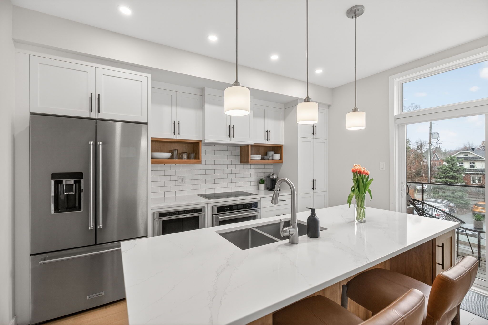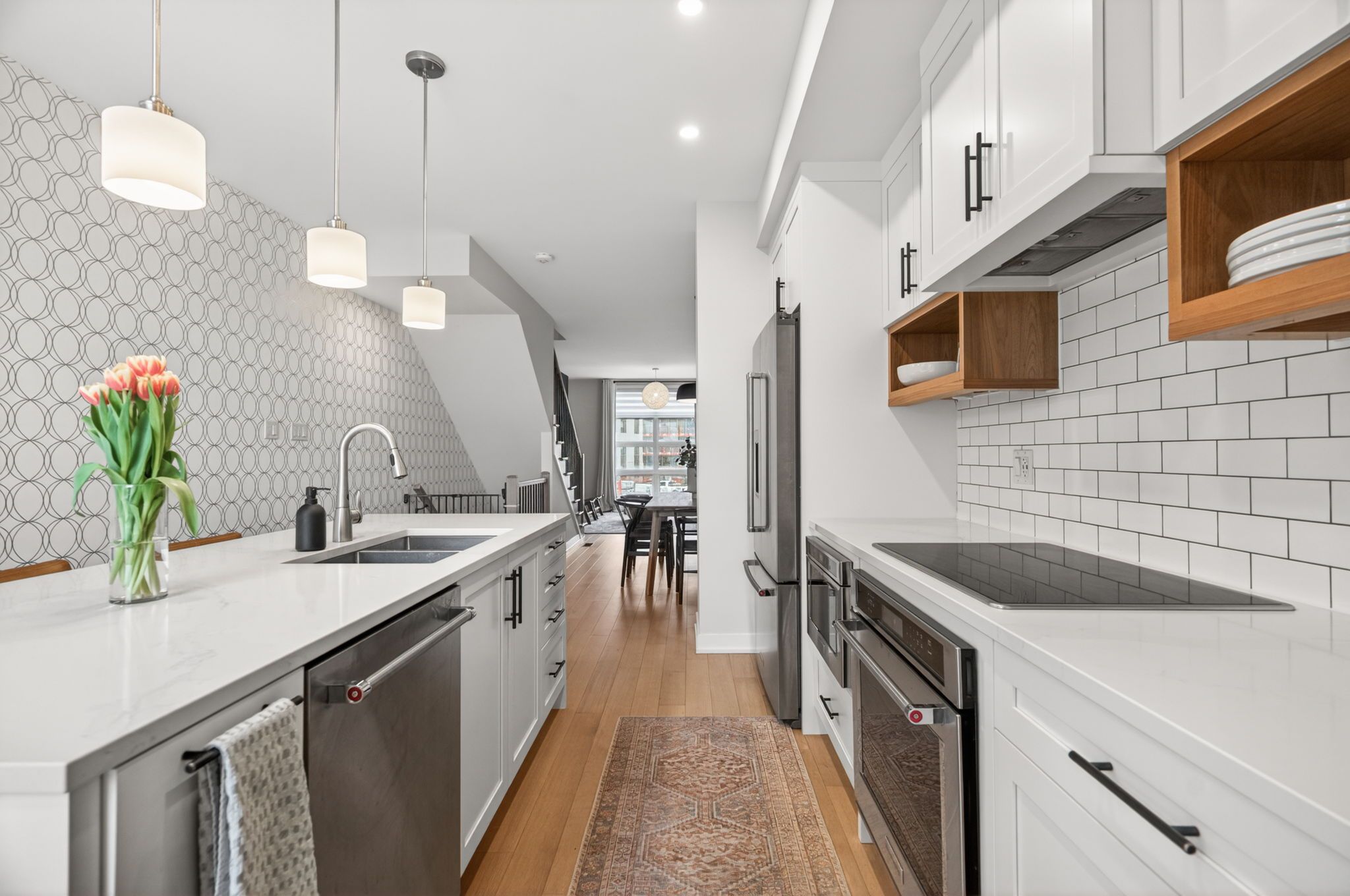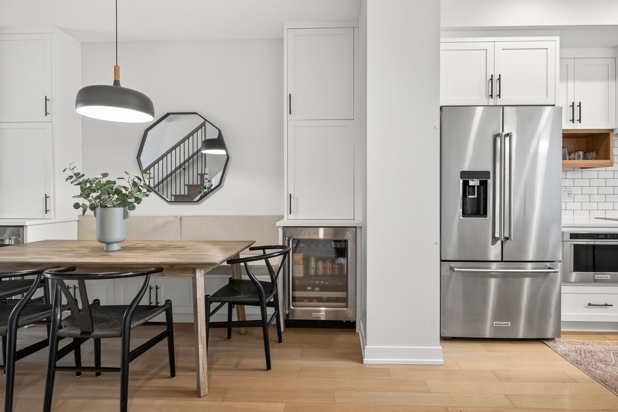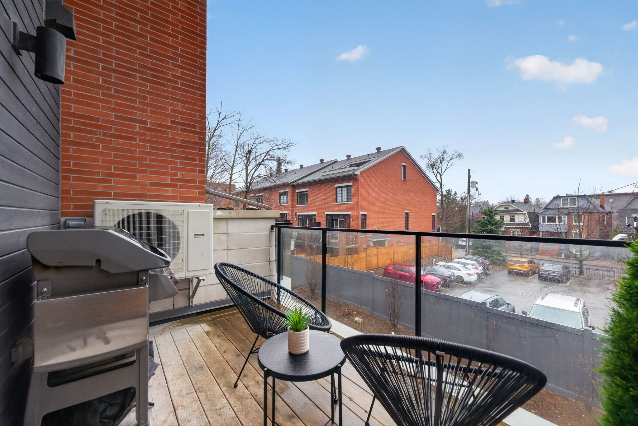 Welcome to 55 oblats avenue in the heart of greystone village, old ottawa east - where modern design meets an exceptional riverside lifestyle. This beautifully upgraded home offers a bright, open-concept layout with clean lines and large windows that fill the space with natural light. The main living area flows seamlessly into a thoughtfully enhanced dining space featuring custom cabinetry, a built-in bistro-style banquette, dual beverage fridges, and a statement light fixture, perfect for both everyday living and entertaining. The contemporary kitchen is designed with both style and function in mind, offering sleek finishes and ample storage while connecting effortlessly to the living and dining areas. Sliding patio door leads to private balcony with bbq line and space for al fresco dining. The spacious primary bedroom features a full wall of custom built-in closets and a well-appointed ensuite with an extended vanity and walk-in glass shower. A second bedroom includes integrated wardrobe storage and a built-in desk, ideal for guests or a home office. The ground level features a spacious den, ideal as a family room, playroom, office, or flexible guest space. A stylish powder room is conveniently positioned near the attached garage, alongside a custom mudroom closet. The foyer also includes a built-in entry closet for added convenience. The finished basement offers valuable additional living space, currently set up as a versatile area for a home office, lounge, and compact gym. Set within the award-winning greystone village community, this home is steps to the rideau river, scenic pathways, parks, and just minutes to downtown, the canal, and all the amenities of main street. A perfect blend of design, functionality, and location.