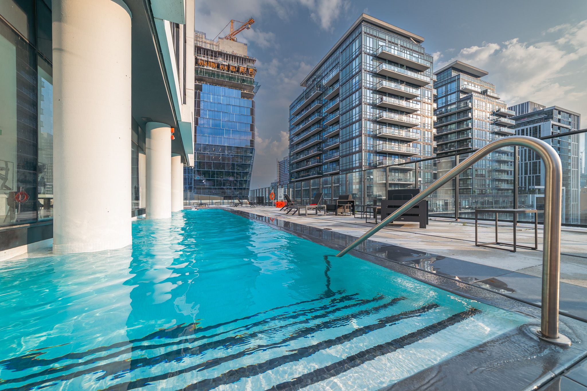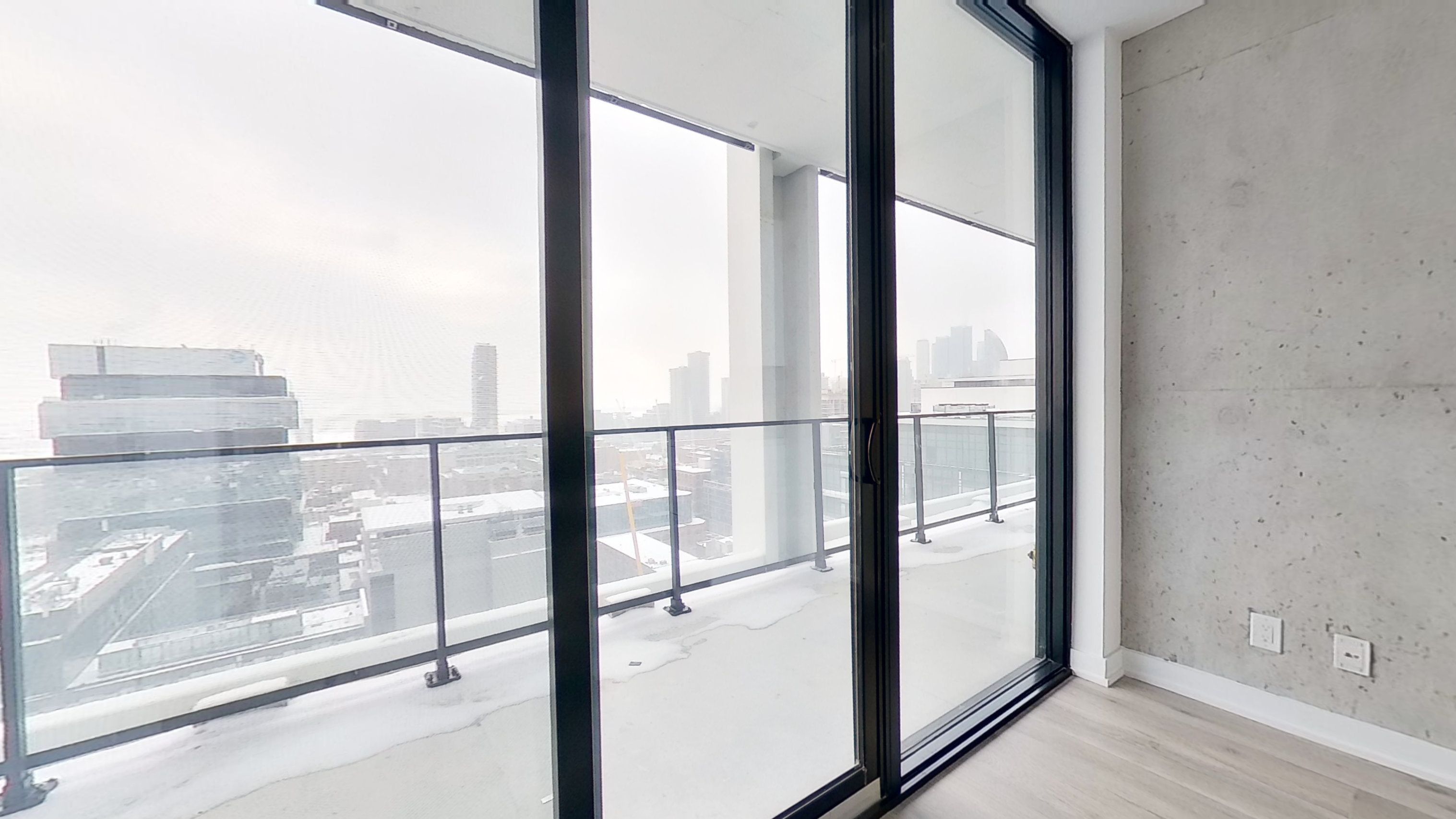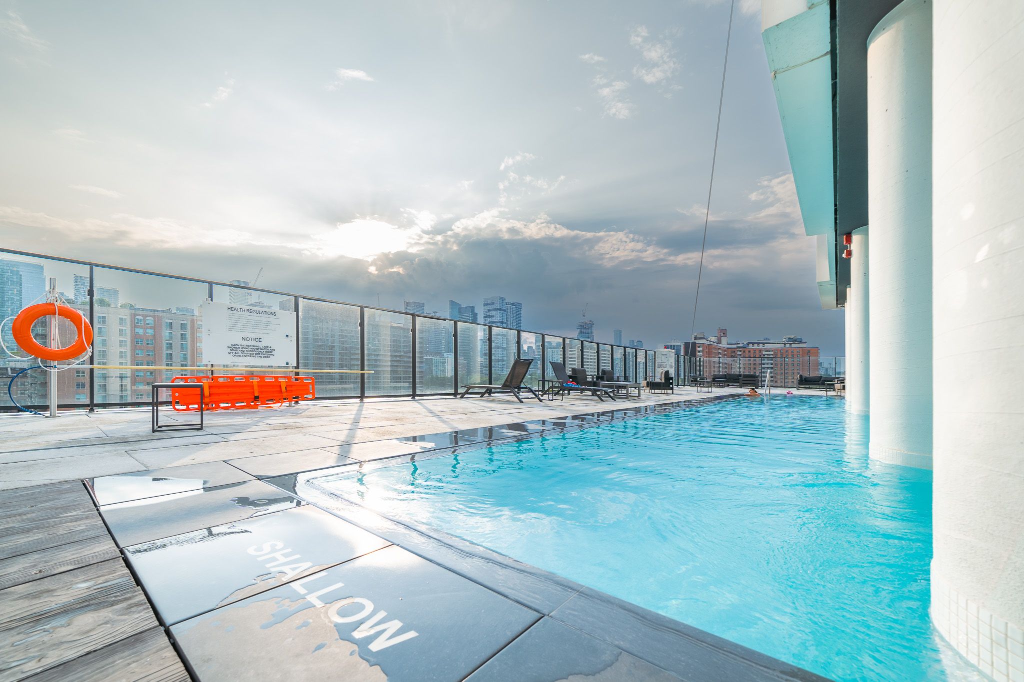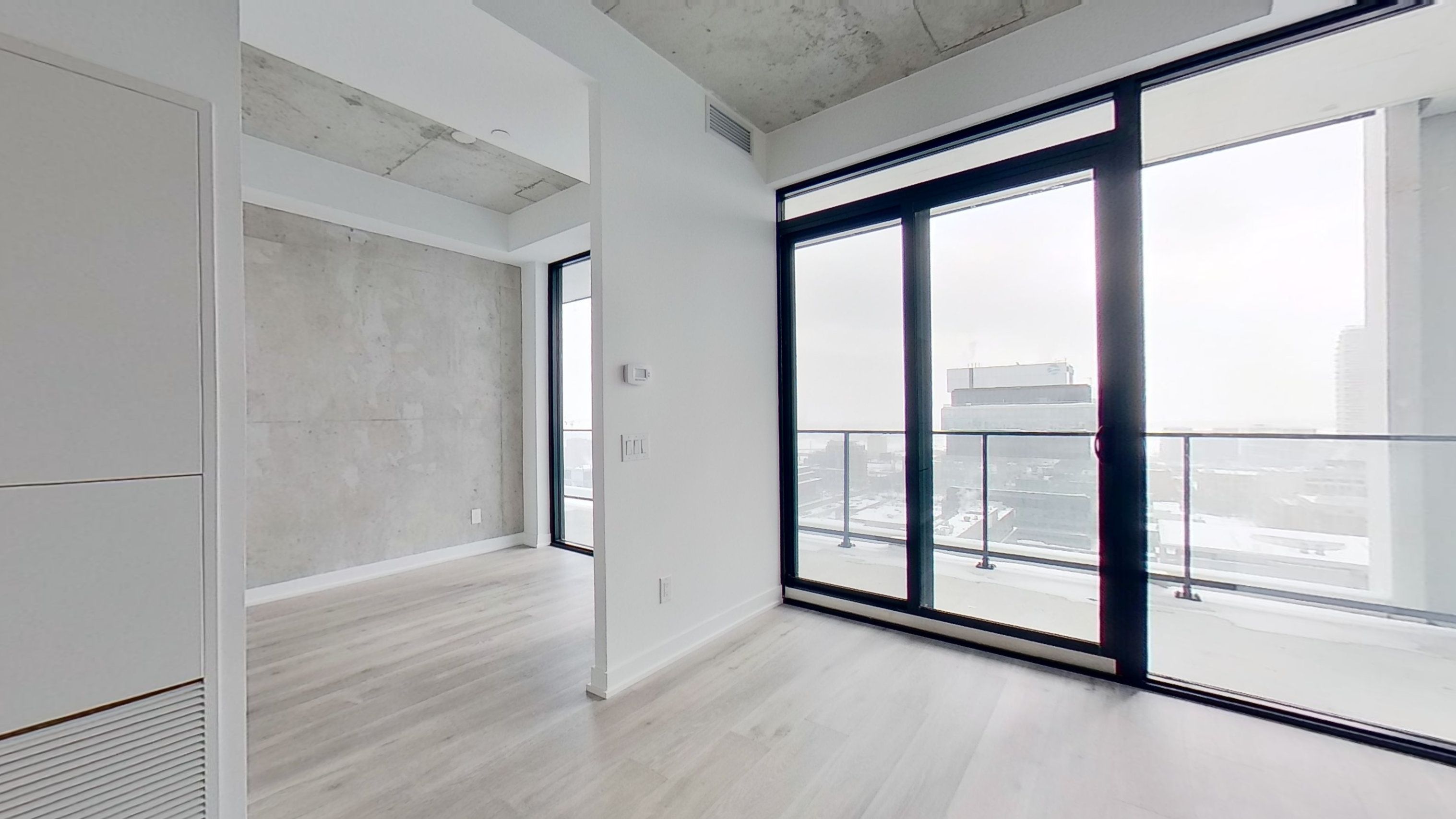 Welcome to refined urban living in toronto. This modern 1-bedroom condo showcases stunning city views through floor-to-ceiling windows, filling the space with natural light and energy. Featuring 9-foot ceilings, an open-concept layout, and luxury finishes, the unit blends sophistication with a loft-inspired edge, highlighted by exposed concrete ceilings and sleek, modern appliances. Step out onto your private balcony with bbq gas line, perfect for entertaining or unwinding above the city skyline. Set in the heart of downtown, you're steps to ttc streetcars, vibrant cafés, bars, restaurants, and everyday essentials, with effortless access to major routes. Enjoy premium amenities including an outdoor pool, fully equipped fitness centre, and stylish party room. This is more than a condo, it's a lifestyle in one of toronto's most dynamic neighbourhoods. Make this stunning condo your home today!