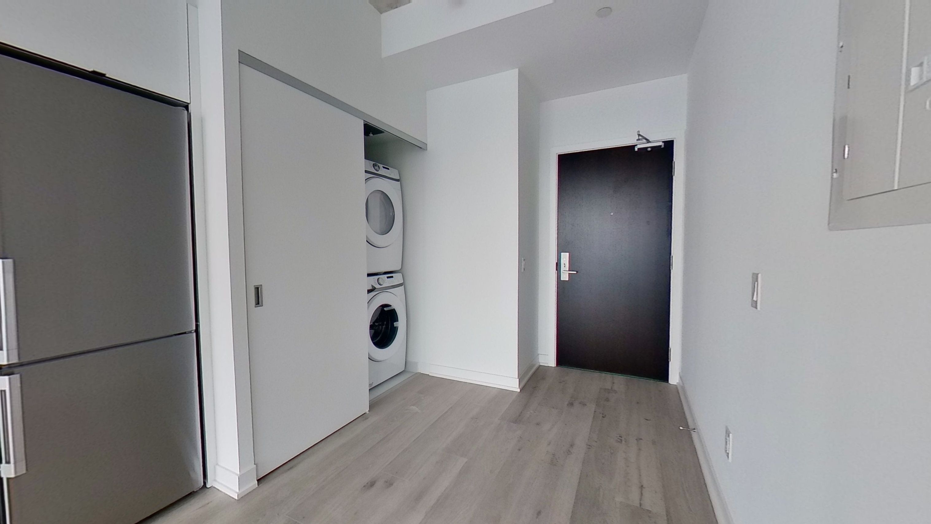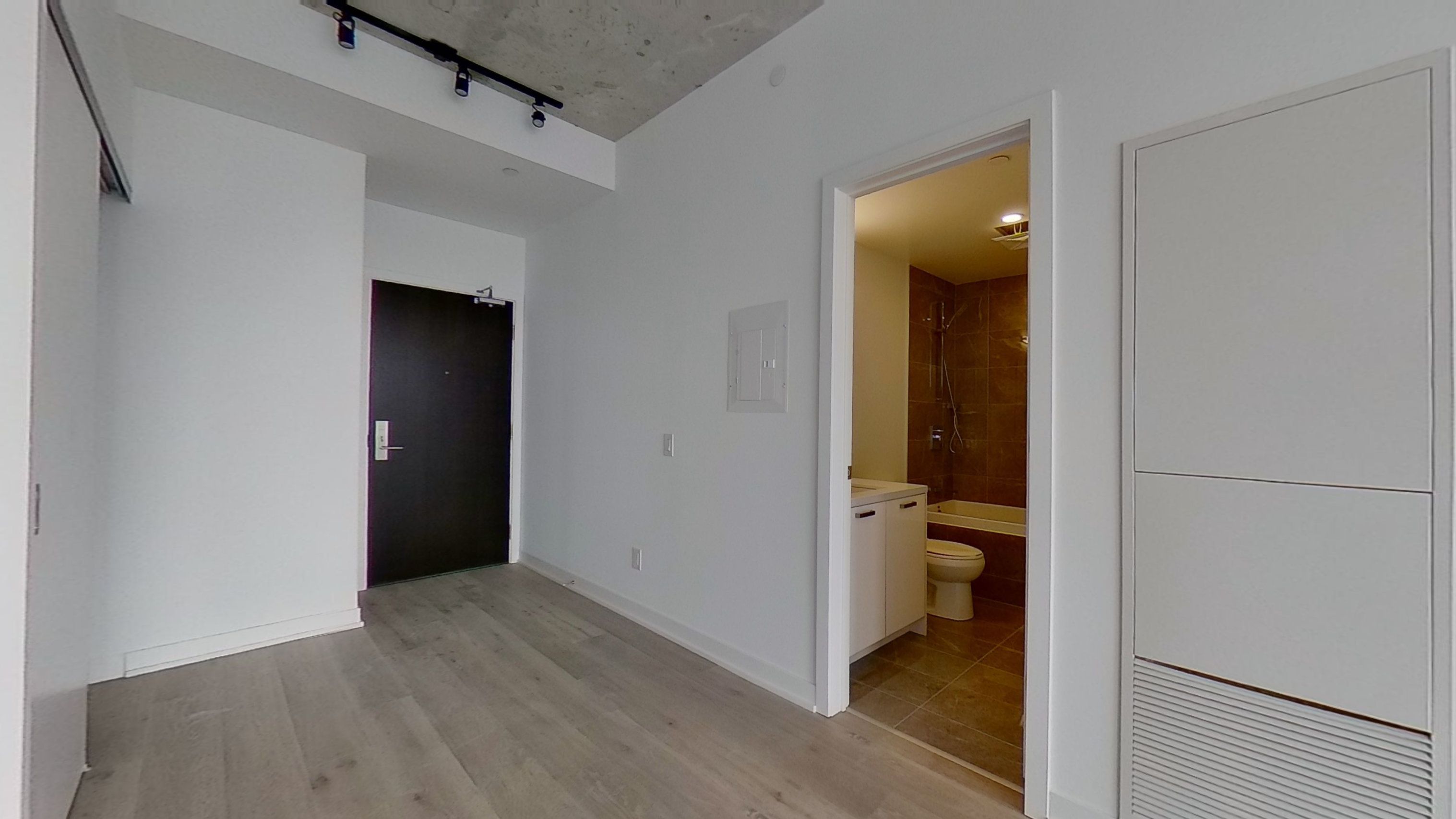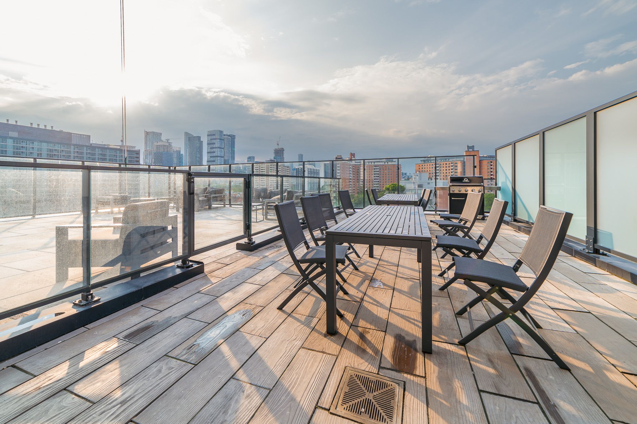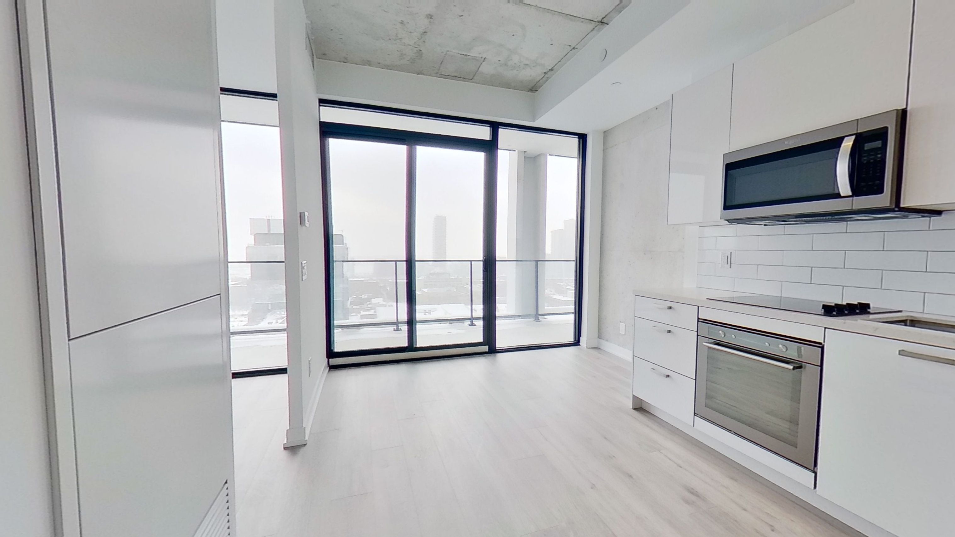 Welcome to refined urban living in toronto. This modern 1-bedroom condo showcases stunning city views through floor-to-ceiling windows, filling the space with natural light and energy. Featuring 9-foot ceilings, an open-concept layout, and luxury finishes, the unit blends sophistication with a loft-inspired edge, highlighted by exposed concrete ceilings and sleek, modern appliances. Step out onto your private balcony with bbq gas line, perfect for entertaining or unwinding above the city skyline. Set in the heart of downtown, you're steps to ttc streetcars, vibrant cafés, bars, restaurants, and everyday essentials, with effortless access to major routes. Enjoy premium amenities including an outdoor pool, fully equipped fitness centre, and stylish party room. This is more than a condo, it's a lifestyle in one of toronto's most dynamic neighbourhoods. Make this stunning condo your home today!