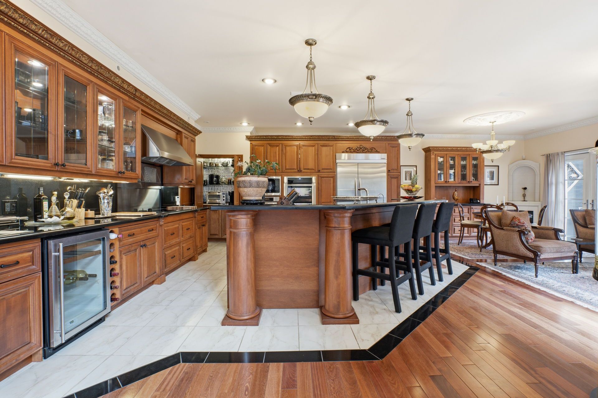 • Gourmet kitchen with top-of-the-line appliances and ample counter space.