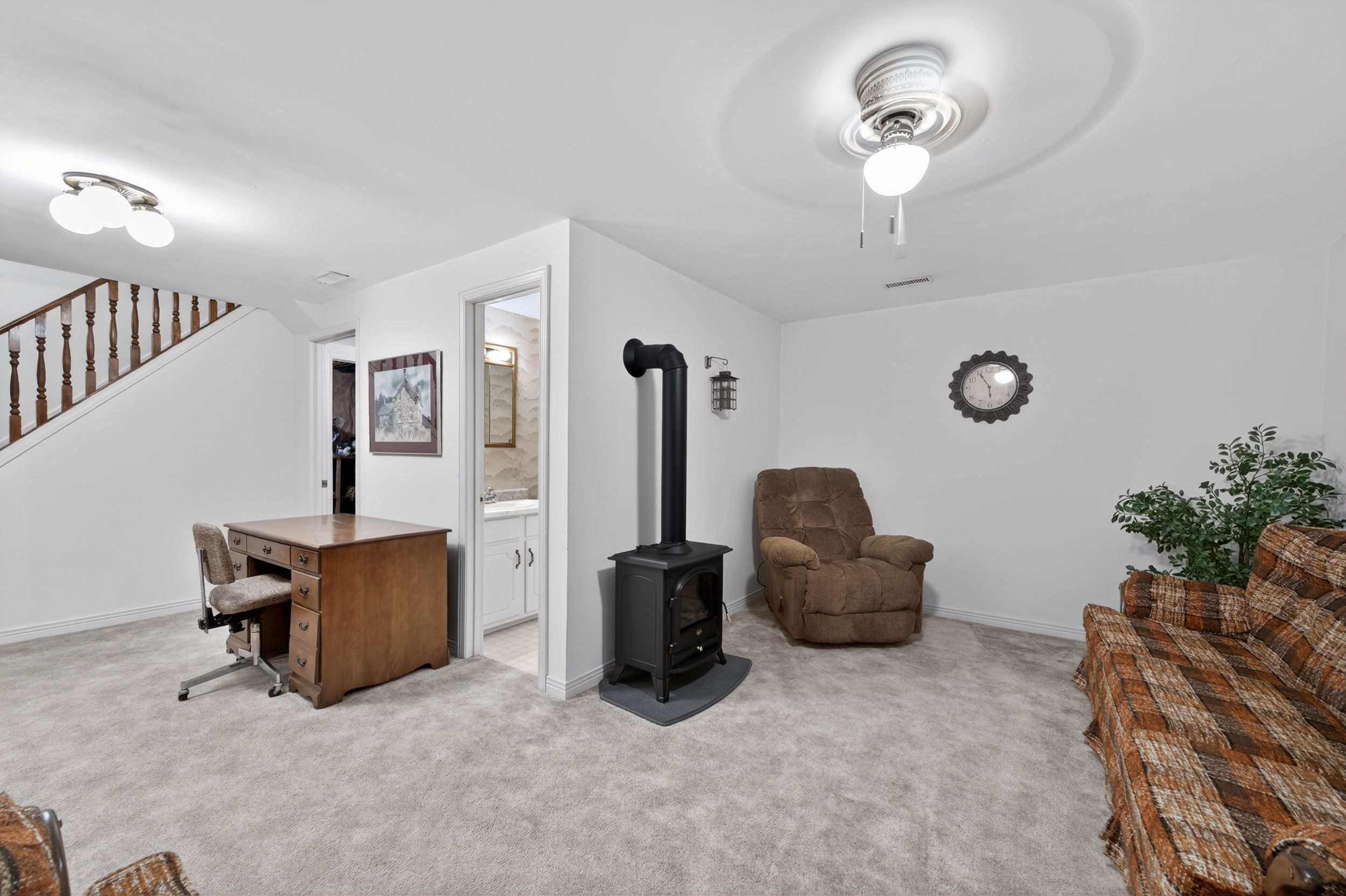 • Partly finished lower level with rec room, workshop, and ample storage.