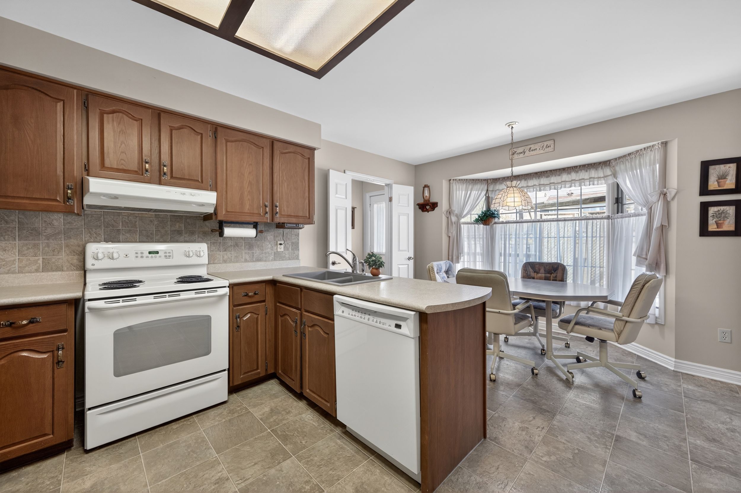 • Functional eat-in kitchen with plenty of counter-space and storage.