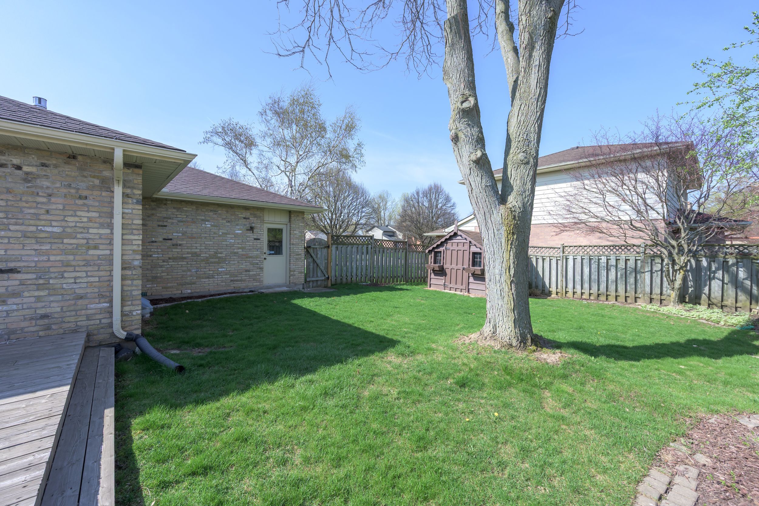 • Large covered porch and back deck overlooking landscaped, fenced yard.