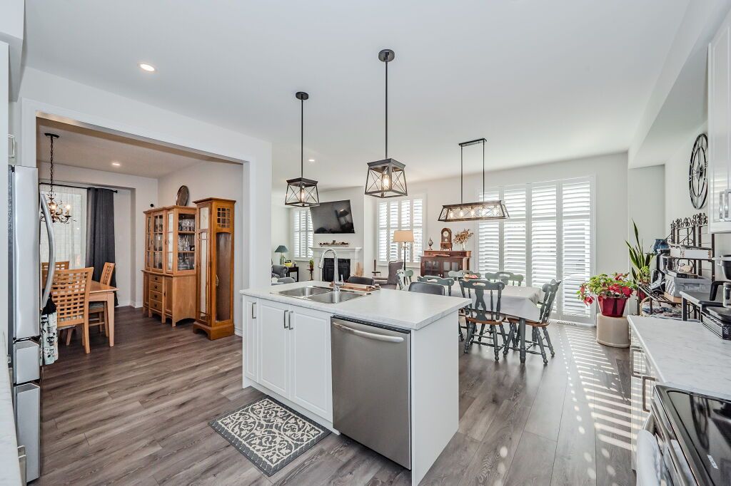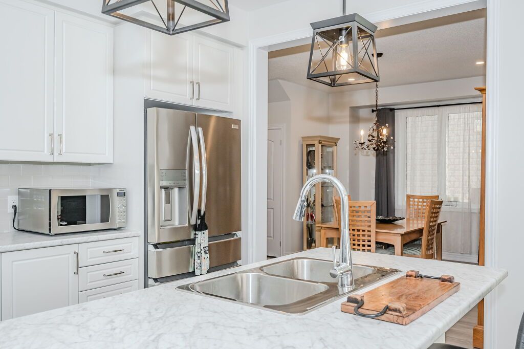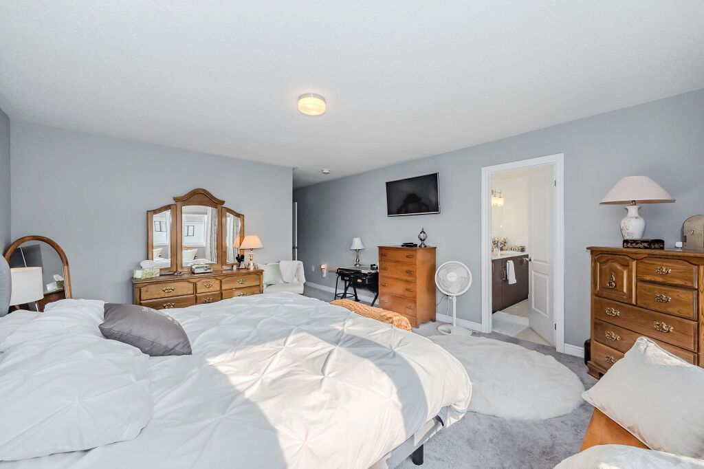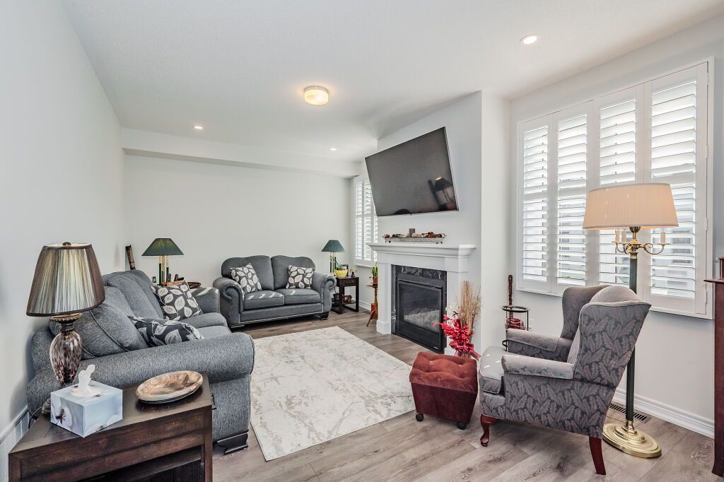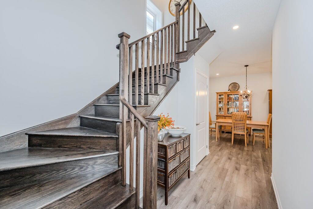 Presenting a magnificent 4-bedroom residence, situated in an enviable location, offering an impressive 2,700 square feet of total refined living space. This extraordinary "pet-free from new" property has been meticulously upgraded to cater to the most discerning of tastes. This exceptional property has undergone a plethora of upgrades, including a gas fireplace, an oak staircase with a maple finish, and upgraded vanities throughout. The gourmet kitchen features stainless steel canopy hood fans and under-counter lighting, perfect for any culinary enthusiast. The master ensuite boasts a luxurious tub with a handheld faucet, a spa-like shower, and upgraded features like a niche and glass enclosure. Two of the 5 bathrooms have been upgraded with one-piece toilets and modern fixtures. High-end laminate flooring throughout the main level adds a touch of elegance, while valence mouldings on all floors complete the look. A backsplash in the kitchen, an insulated garage ceiling, and an electric tv package in the master bedroom are just a few of the many additional upgrades. The exterior features an outside gas line for a bbq, a 200-amp service, and a house electric surge protector. The owner has supplied numerous upgrades, including appliances, a central vacuum system, and a lennox high-efficiency central air unit. Security cameras with solar panels outside ensure peace of mind, while a stacked washer and dryer complete the picture above grade. However, this home offers even more, with a recently professionally finished basement featuring a large rec room as well as a stylish 3-piece bathroom and lastly a fully fenced back yard. You will be impressed when you see this home in person, don't delay.