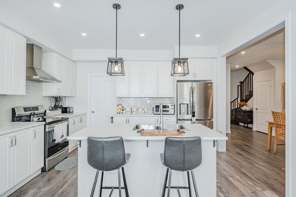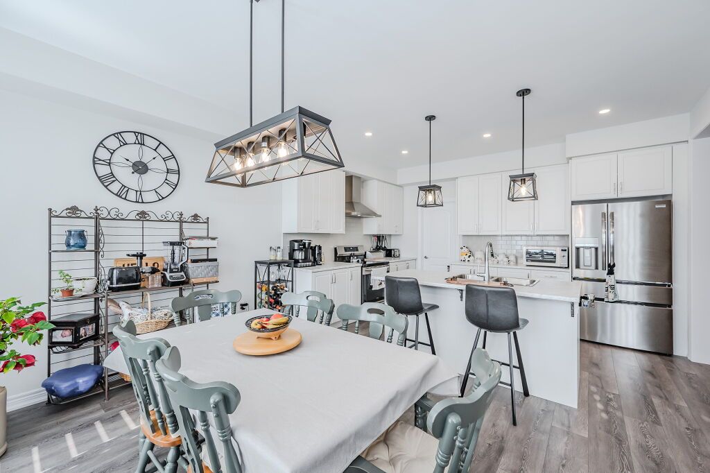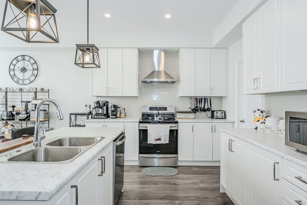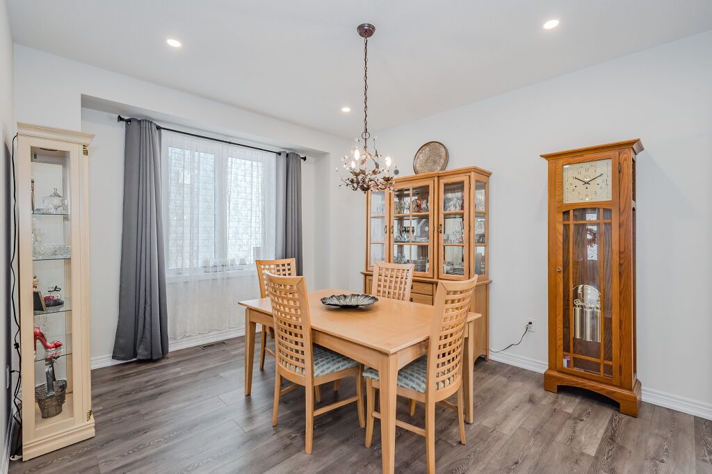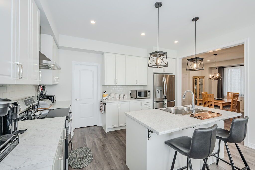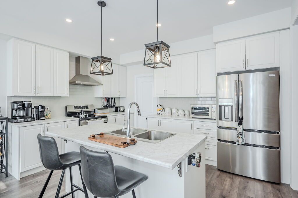 Presenting a magnificent 4-bedroom residence, situated in an enviable location, offering an impressive 2,700 square feet of total refined living space. This extraordinary "pet-free from new" property has been meticulously upgraded to cater to the most discerning of tastes. This exceptional property has undergone a plethora of upgrades, including a gas fireplace, an oak staircase with a maple finish, and upgraded vanities throughout. The gourmet kitchen features stainless steel canopy hood fans and under-counter lighting, perfect for any culinary enthusiast. The master ensuite boasts a luxurious tub with a handheld faucet, a spa-like shower, and upgraded features like a niche and glass enclosure. Two of the 5 bathrooms have been upgraded with one-piece toilets and modern fixtures. High-end laminate flooring throughout the main level adds a touch of elegance, while valence mouldings on all floors complete the look. A backsplash in the kitchen, an insulated garage ceiling, and an electric tv package in the master bedroom are just a few of the many additional upgrades. The exterior features an outside gas line for a bbq, a 200-amp service, and a house electric surge protector. The owner has supplied numerous upgrades, including appliances, a central vacuum system, and a lennox high-efficiency central air unit. Security cameras with solar panels outside ensure peace of mind, while a stacked washer and dryer complete the picture above grade. However, this home offers even more, with a recently professionally finished basement featuring a large rec room as well as a stylish 3-piece bathroom and lastly a fully fenced back yard. You will be impressed when you see this home in person, don't delay.