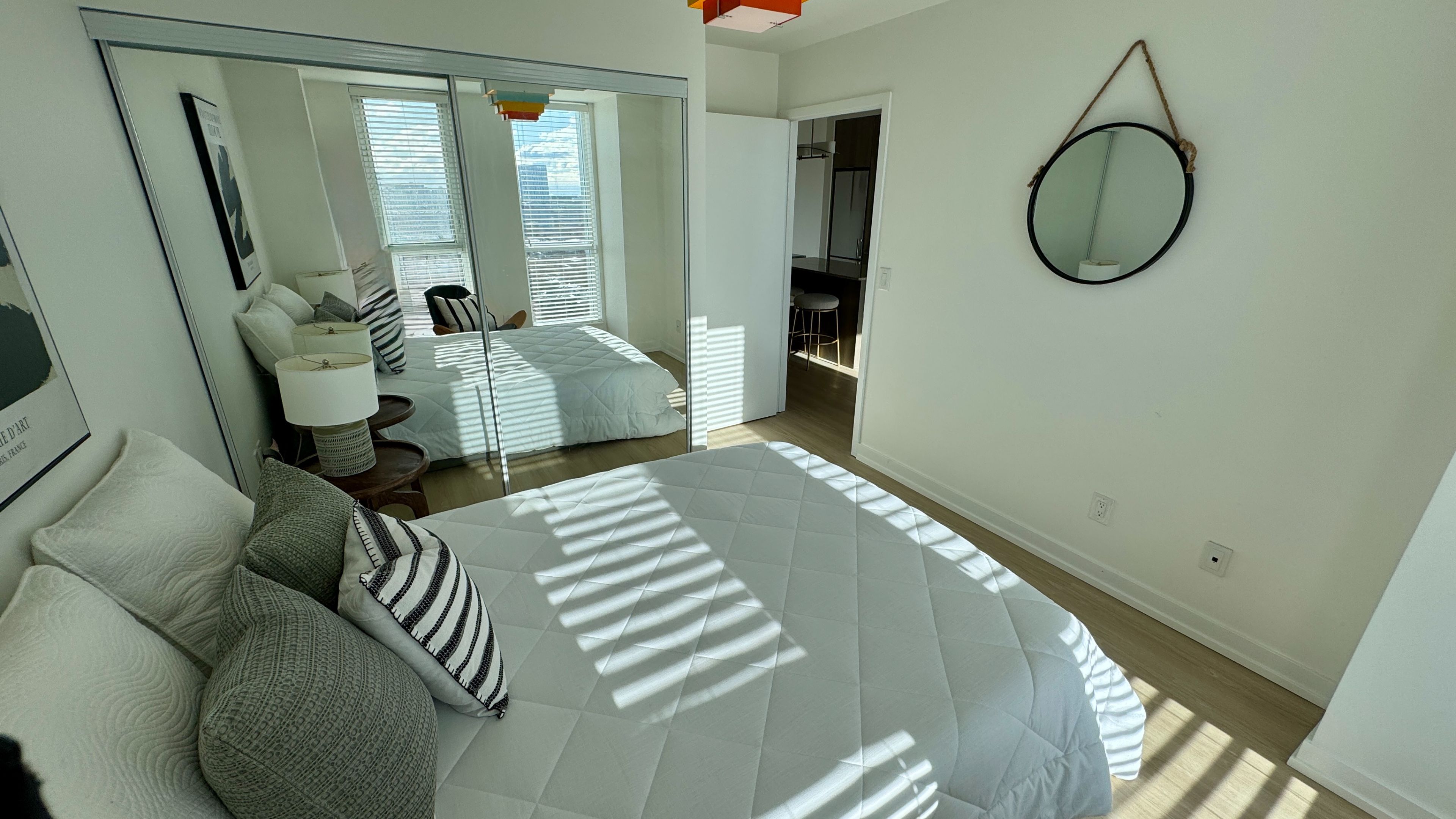 Welcome home to this bright and modern 1-bedroom + media nook/den, 1-bathroom condo in the heart of regent park, one of toronto's most vibrant and evolving neighbourhoods. From the moment you step inside, you'll feel the inviting flow of the open-concept living space, enhanced by south facing floor-to-ceiling windows that fill the unit with natural light. The contemporary kitchen, complete with sleek finishes and stainless steel appliances, makes everyday living and entertaining a breeze. Enjoy your own private balcony, the perfect spot to unwind and take in the energy of the community around you. Outside your door, regent park offers an incredible lineup of amenities: the celebrated aquatic centre, athletic grounds, pam mcconnell skating rink, and seasonal farmers' markets are all just steps away. Trendy cafés, community spaces, and new shops add to the welcoming, village-like atmosphere. Plus, commuting is simple with easy ttc access and bike-friendly streets leading you straight into the downtown core. This is urban living made comfortable, connected, and community-focused-ready for you to move in and enjoy.