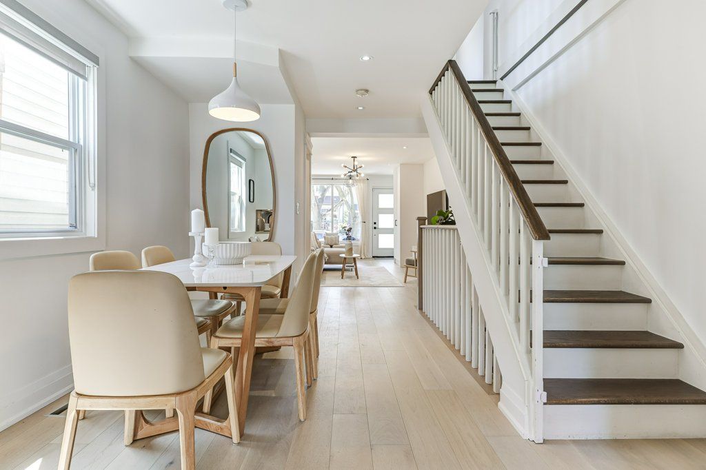 Leslieville modern gem! Set on a quiet, one-way stretch of rhodes avenue, this fully updated detached home sits at the sweet spot between leslieville and the beach - one of toronto's most walkable and sought-after neighbourhoods. The home offers exceptional functionality and charm, featuring a rare private front parking space and a beautifully designed backyard ideal for both entertaining and everyday living. Backyard includes a private, fully fenced backyard with a stone patio (2017), spacious landscaped lawn and a gas bbq line. Inside, the thoughtfully updated layout offers 3 bedrooms and a bright, open-concept main floor, fully renovated in 2023. Designed for modern living, the main level also includes a convenient powder room, a rare and valuable feature for homes in the area. Upstairs, the primary bathroom is elevated with heated floors, adding an everyday touch of comfort and luxury. The finished lower level adds exceptional versatility with space for a home office, rec room or fitness space. The location speaks for itself. Steps to greenwood park, the beach, and leslieville's vibrant mix of cafés, restaurants, and boutique shops. Enjoy outstanding walkability and seamless access to transit, making commuting and city living effortless. The gardiner expressway, lake shore boulevard, and dvp are all just minutes away for convenient travel beyond the core. Adding to the appeal, the neighbourhood continues to evolve with exciting new developments just steps away including history, toronto's newest live entertainment venue, and altea active club, expected to arrive in 2028, further enhancing the area's lifestyle offerings. A rare opportunity to own a move-in ready home on one of east toronto's most charming streets.