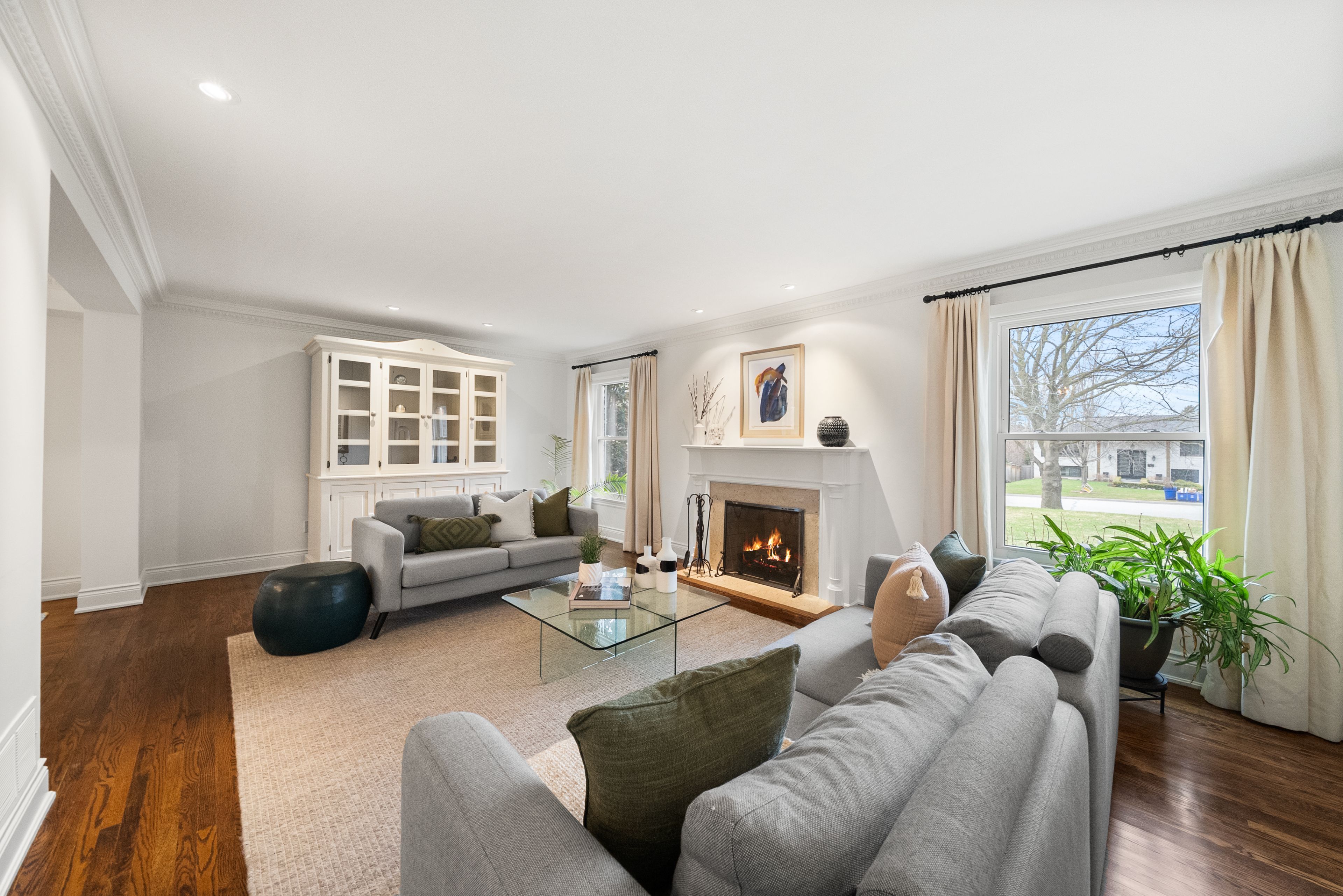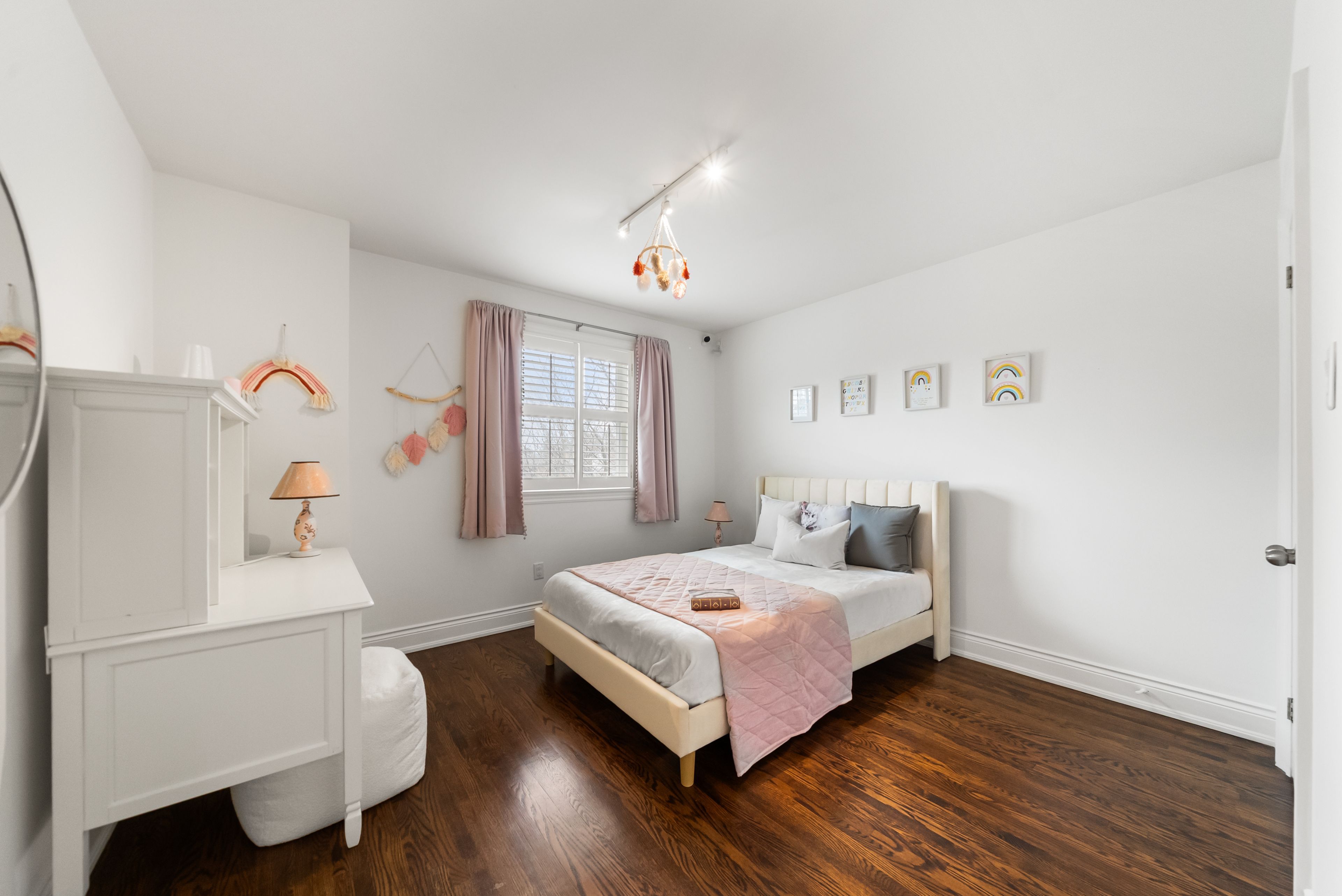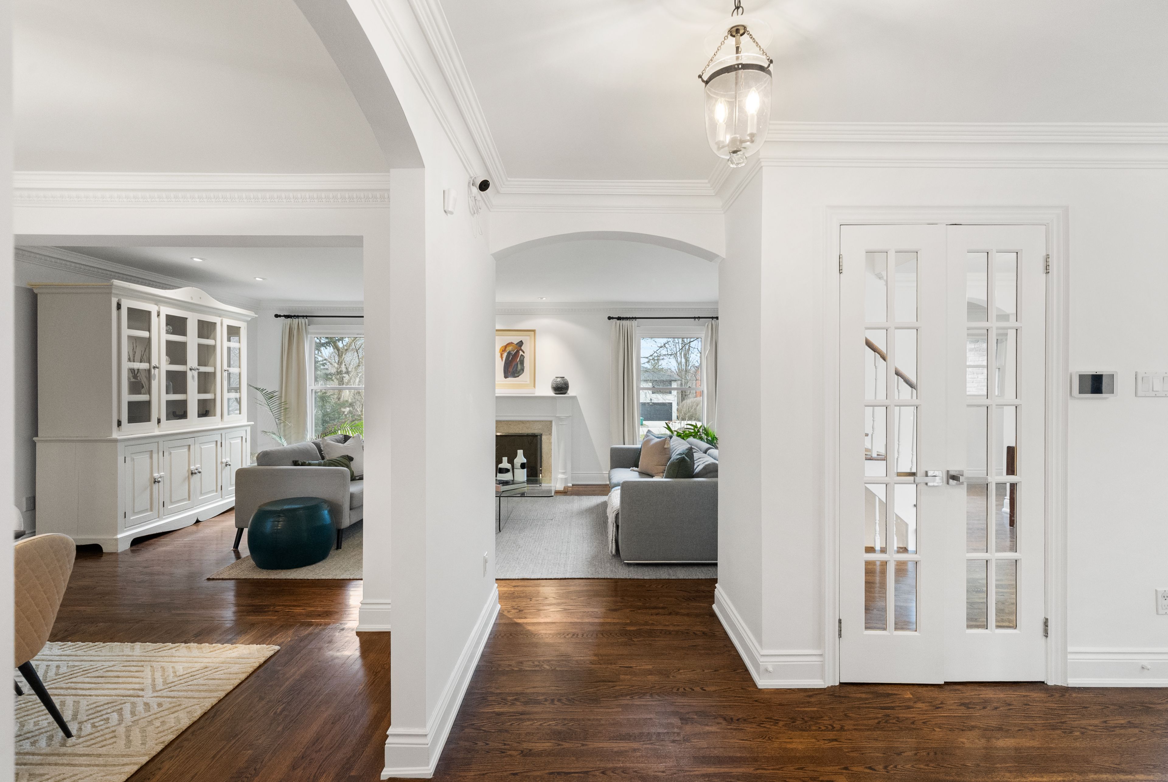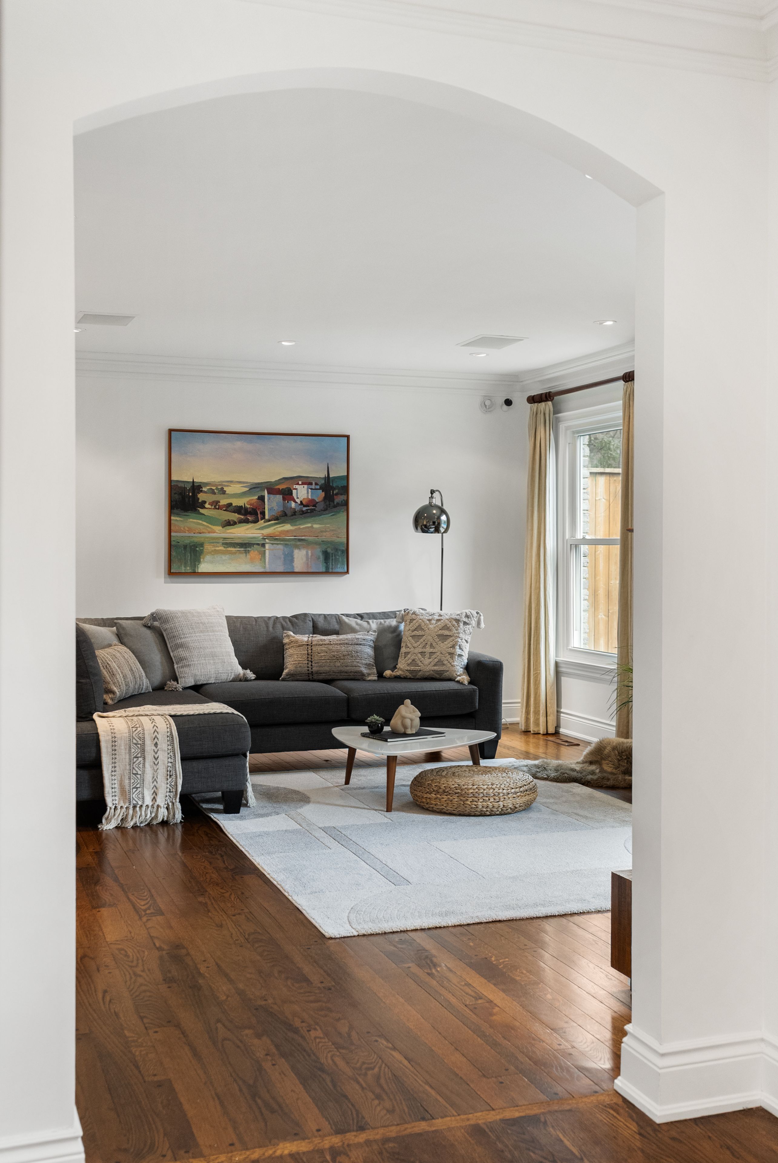 • Spacious rooms with hardwood floors and crown mouldings throughout.