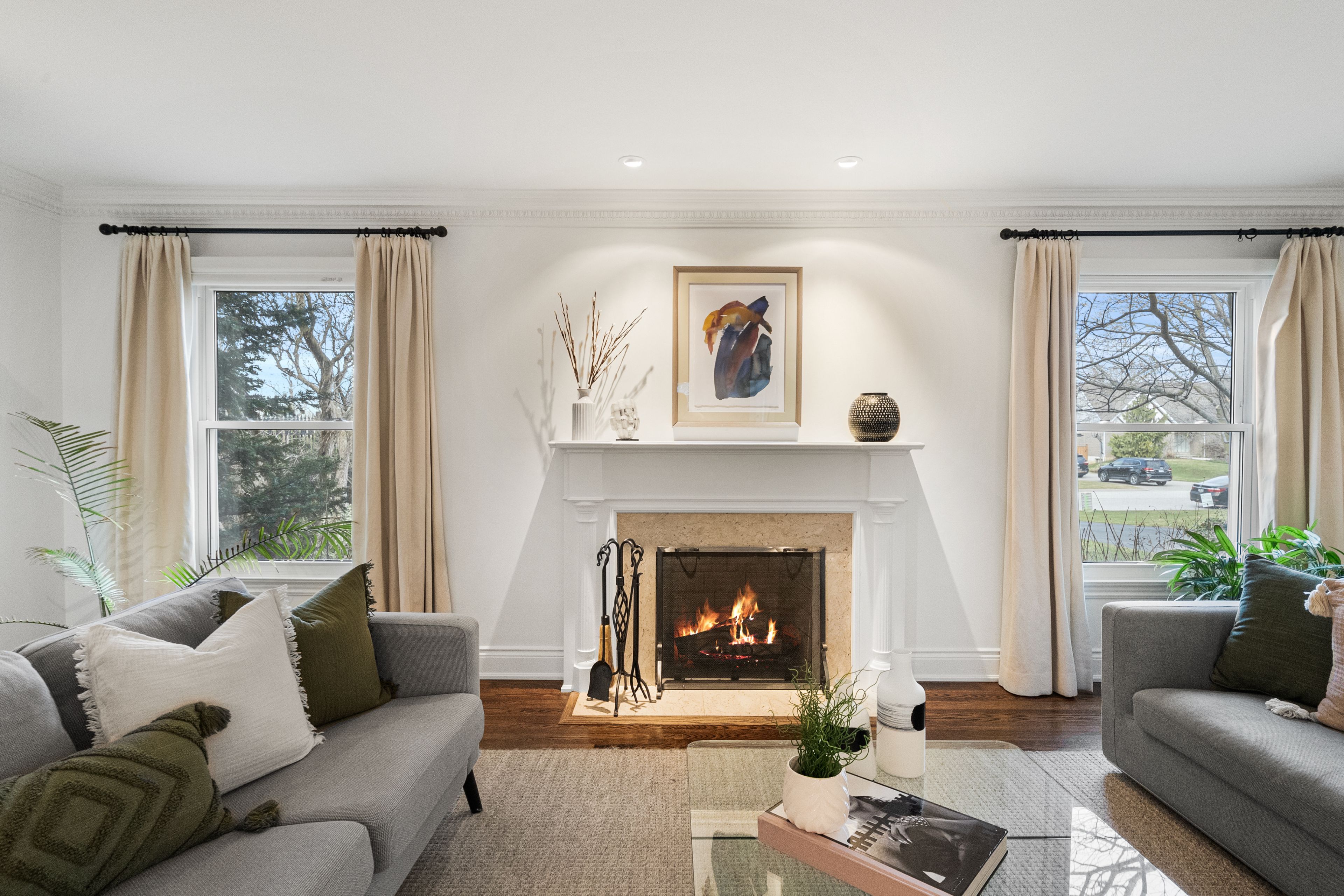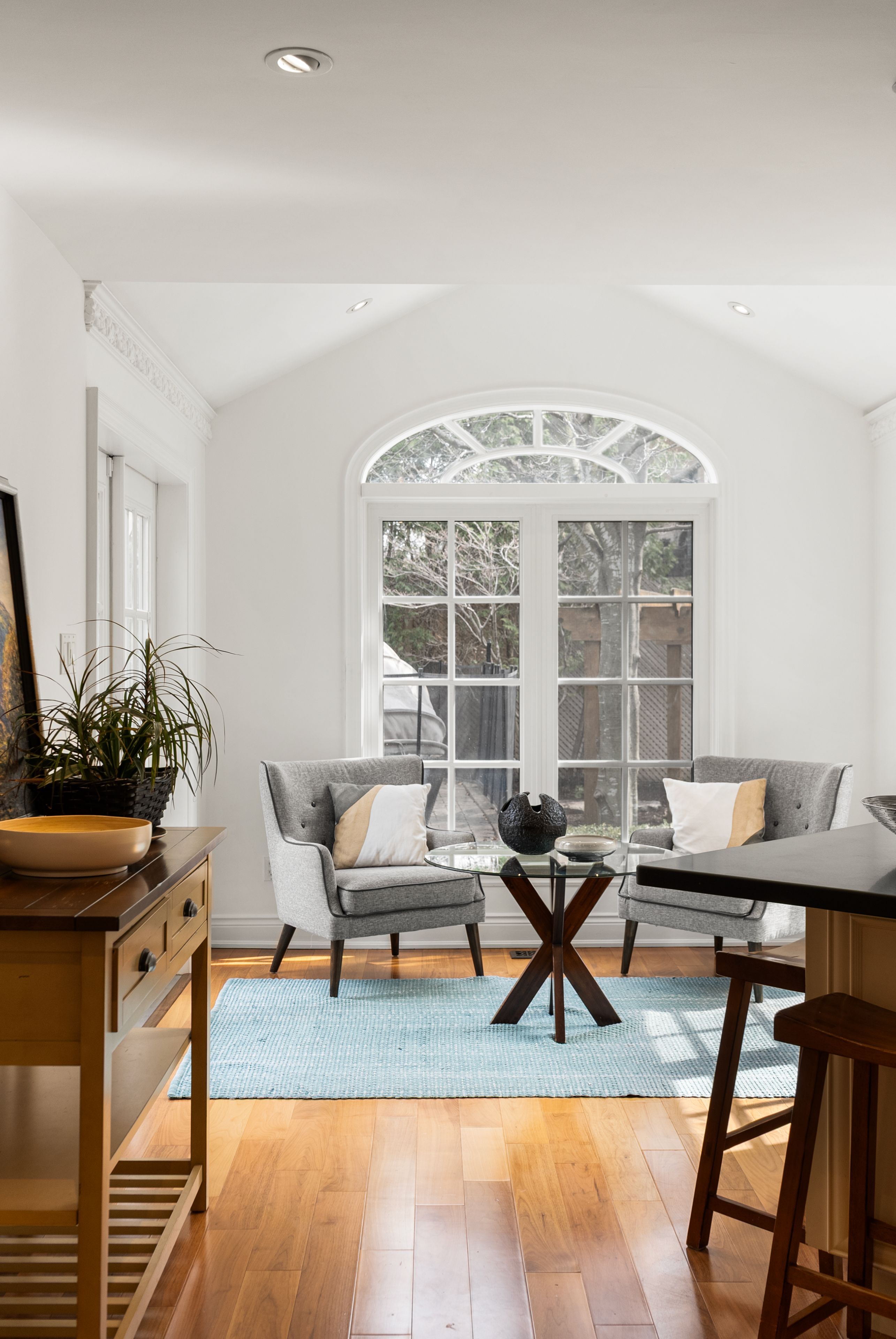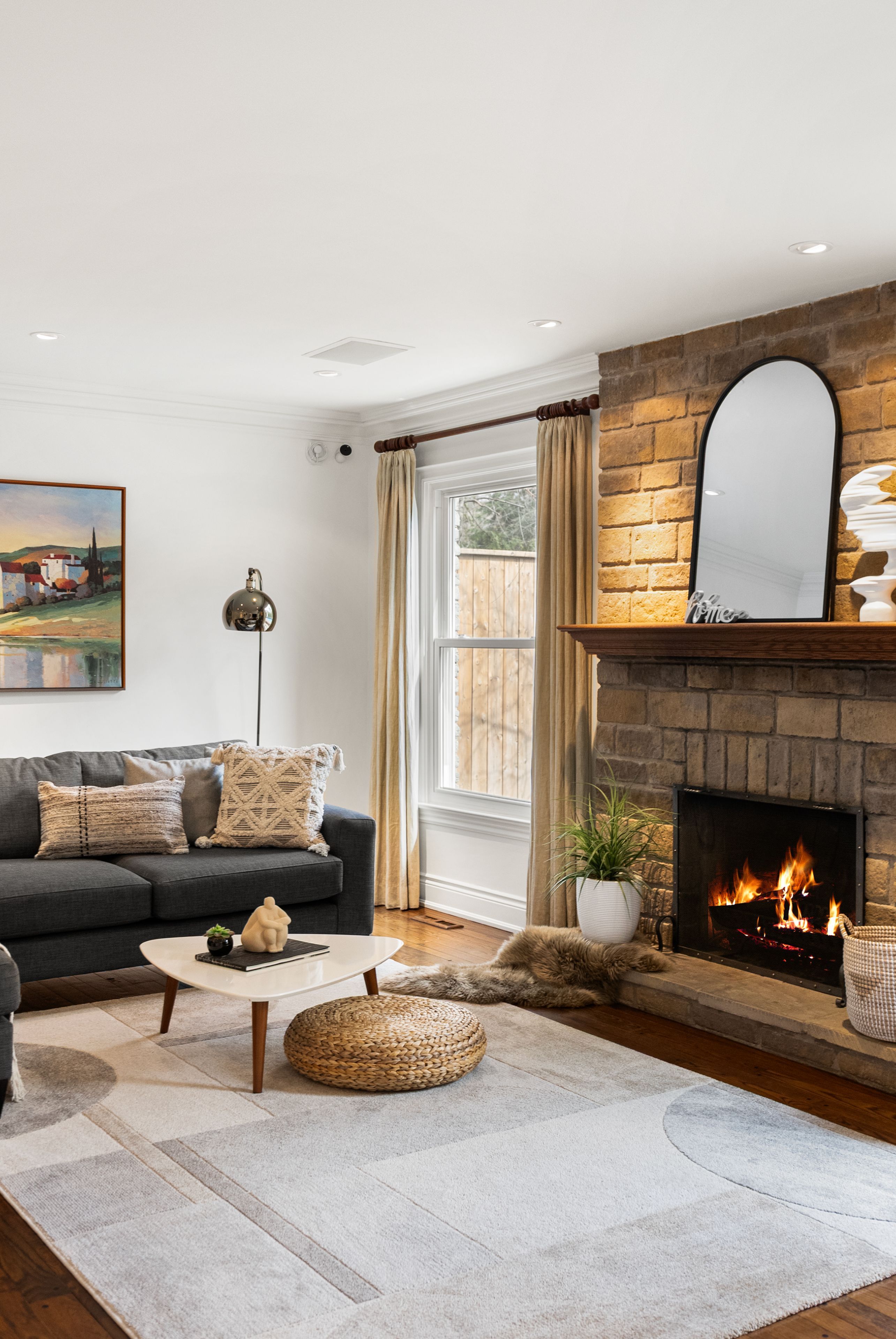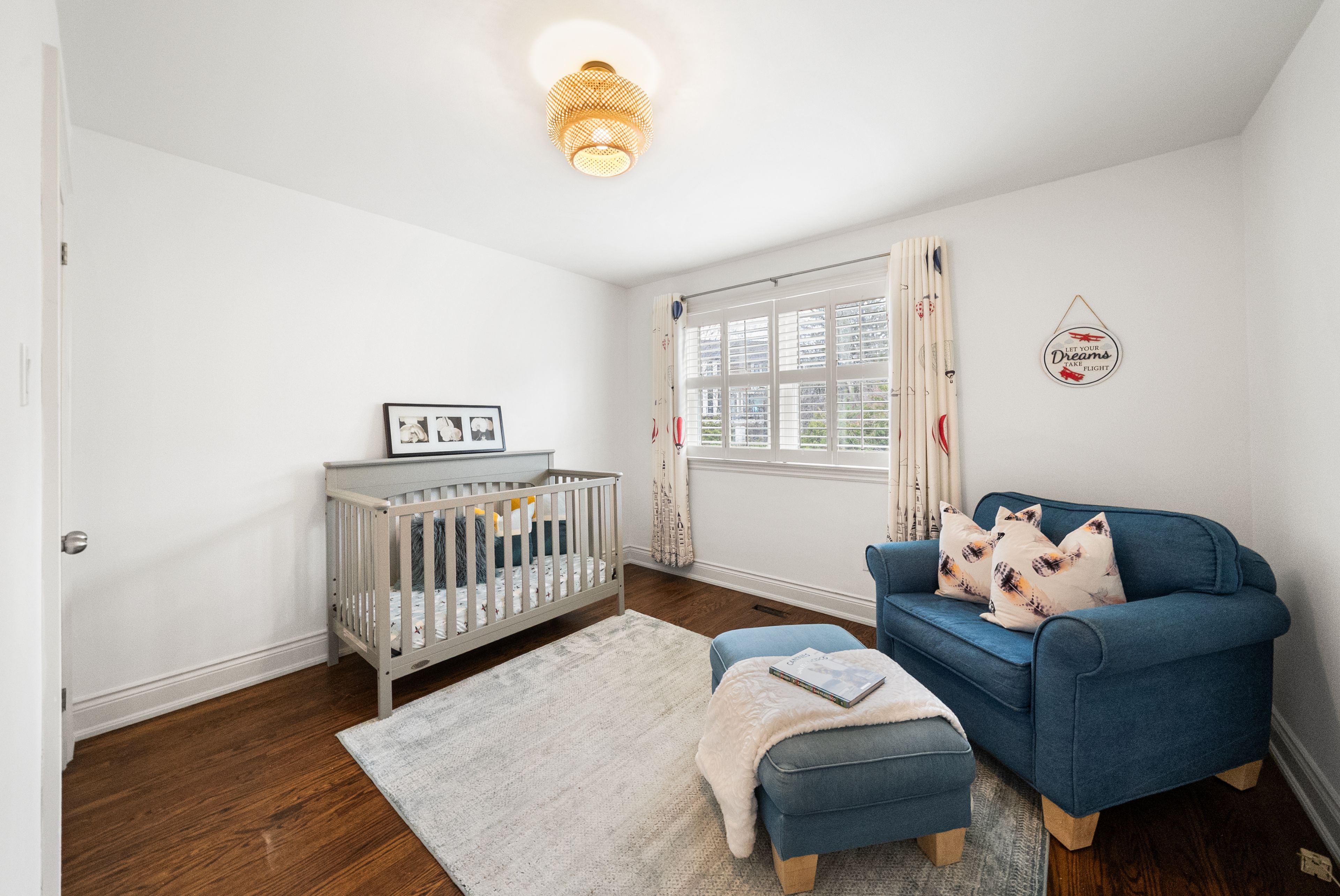 • Spacious rooms with hardwood floors and crown mouldings throughout.