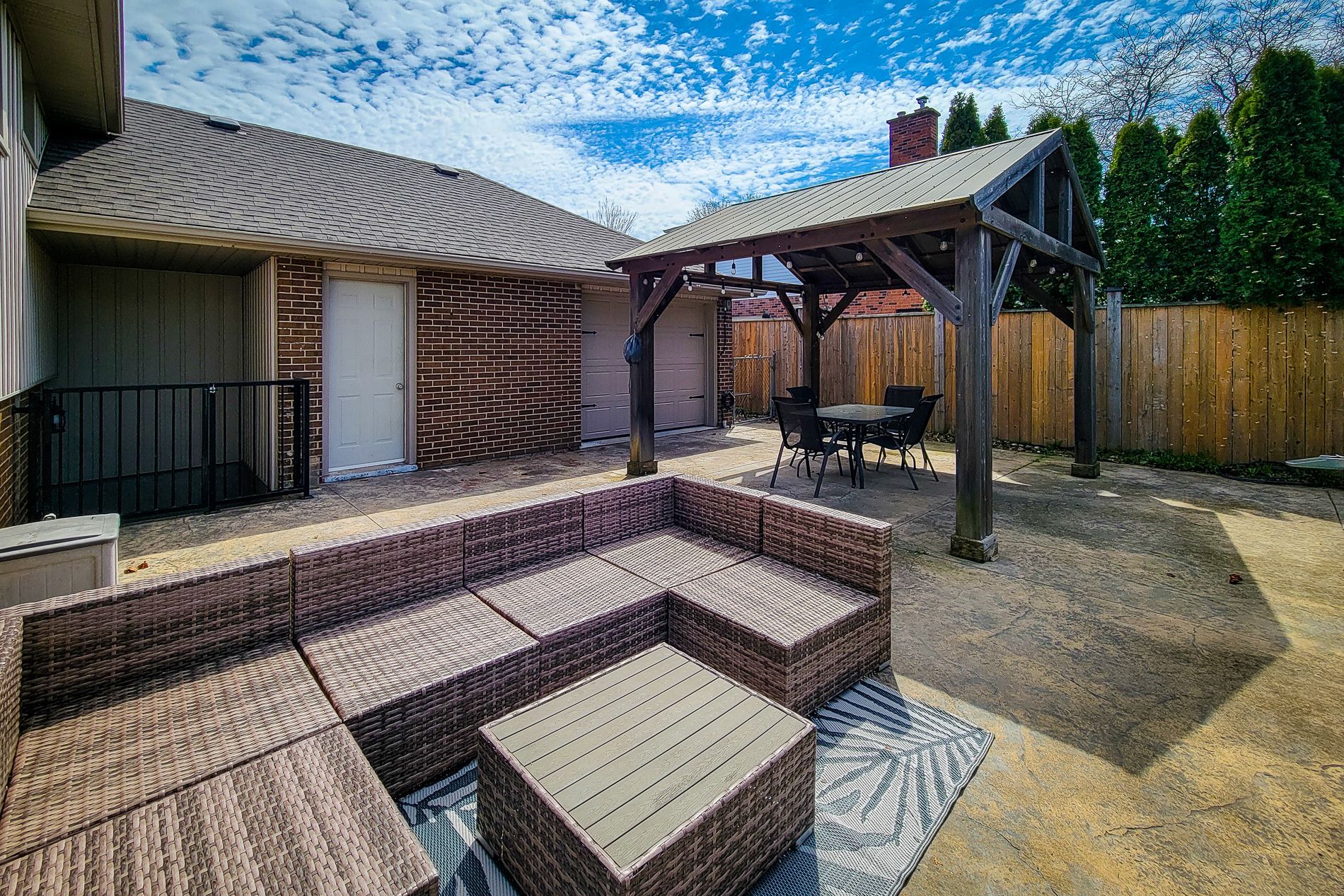 • Private backyard oasis with patio, gazebo, and easy access to the garage.
