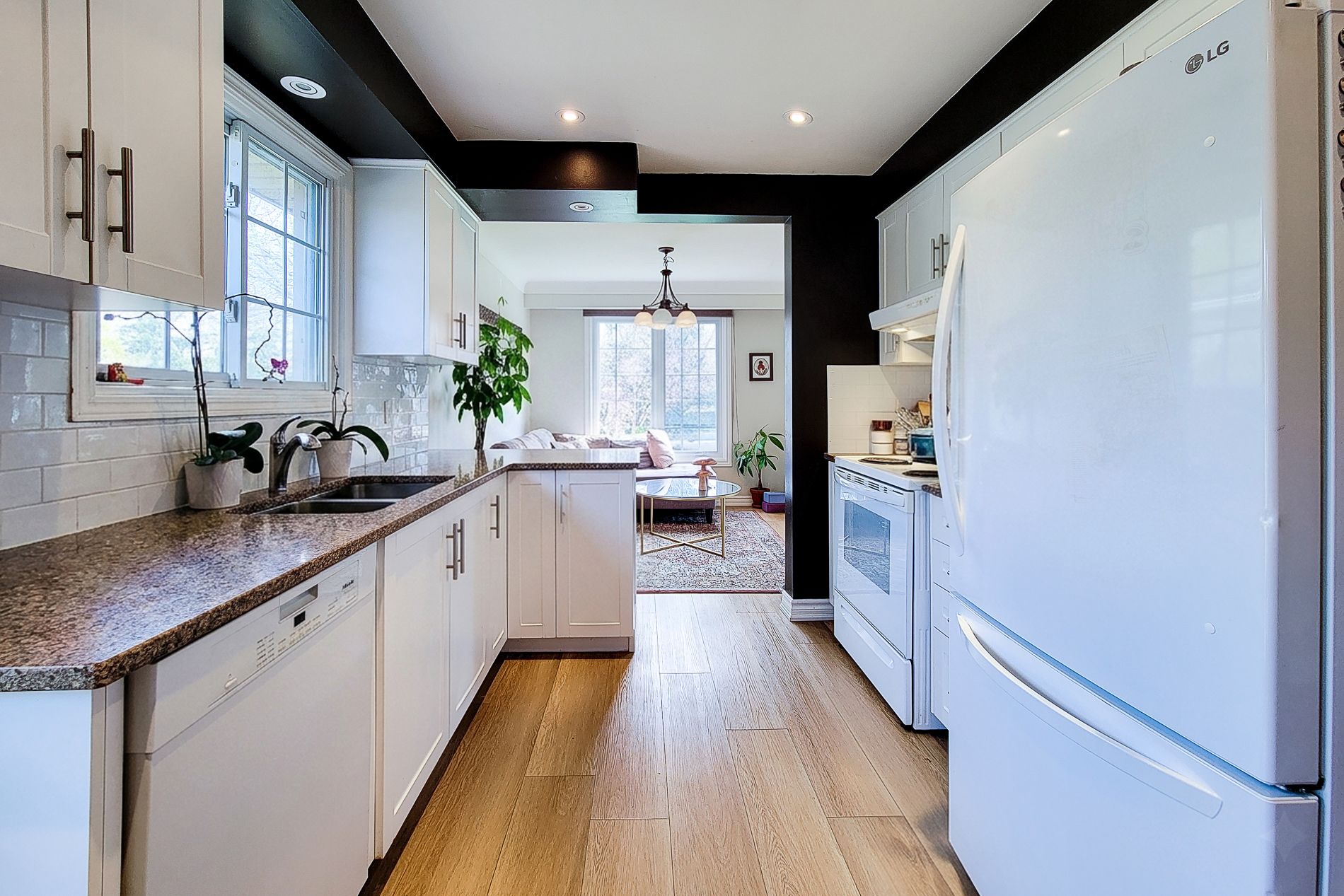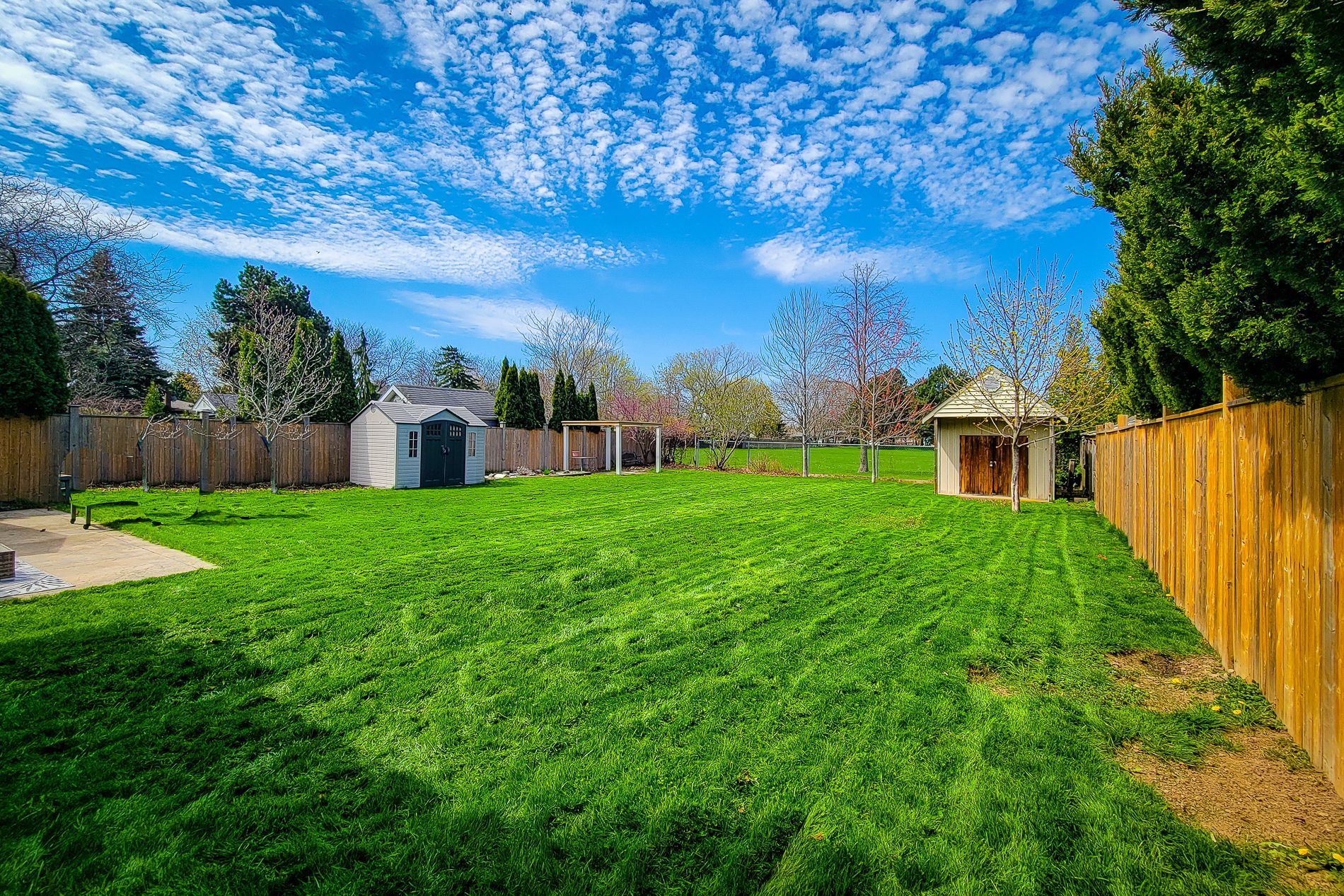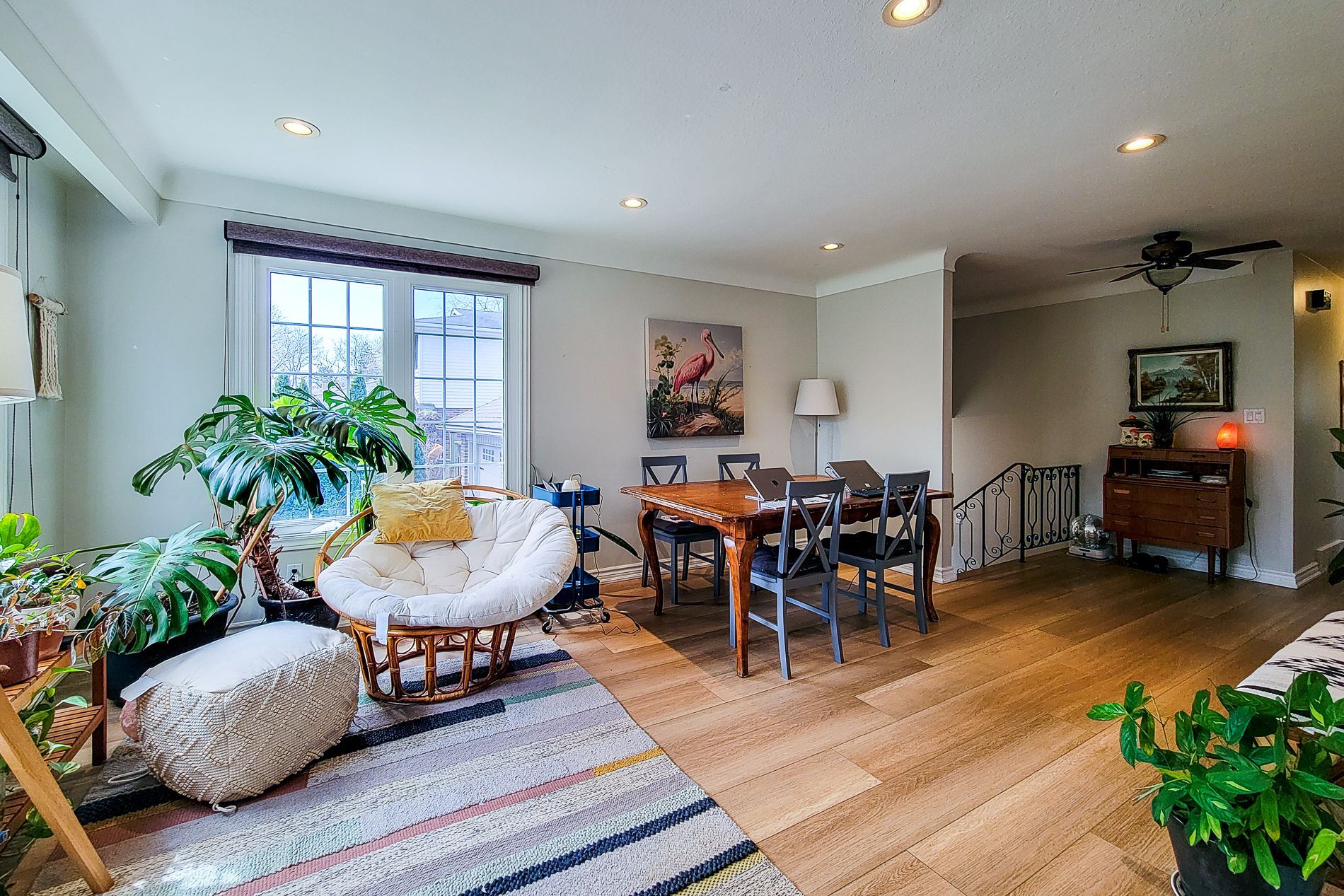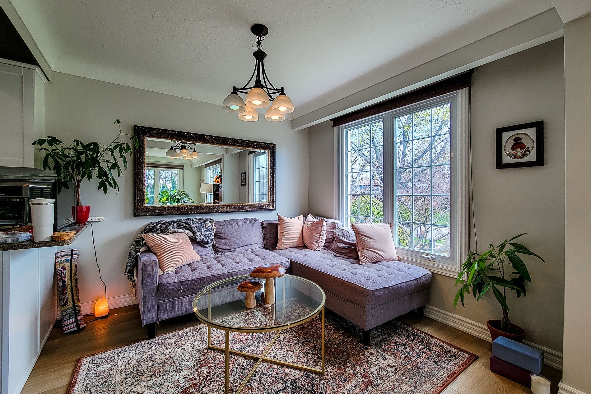 Nestled on a quiet cul-de-sac and set on a large lot with no rear neighbours, this beautifully maintained raised-ranch bungalow offers the perfect blend of space, privacy, and convenience. Backing onto lakeview park, you'll enjoy peaceful views and a serene setting just minutes from the lake and waterfront trail. The main level features a bright and spacious living room, a separate dining area, and an inviting eat-in kitchen complete with granite countertops, tiled backsplash, ample cabinetry, and a walk-out to the side porch-ideal for outdoor dining and entertaining. Three good sized bedrooms and a full 4-piece bathroom complete the upper level. The fully finished lower level offers excellent in-law or multi-generational living potential with its walk-up separate entrance. Enjoy a large family room with a cozy gas fireplace, a spacious fourth bedroom, an additional 4-piece bathroom, and a finished laundry room with plenty of storage space. Step outside to your private backyard oasis. Fully fenced and backing onto open fields, this impressive outdoor space features a stamped concrete patio, gazebo, pergola, and two storage sheds-perfect for relaxing or hosting family and friends. The attached garage also offers convenient rear yard access. Ideally located close to schools, parks, shopping, and all major amenities, this exceptional home combines comfort, functionality, and an unbeatable location. A fantastic opportunity for families, downsizers, or investors alike.