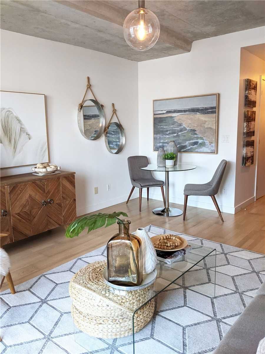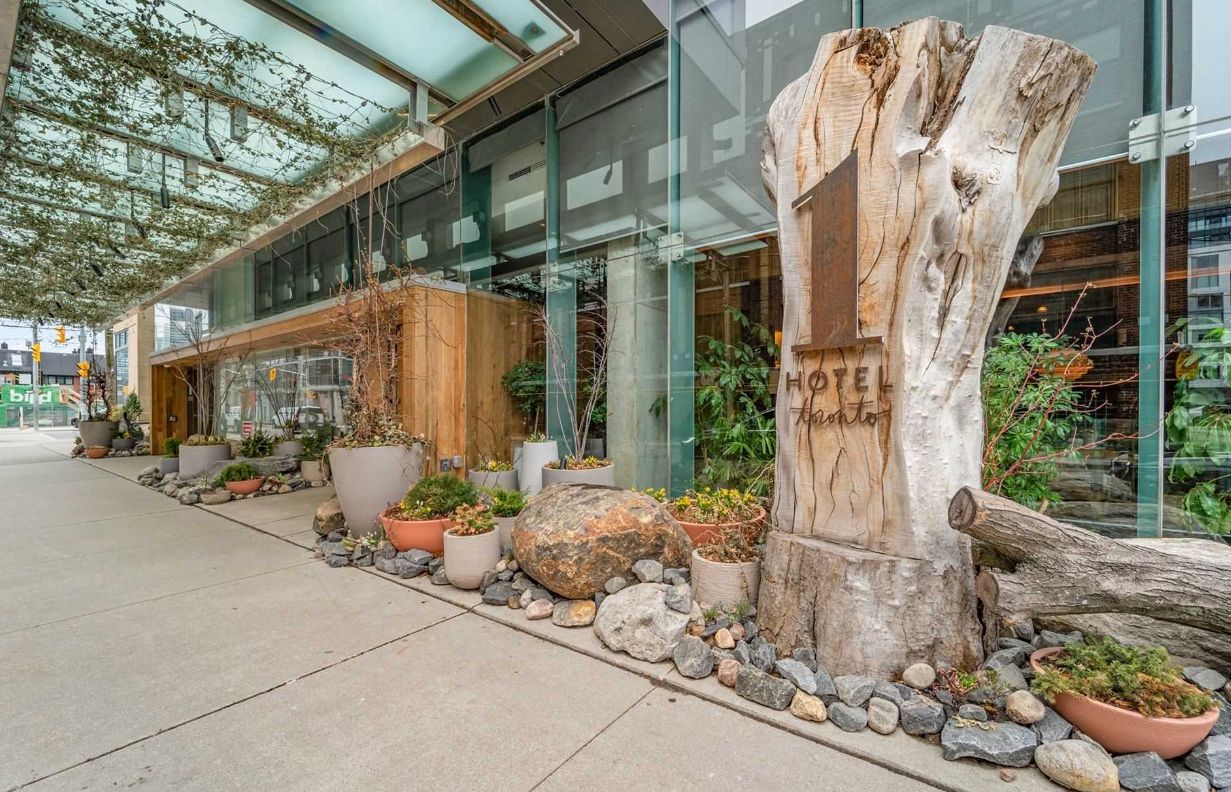 The private residences at 55 stewart (formerly the thompson hotel residences). This modern junior 1 bedroom apartment is in the heart of the downtown core. Great split bedroom floorplan for young professional. Exposed high concrete ceilings. Nice sized balcony - perfect for your morning coffee! Attached to the new one hotel. Beautiful courtyard and access to victoria memorial park. Amazing building amenities: rooftop pool and deck, sauna, bike storage, party room, guest suites, fitness studio, concierge. Walkscore of 95!! Everything at your fingertips in west queen west and the fashion district. Steps to streetcar, popular restaurants/bars/coffee shops/nightlife. Quick access to gardiner/dvp. Hotel living at its finest - welcome home!