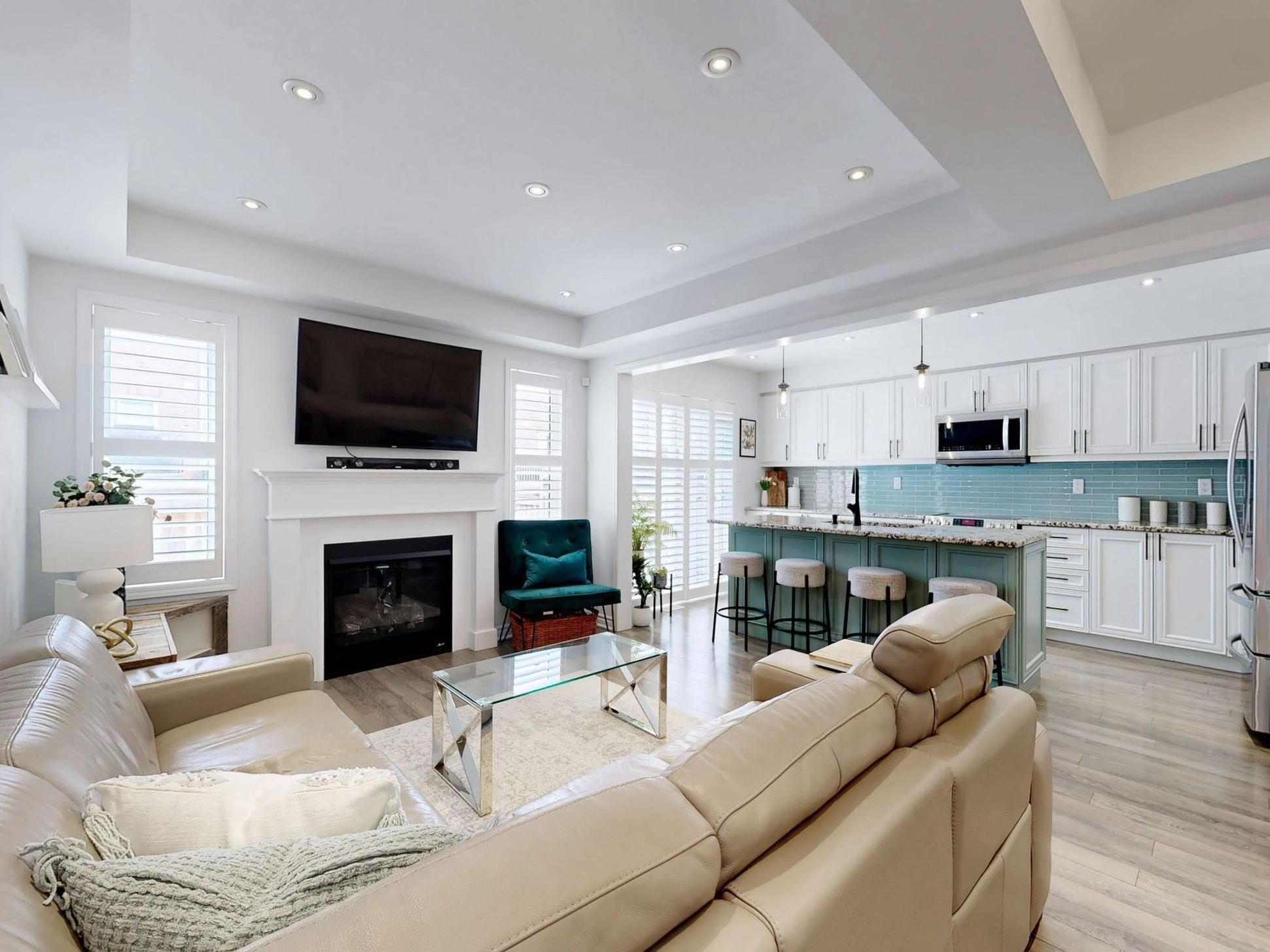 Beautiful end-unit townhome in aurora featuring a bright open-concept layout. Custom kitchen with large island, main floor office, and convenient 2nd floor laundry. Finished basement offers additional living space, while the private interlock patio is perfect for outdoor enjoyment. Move-in ready in a fantastic location!