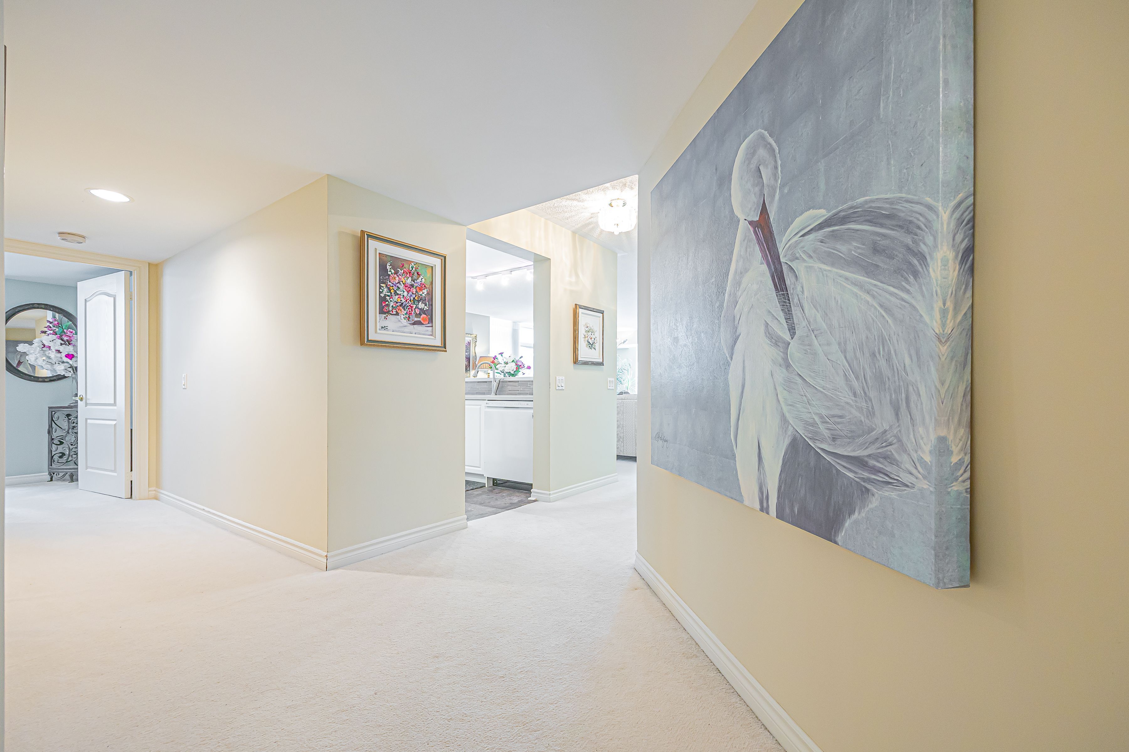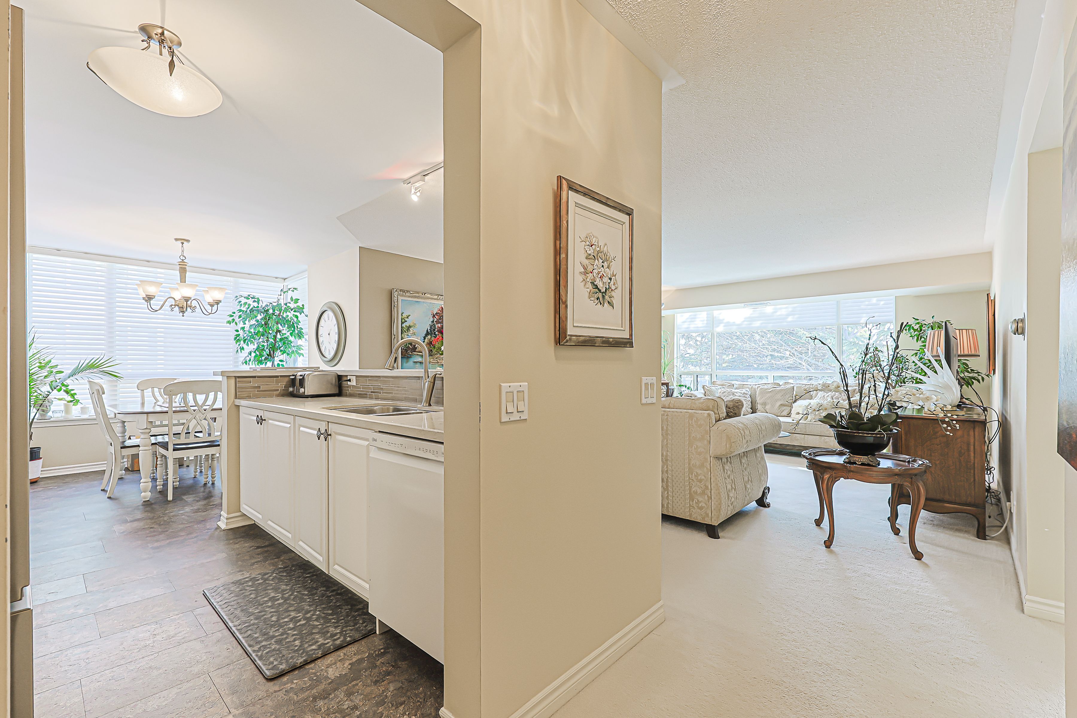 This is the one you've been waiting for! Rarely offered and most desired, open concept "catalina" corner suite with walls of windows facing south overlooking trees. 1474 sq. Ft plus a premium, covered, oversized balcony perfect for enjoying your morning coffee rain or shine. Bring your "house sized" furniture to this split bedroom floorplan that offers privacy for guests. You'll love the white eat-in kitchen with ample counter space and fabulous pantry. The primary suite is large enough for your king sized bed and offers two closets and 4 pc ensuite with a walk-in shower. A rare combination of generous living space, natural light and resort style living not to be missed. Discover the 16,000 sq ft swan club with an active social scene and boasting an indoor pool, gym, billiards, library, games area and terraces overlooking the lake plus 3 satellite clubhouses with outdoor pools, tennis and pickle ball courts and walking trails. You'll appreciate the 24 hr gatehouse security, underground parking and maintenance freeliving.... Travel without a care. Perfection!