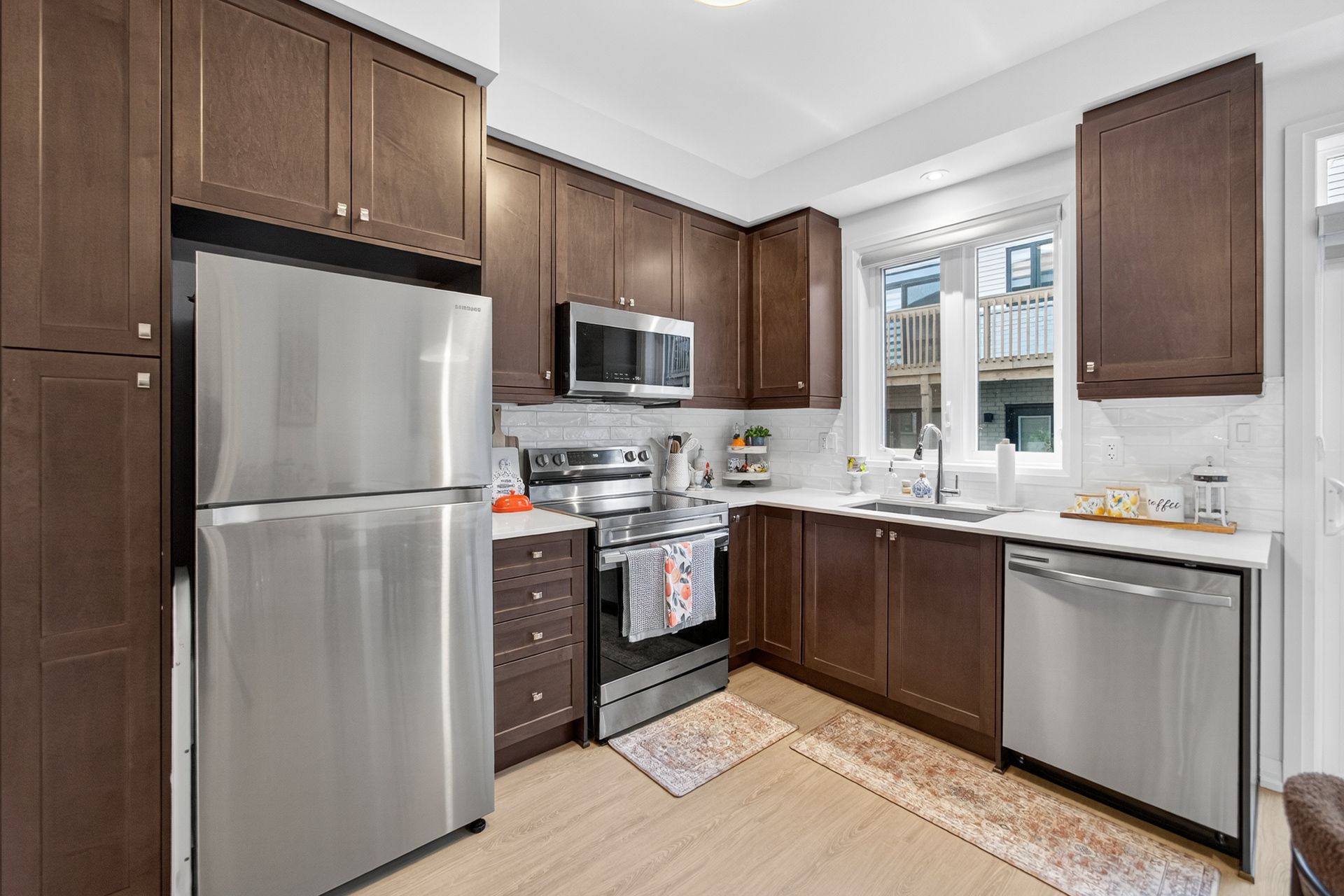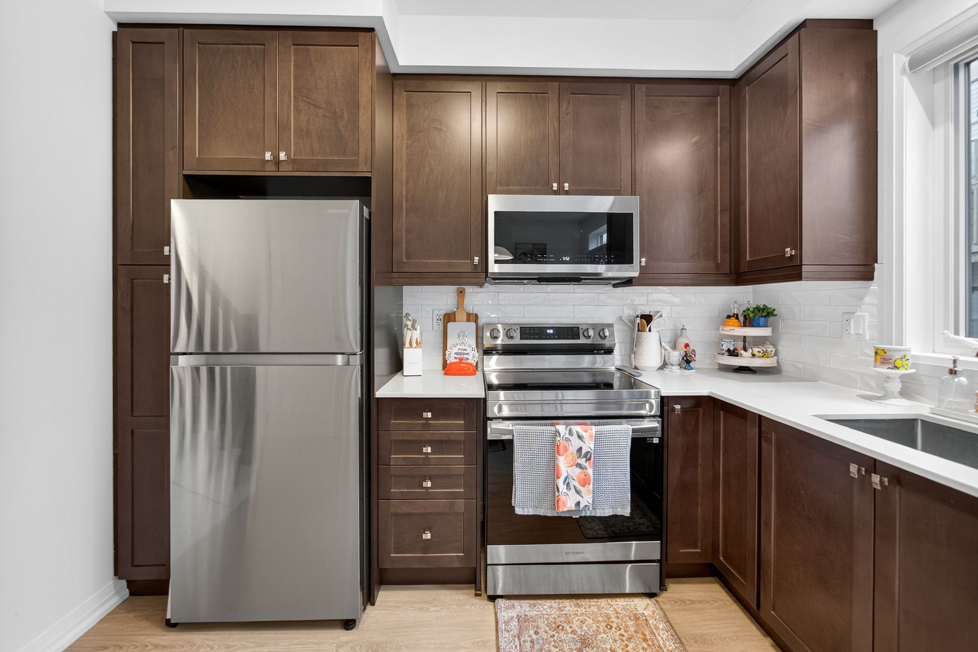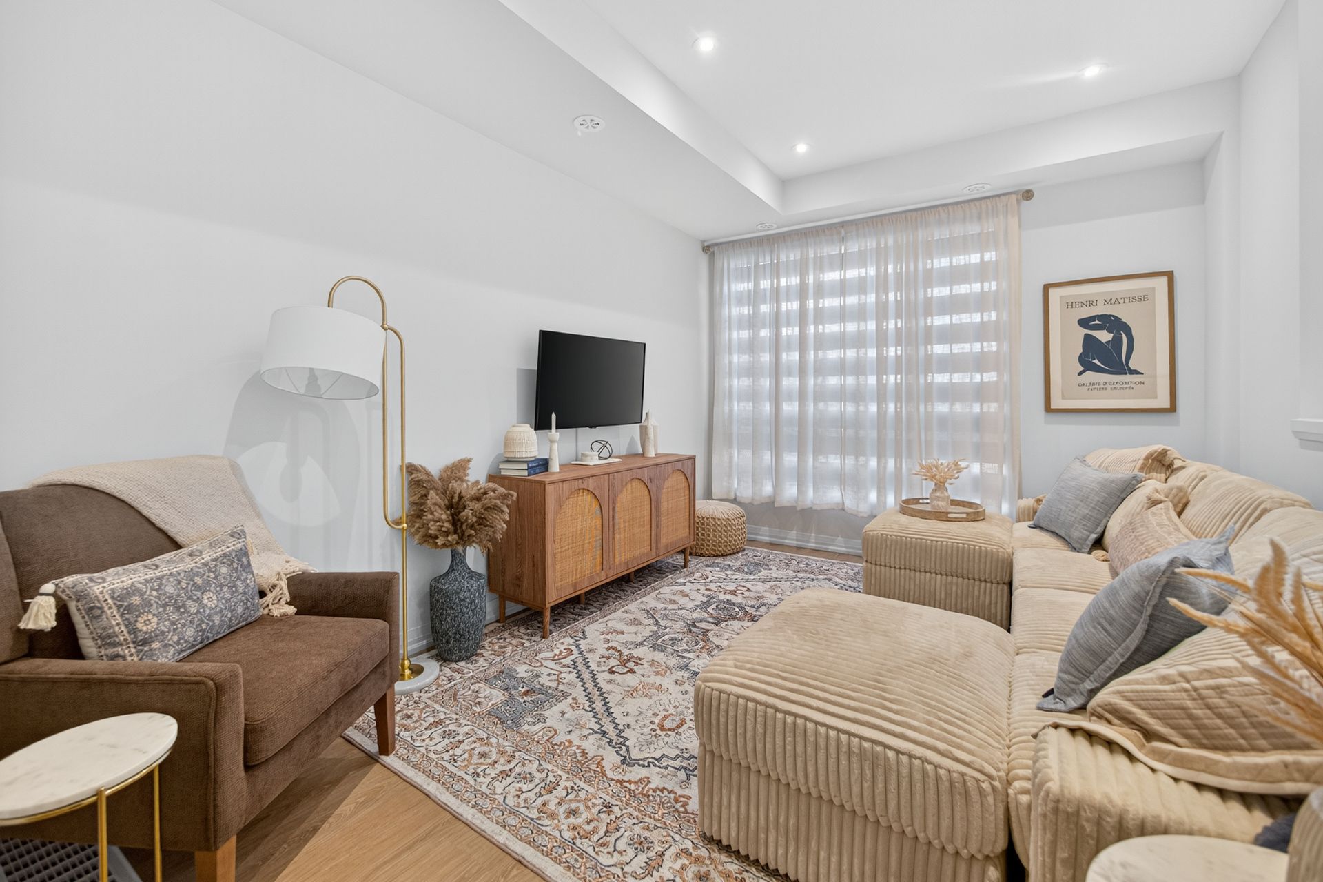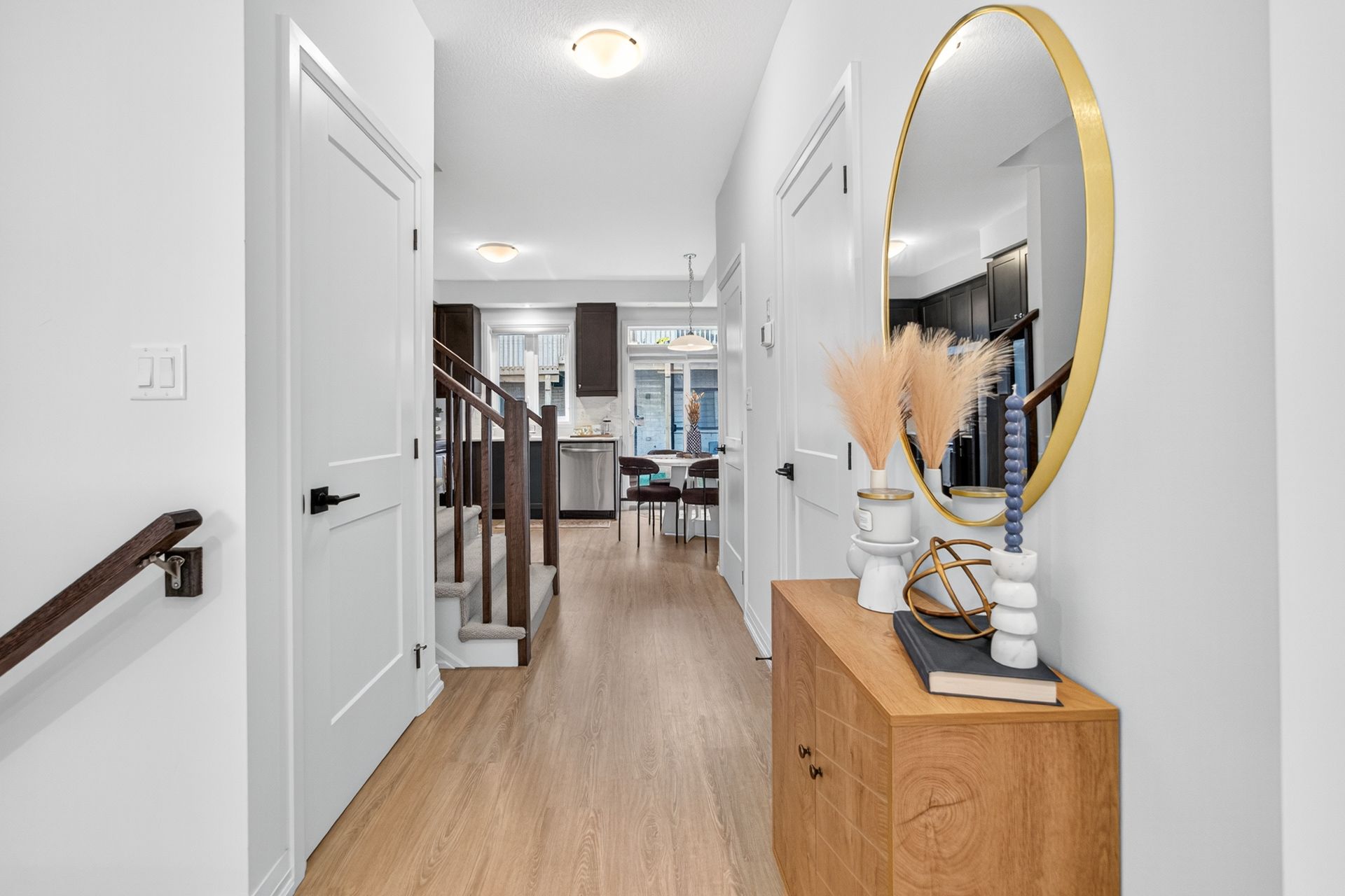 • Modern finishes include pot lights, vinyl plank flooring, and 9-foot ceilings.