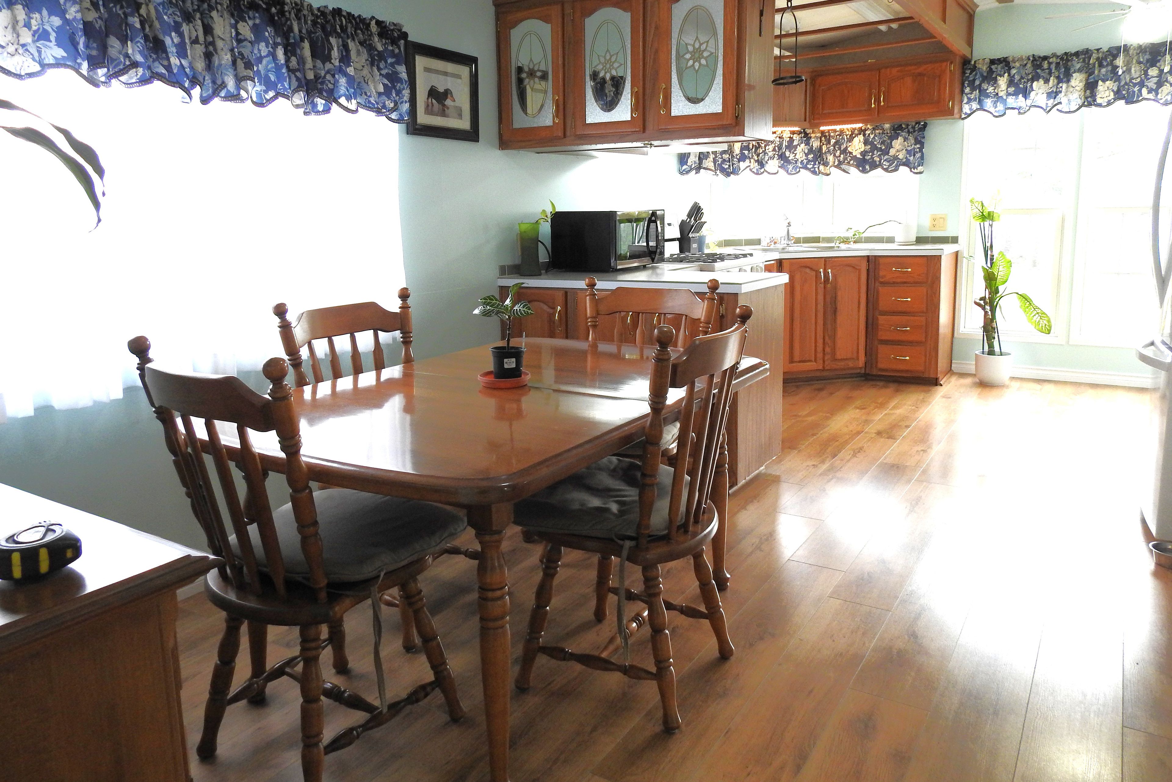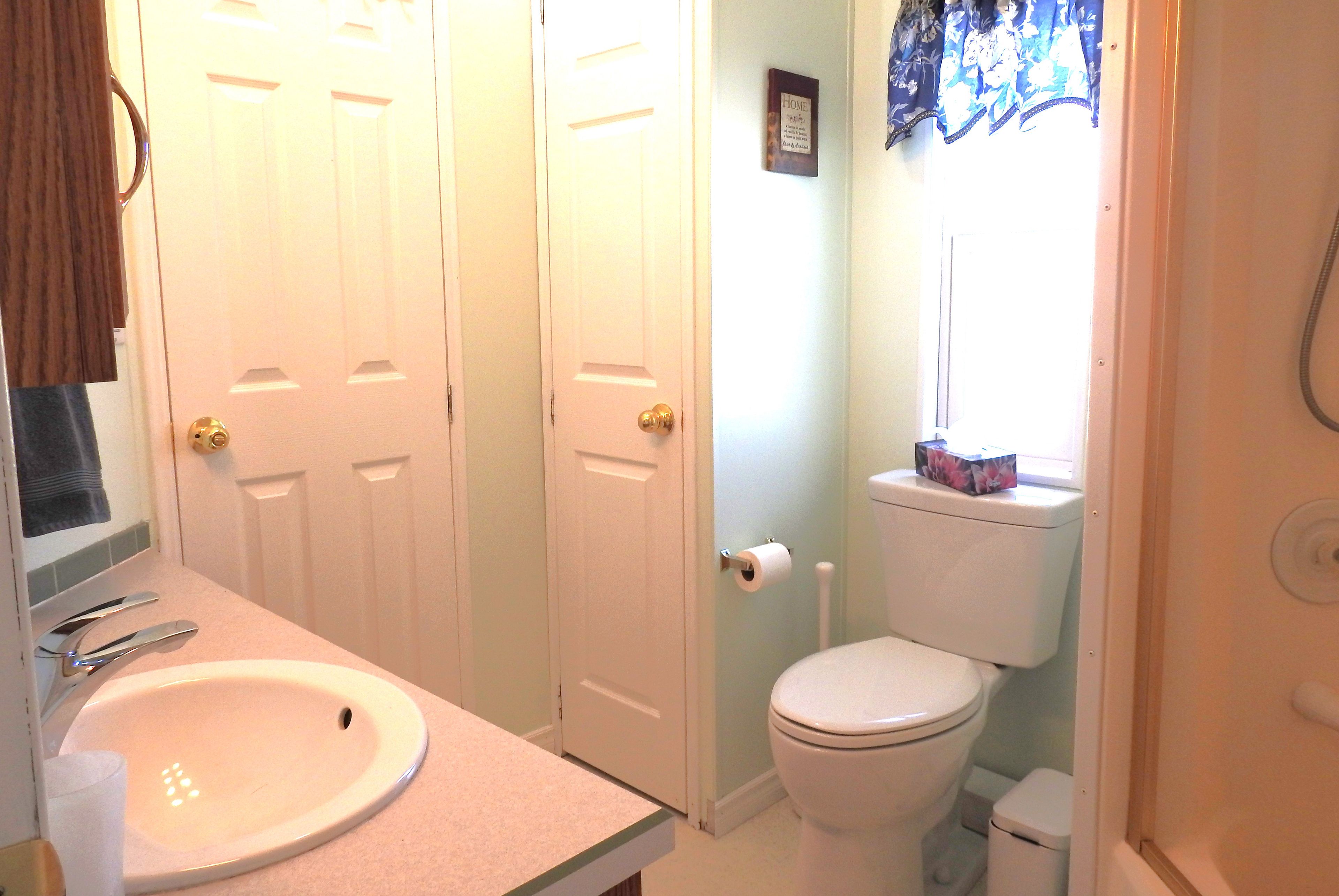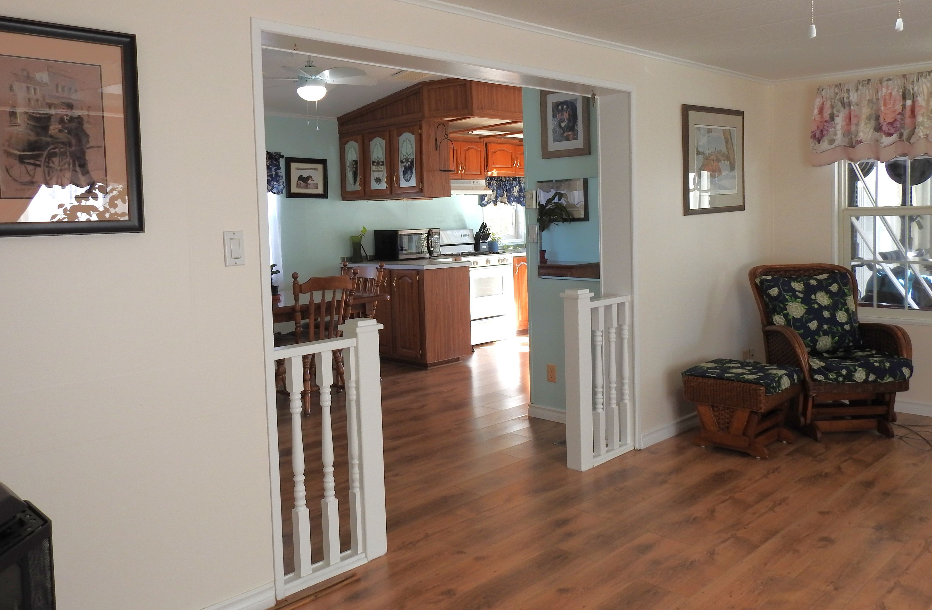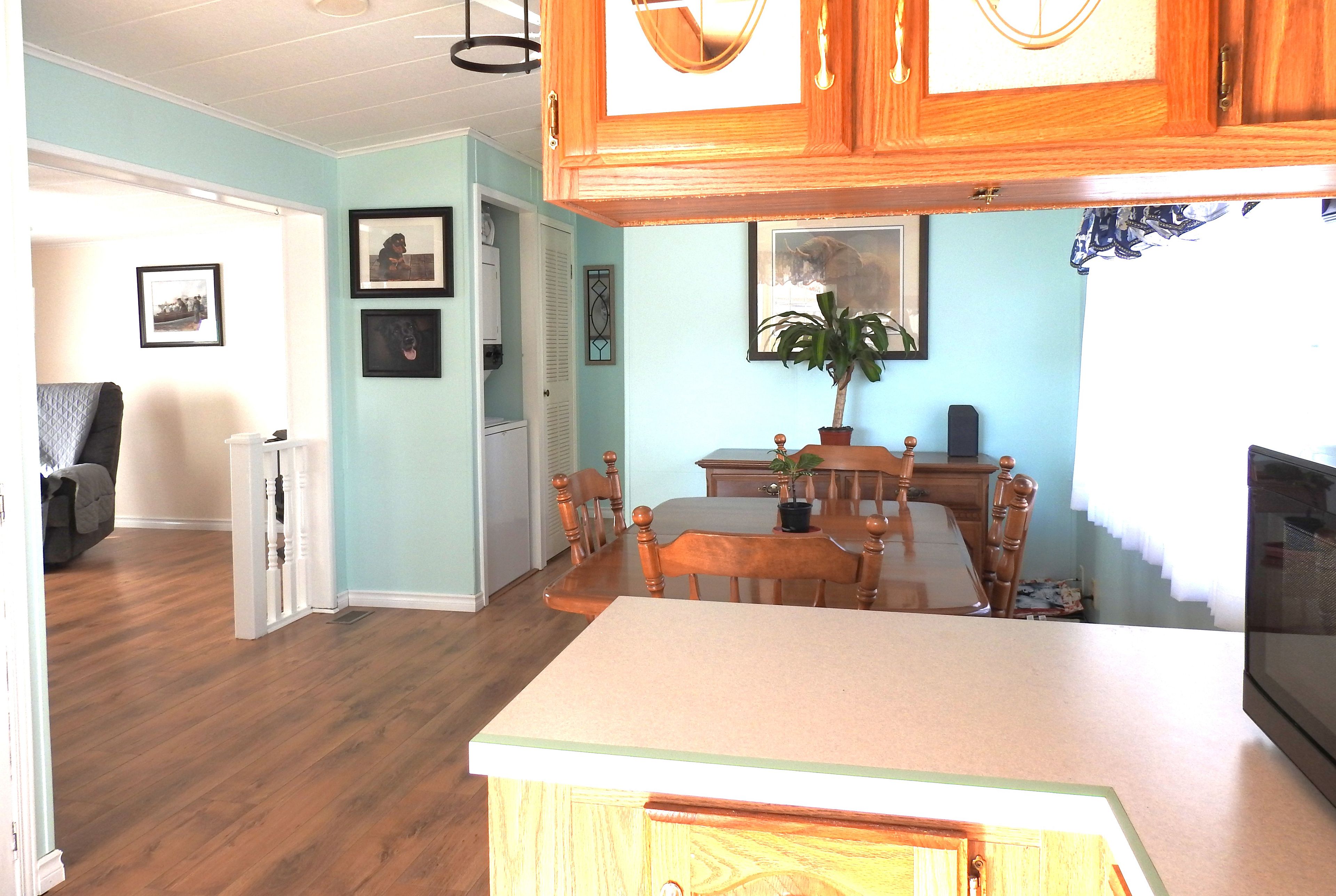 Welcome to parkbridge's wasaga country life resort. This double wide 2 bedroom 1 washroom modular home is one of 51 year round places with the use of the resorts 5 swimming pools 4 outdoor and 1 salt water indoor pool year round. There is a clubhouse "topaz hall" plus a rec. Centre; splash pad, mini golf, tennis, beach etc on site. The 3 season sunroom entrance is 11 x 7' leads into the spacious living room with a gas fireplace and large front window. The kitchen is full of large windows with sunlight beaming through; a pantry, double sinks, gas stove, and plenty of cupboards & countertops. 2 generous sized bedrooms with the primary featuring a semi-ensuite, laminate flooring, b/i drawers. Br. 2 with w/o to new deck. Fees to new buyers: $864. 08 per month (land lease rental $725. 00 est. Taxes $139. 08) buyer to pay their own water & sewage approx $30 - $90 per month billed every 3 months) updates: roof (2021) furnace (2021) fireplace (2021) a/c (2021) eves (2021) taps & sink wr (2021) fridge (2023) toilet (2024) sunroom floor (2024) kit. Sink (2025) deck (2025)
