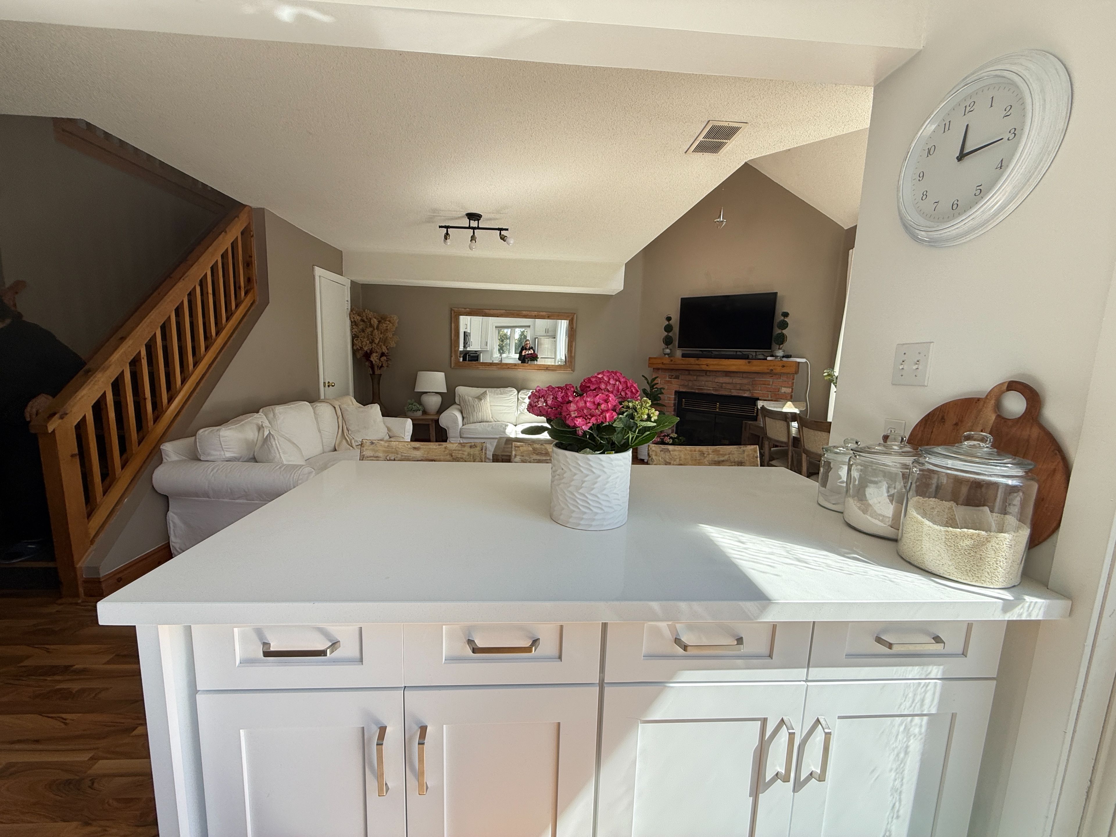 • Open concept main floor with vaulted ceilings and large windows for natural light.